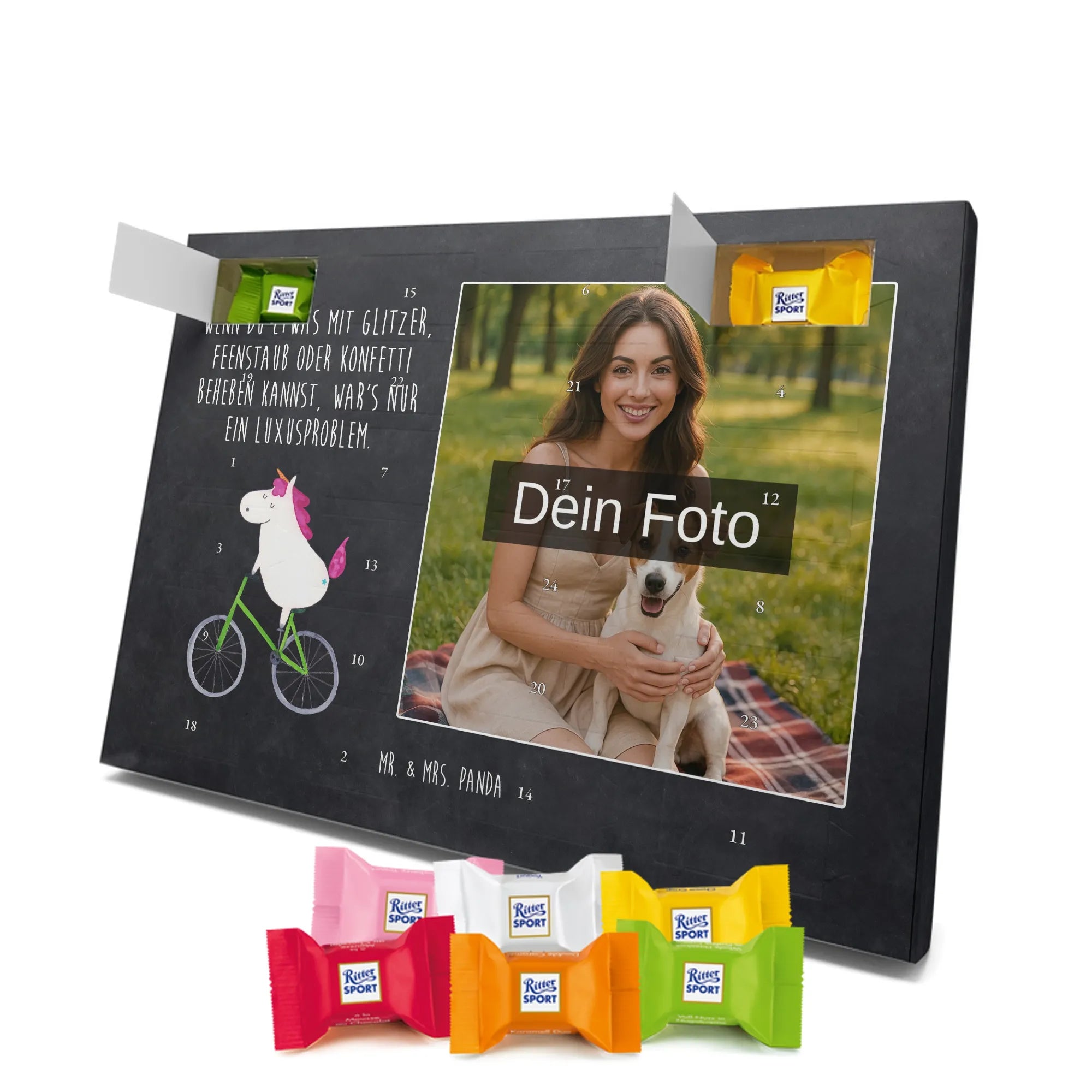 🐼 Personalisierter Schoko Foto Adventskalender mit deinem Foto, seidenmatter Druck, bedruckten Motiven & gefüllt mit kinder® Schokolade.