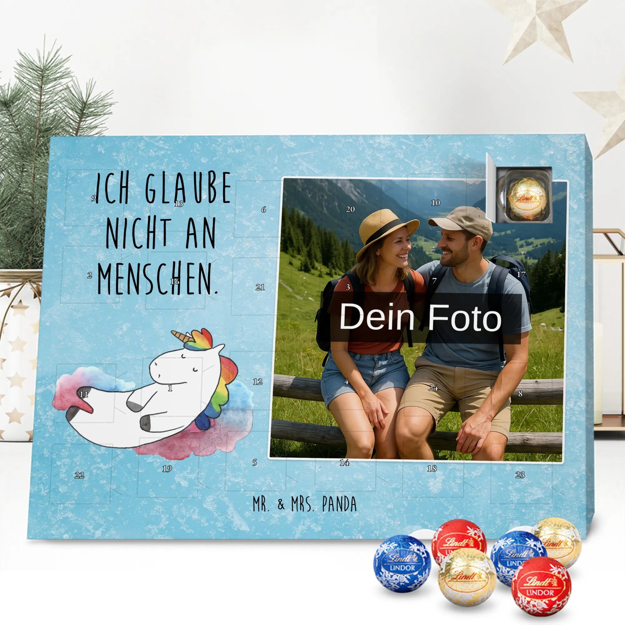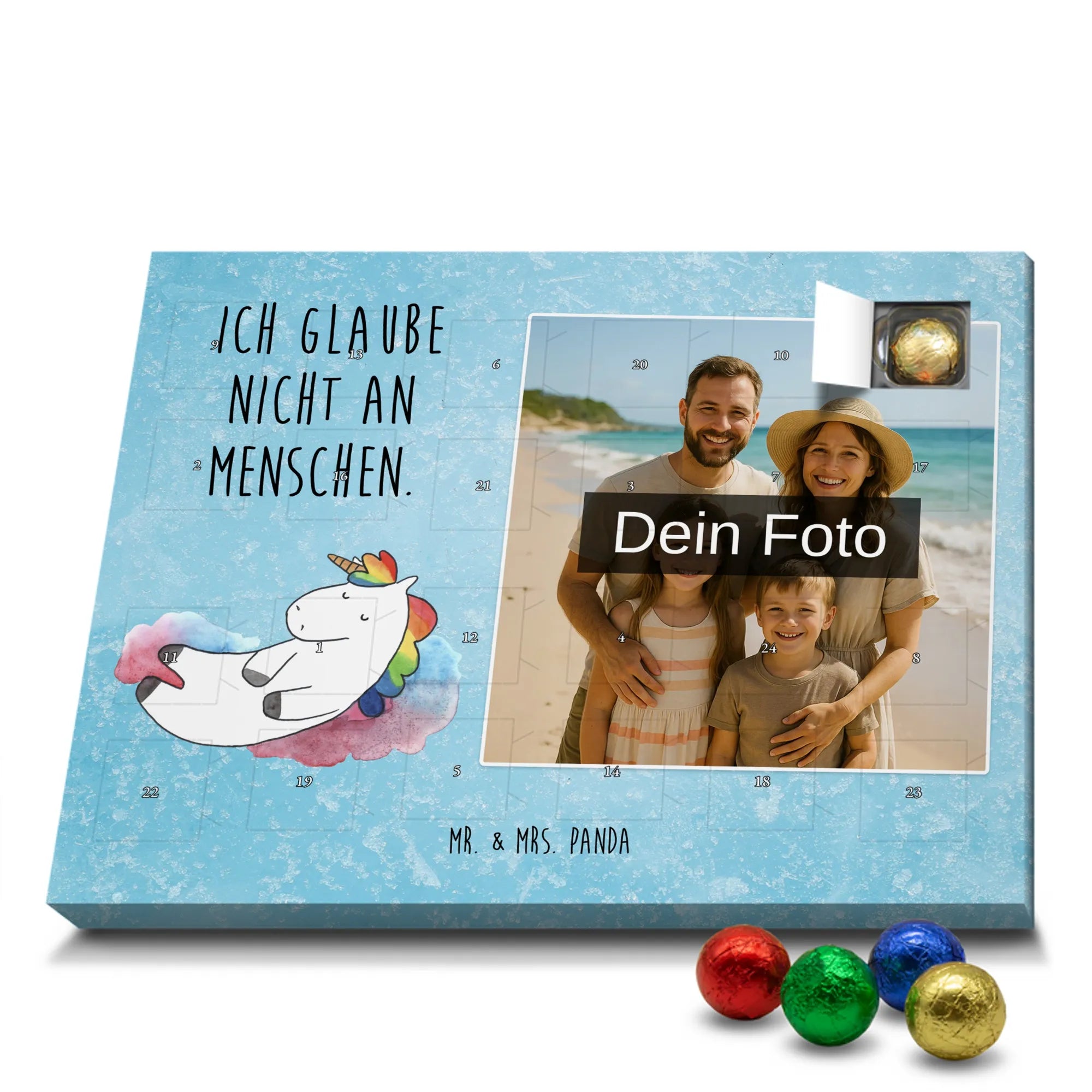 Personalisierter Schoko Foto Adventskalender Einhorn Wolke 7 - Classic - Eisblau