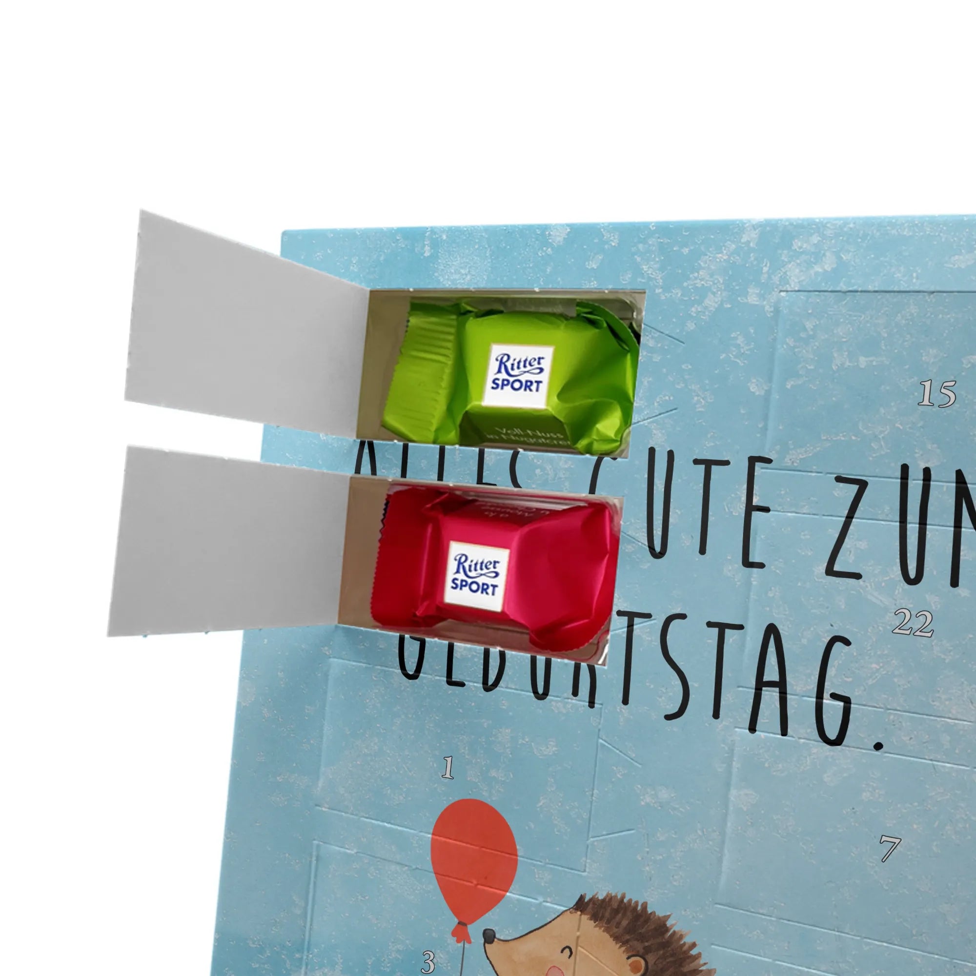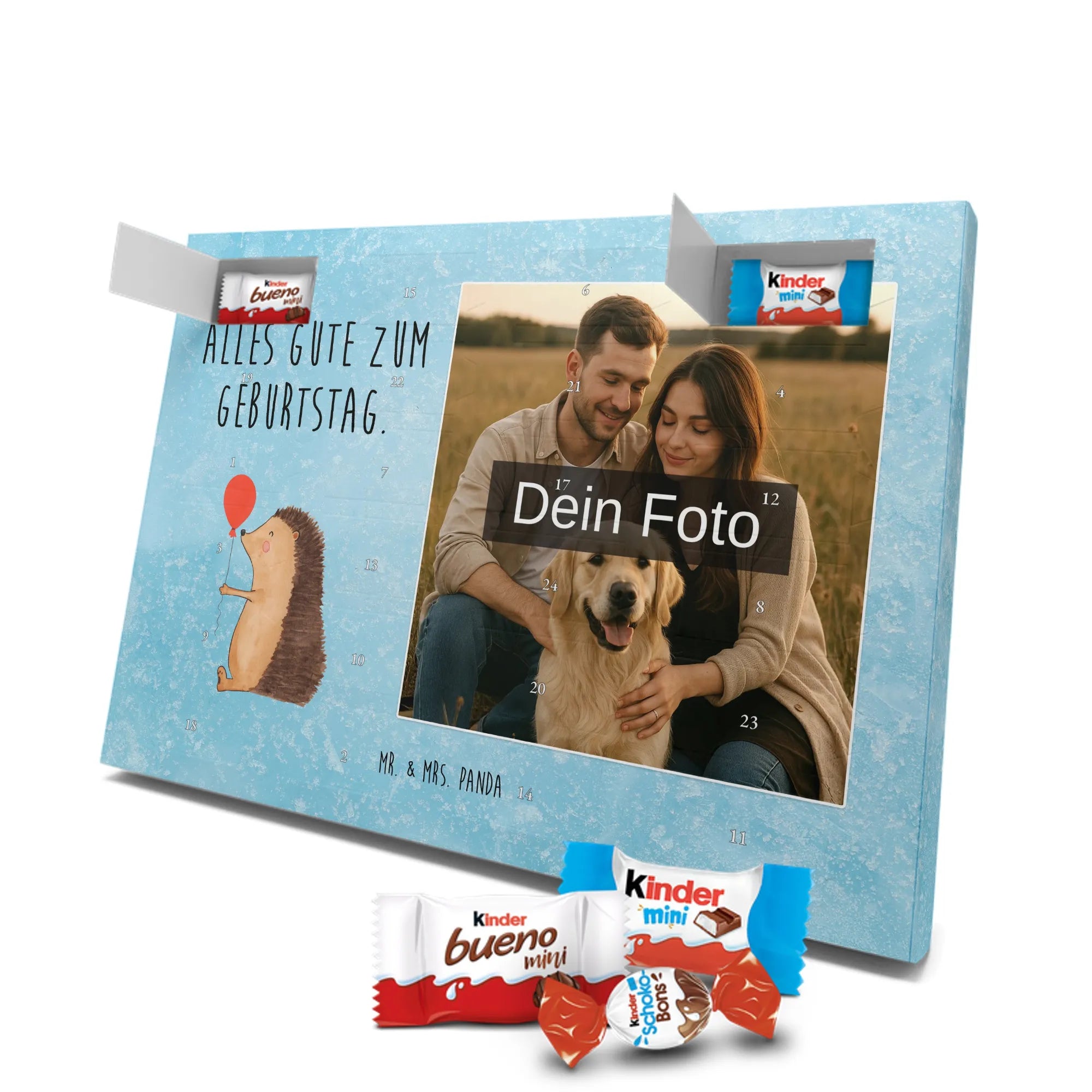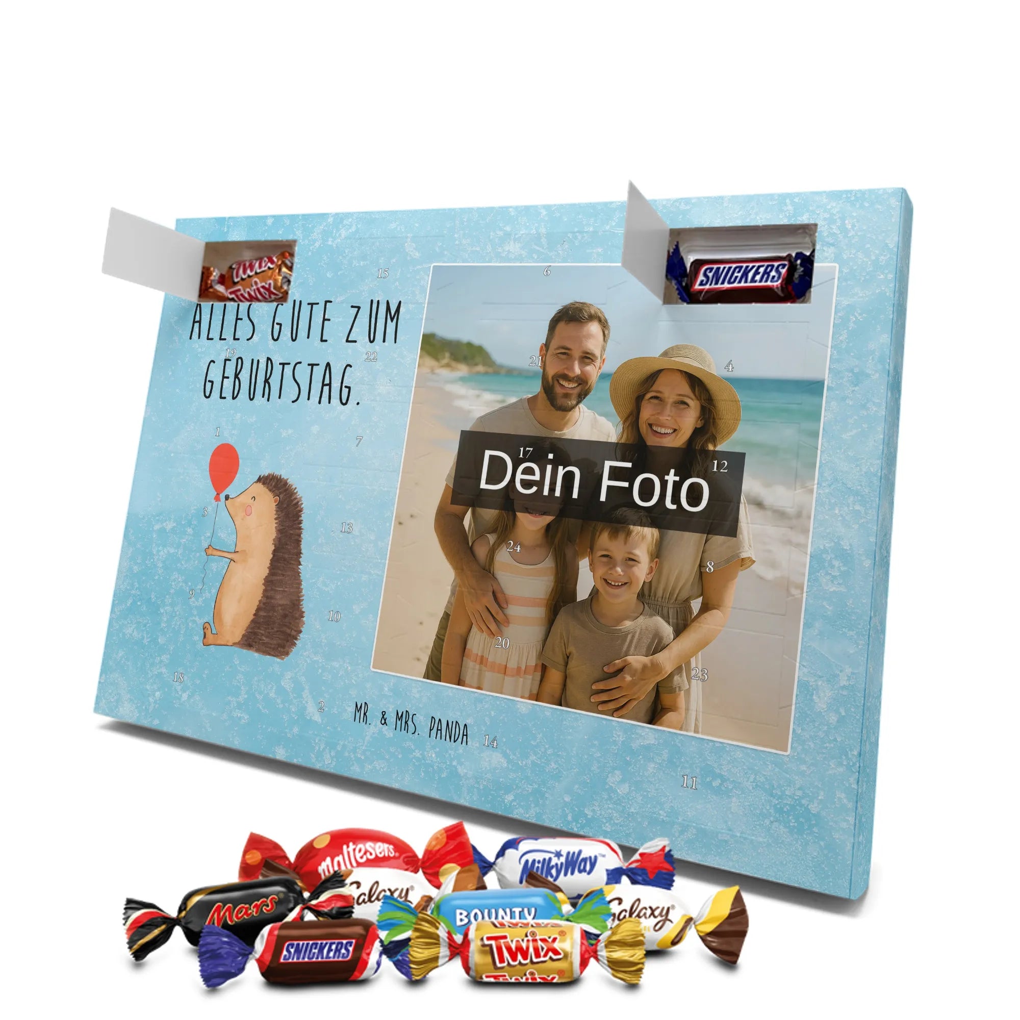 Personalisierter Schoko Foto Adventskalender Igel Luftballon - Kinder Schokolade - Eisblau