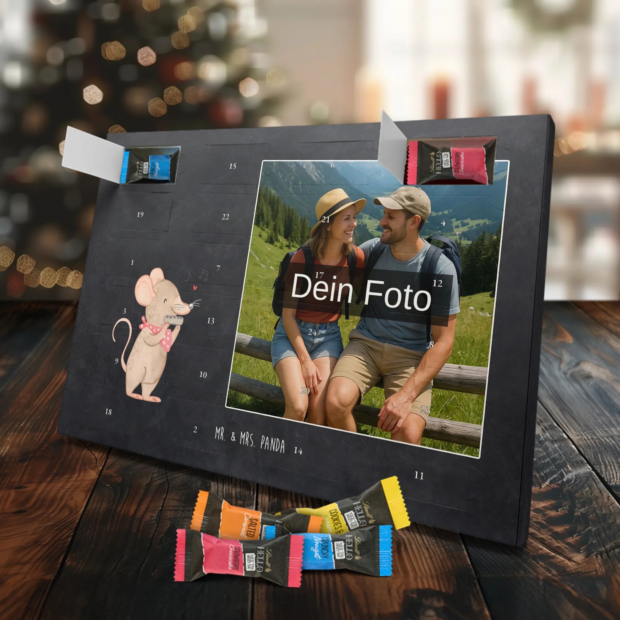 Personalisierter Schoko Foto Adventskalender Maus Mundharmonika - Kinder Schokolade - Kreidetafel