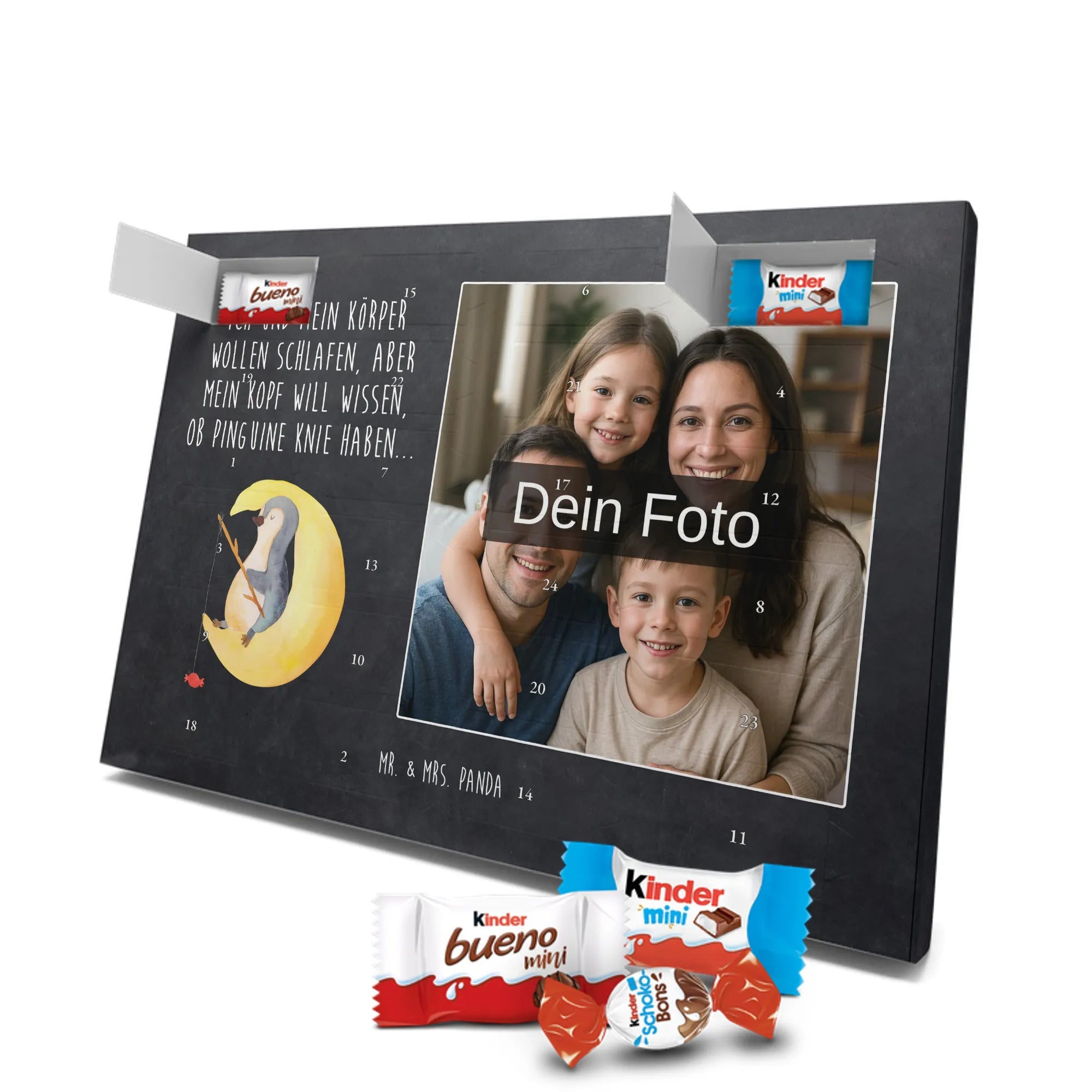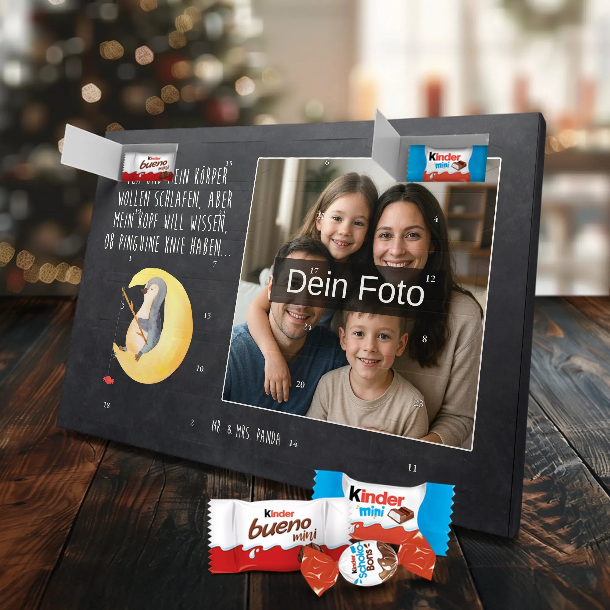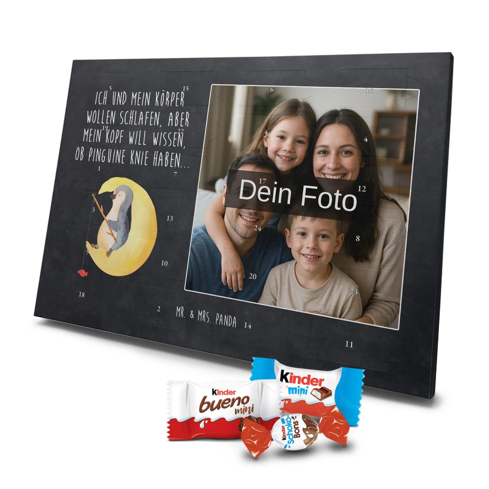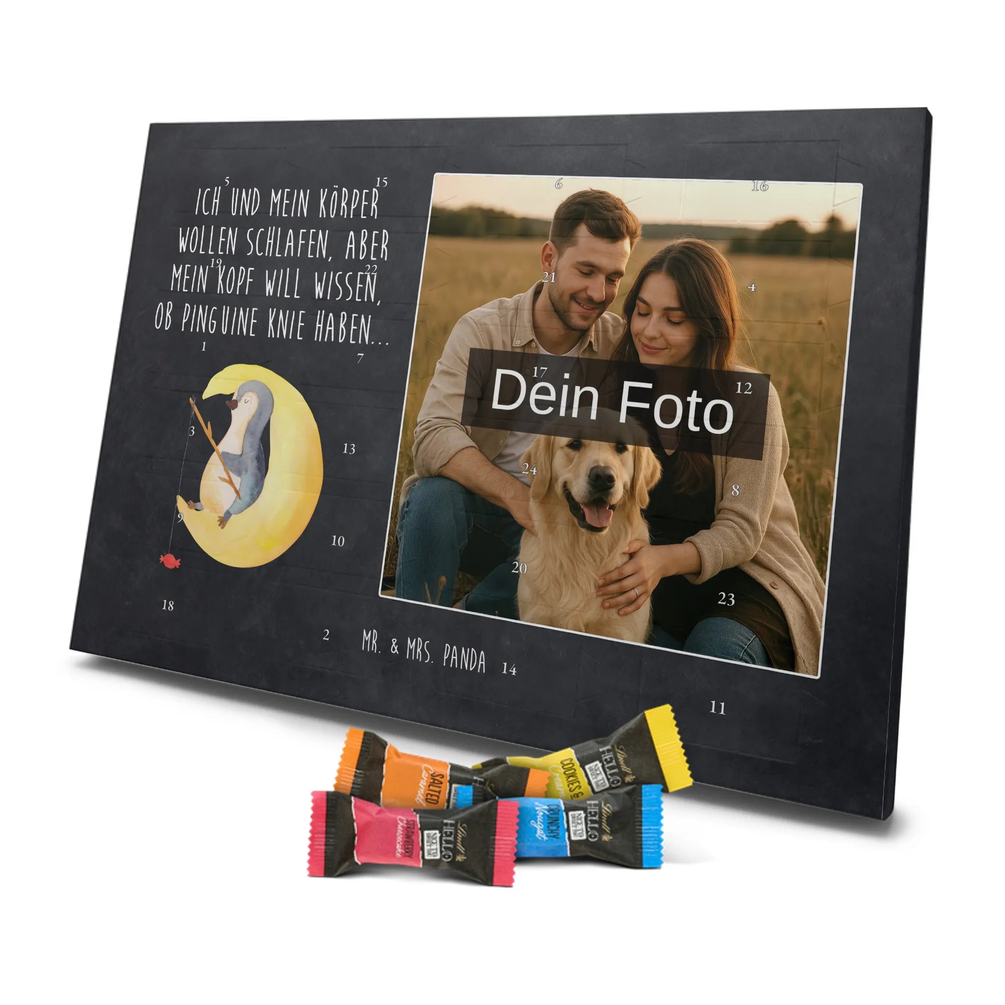 Personalisierter Schoko Foto Adventskalender Pinguin Mond - Kinder Schokolade - Kreidetafel