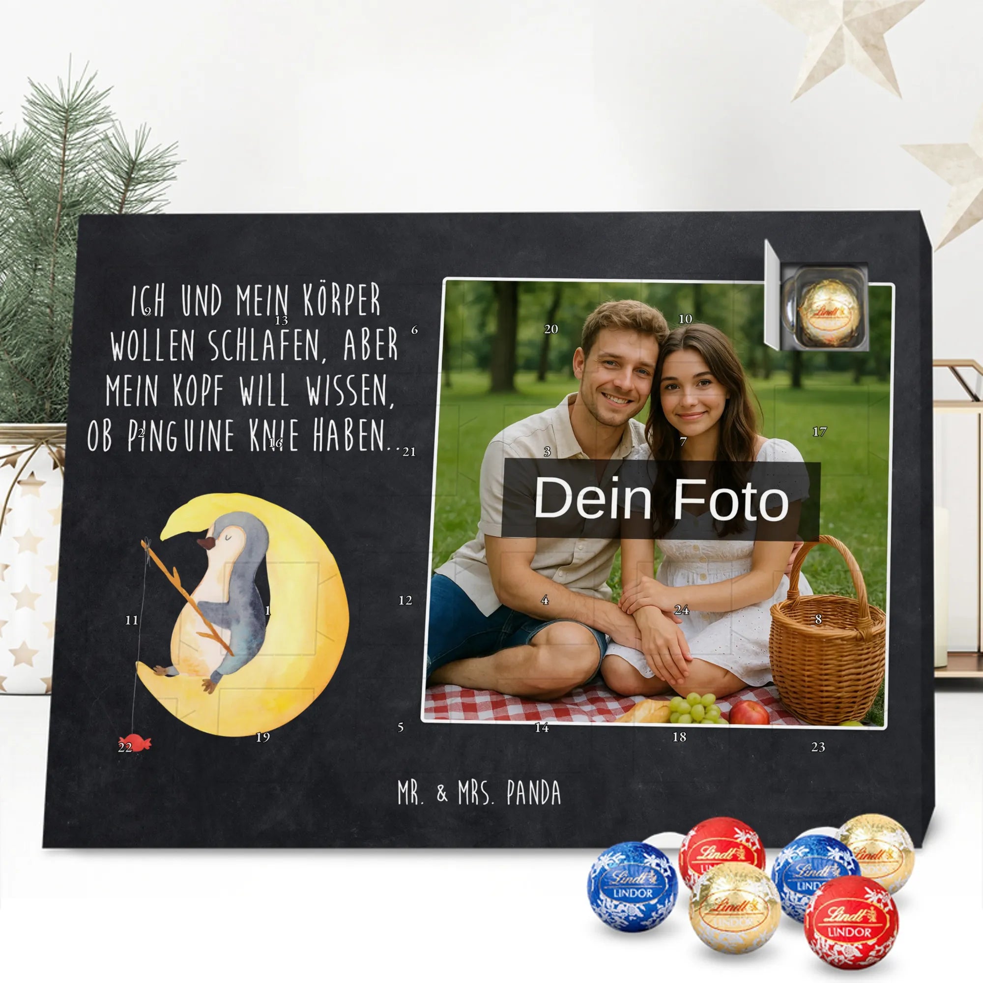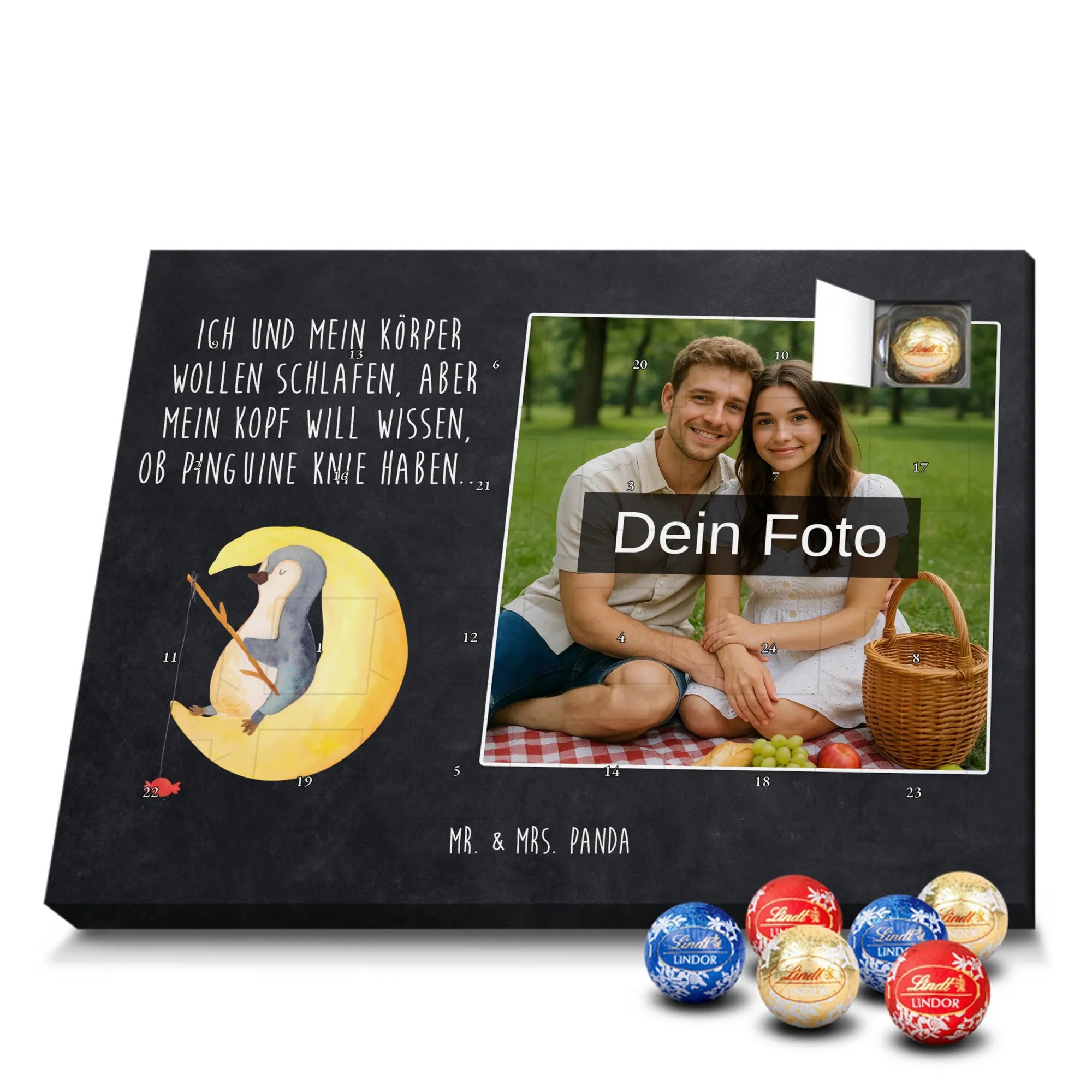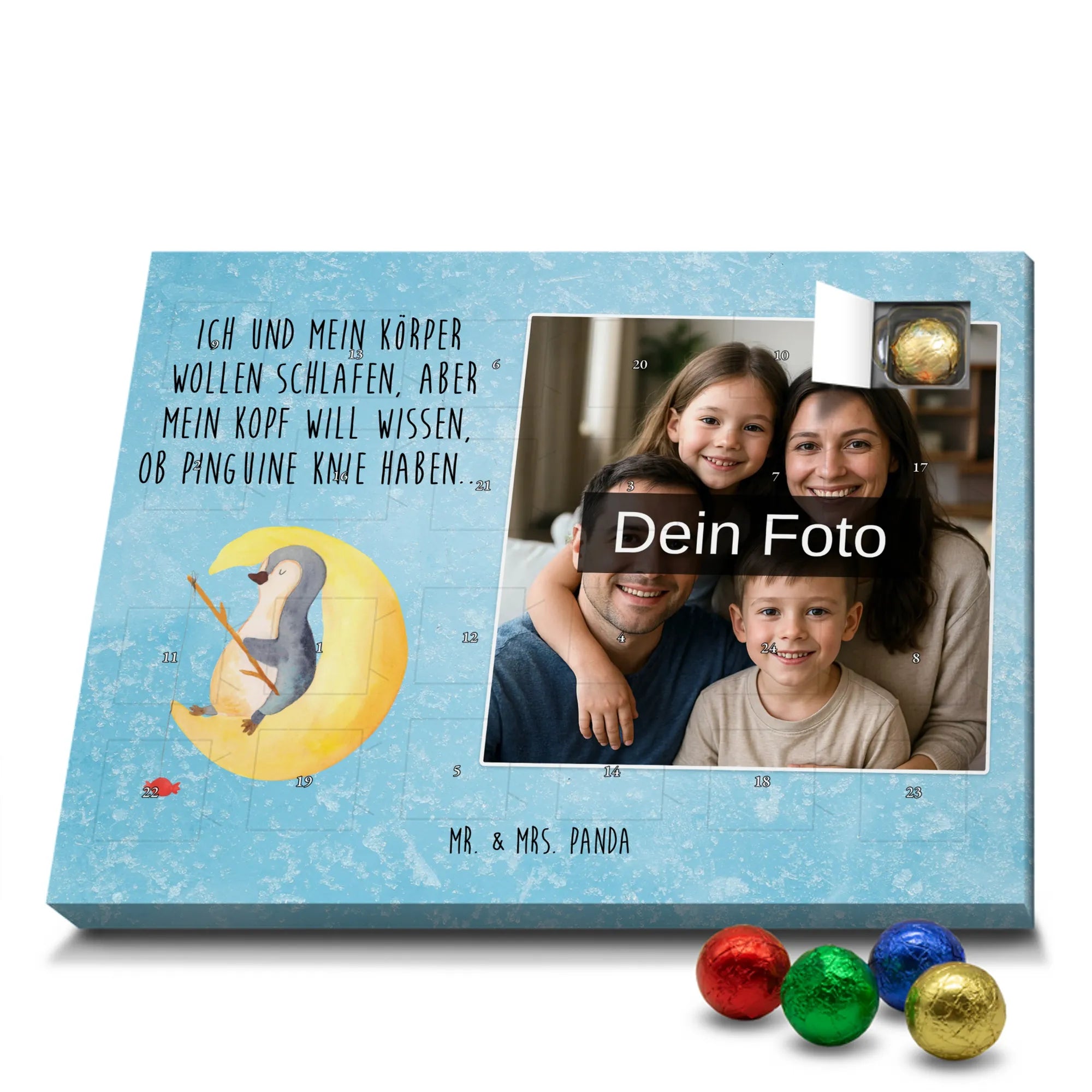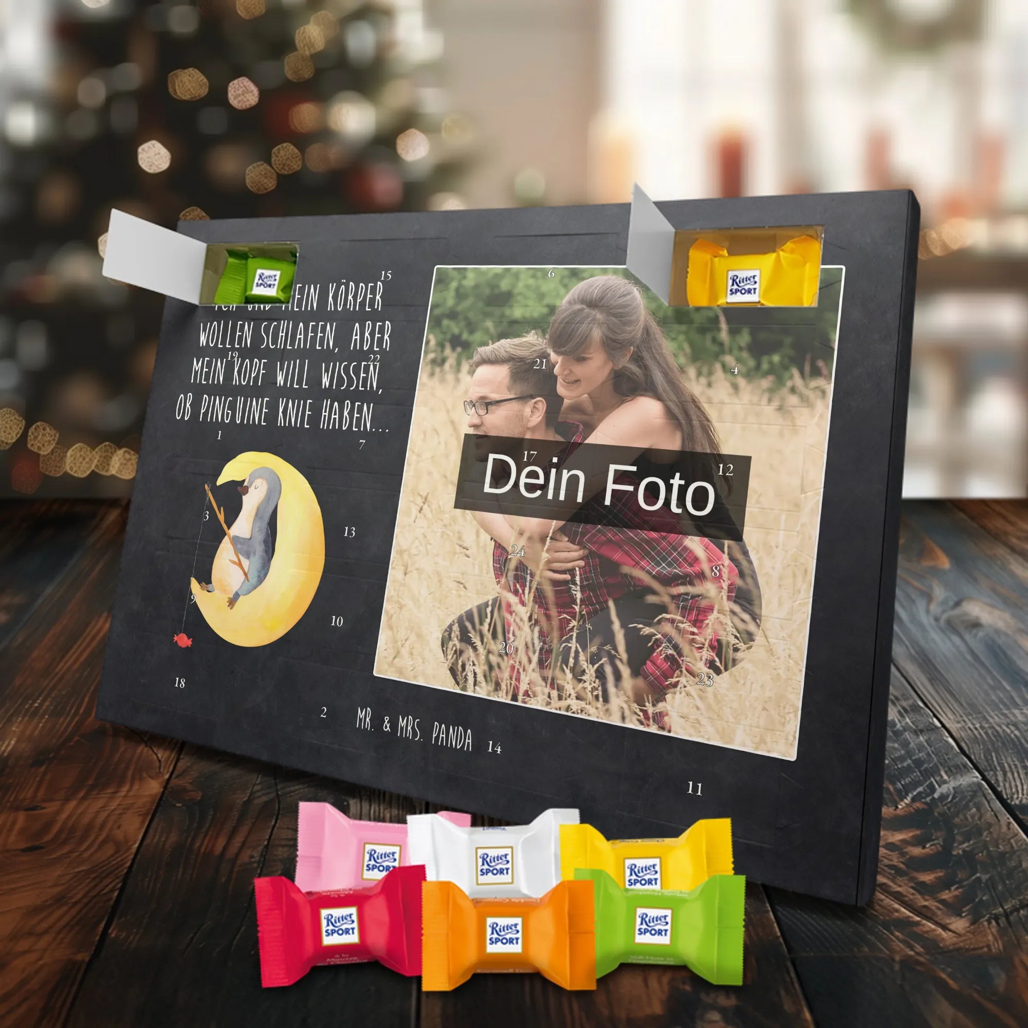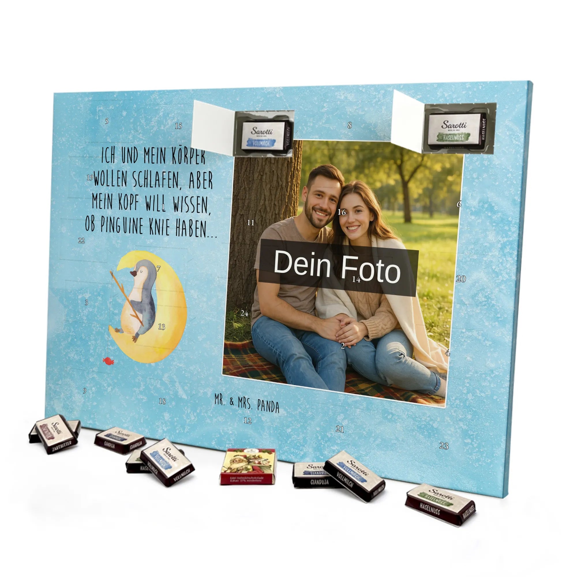 Personalisierter Schoko Foto Adventskalender Pinguin Mond - Kinder Schokolade - Kreidetafel