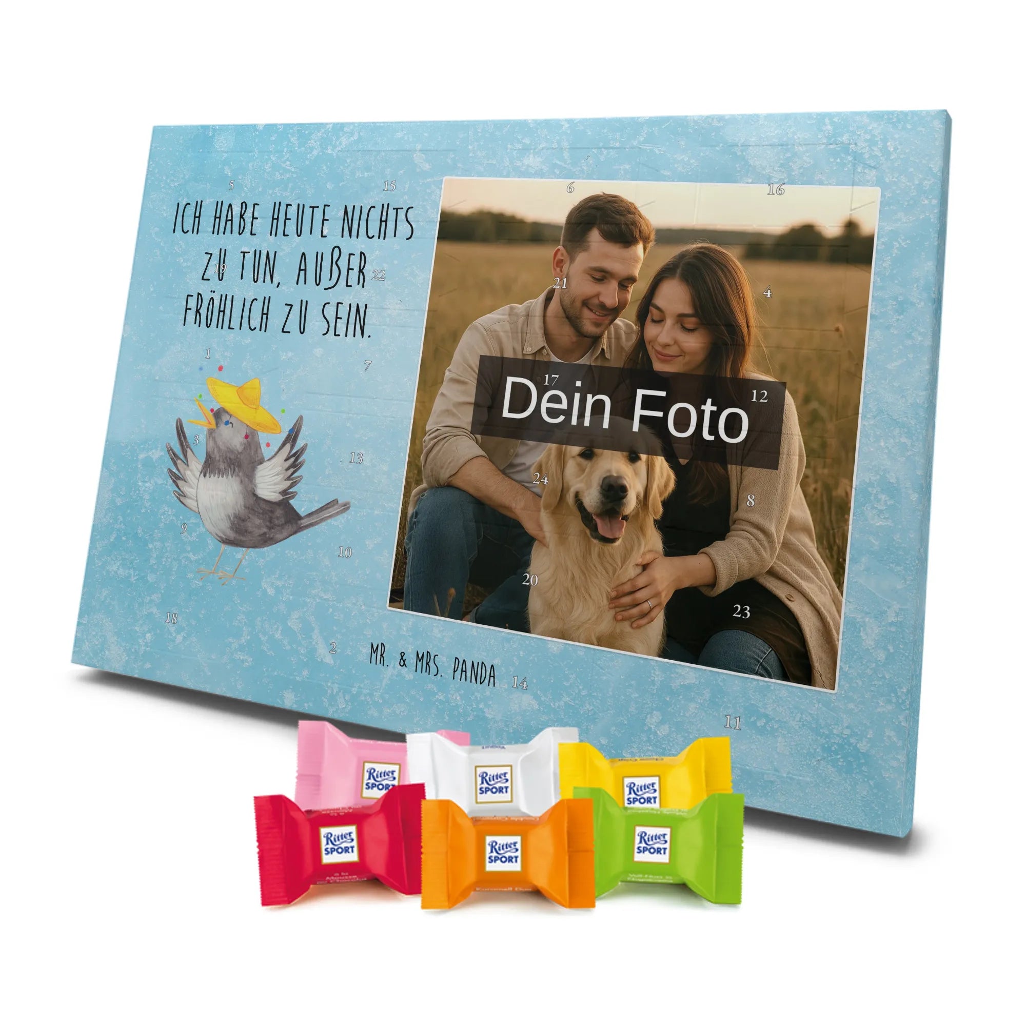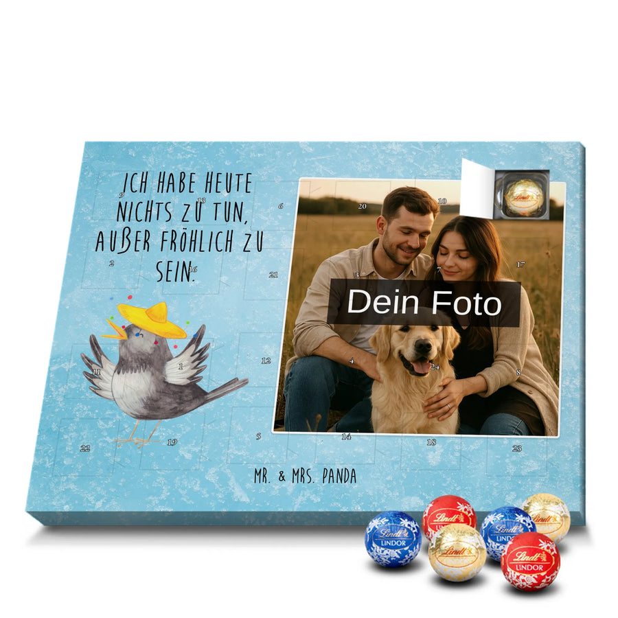 Personalisierter Schoko Foto Adventskalender Rabe Sombrero - Lindt LINDOR - Eisblau
