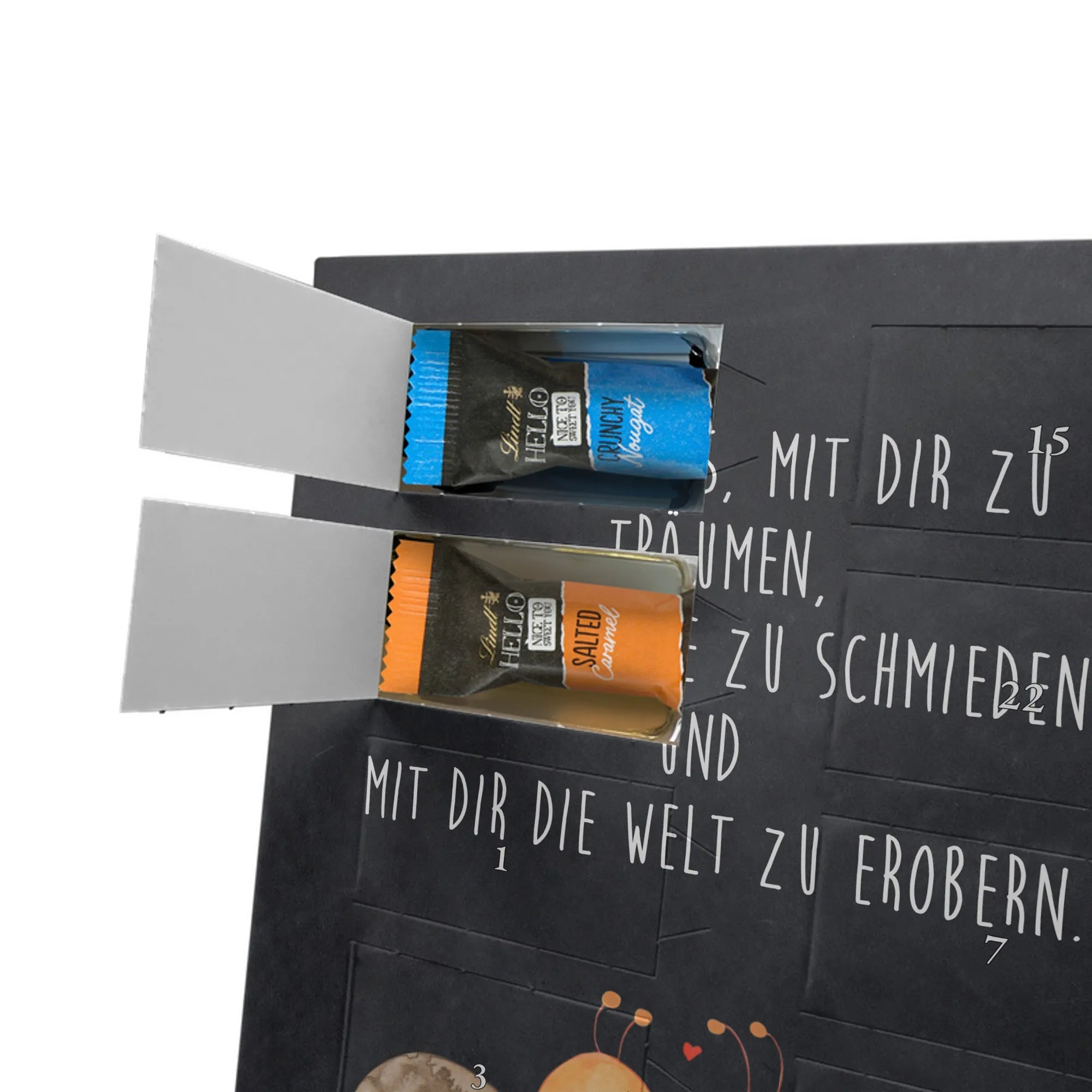 Personalisierter Schoko-Adventskalender mit Foto – das kleine Weihnachtswunder von Mr. & Mrs. Panda! Verschenke jeden Tag Vorfreude: Der Kalender ist liebevoll gestaltet mit unseren herzlichen Illustrationen und Sprüchen, während dein Foto die persönliche Mitte bildet. Bitte lade ein hochauflösendes Foto hoch und prüfe den Bildausschnitt, damit nichts Wichtiges verloren geht. Nutze nur Bilder, für die du die Rechte hast. Die hochwertige, seidenmatte Veredelung und die bedruckten Seitenflächen garantieren ein edles Erscheinungsbild. Maße: 355 mm x 245 mm x 11 mm; lässt sich sowohl aufhängen als auch aufstellen. Achtung: Fotos werden nicht nachbearbeitet oder zugeschnitten; personalisierte Artikel sind vom Rückgaberecht ausgeschlossen. Gefüllt mit 24 einzeln verpackten Schokoladentäfelchen aus den vier Geschmacksrichtungen Vollmilch, Nougat, Zartbitter und Haselnuss – von Sarotti® und Confiserie Heidel®. Insgesamt enthält der Kalender 107 g Markenschokolade. Ein persönliches Geschenk mit süßem Inhalt, ideal für Partner, Familie und Freunde, verpackt mit der typischen Mr. & Mrs. Panda Liebe zum Detail.