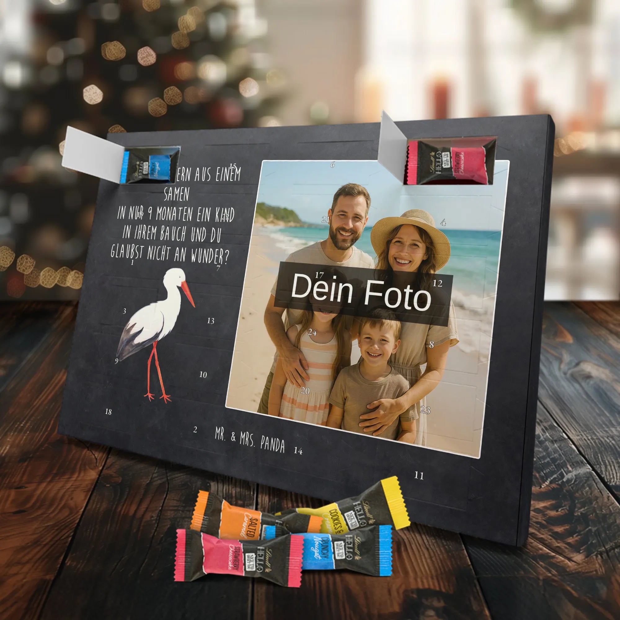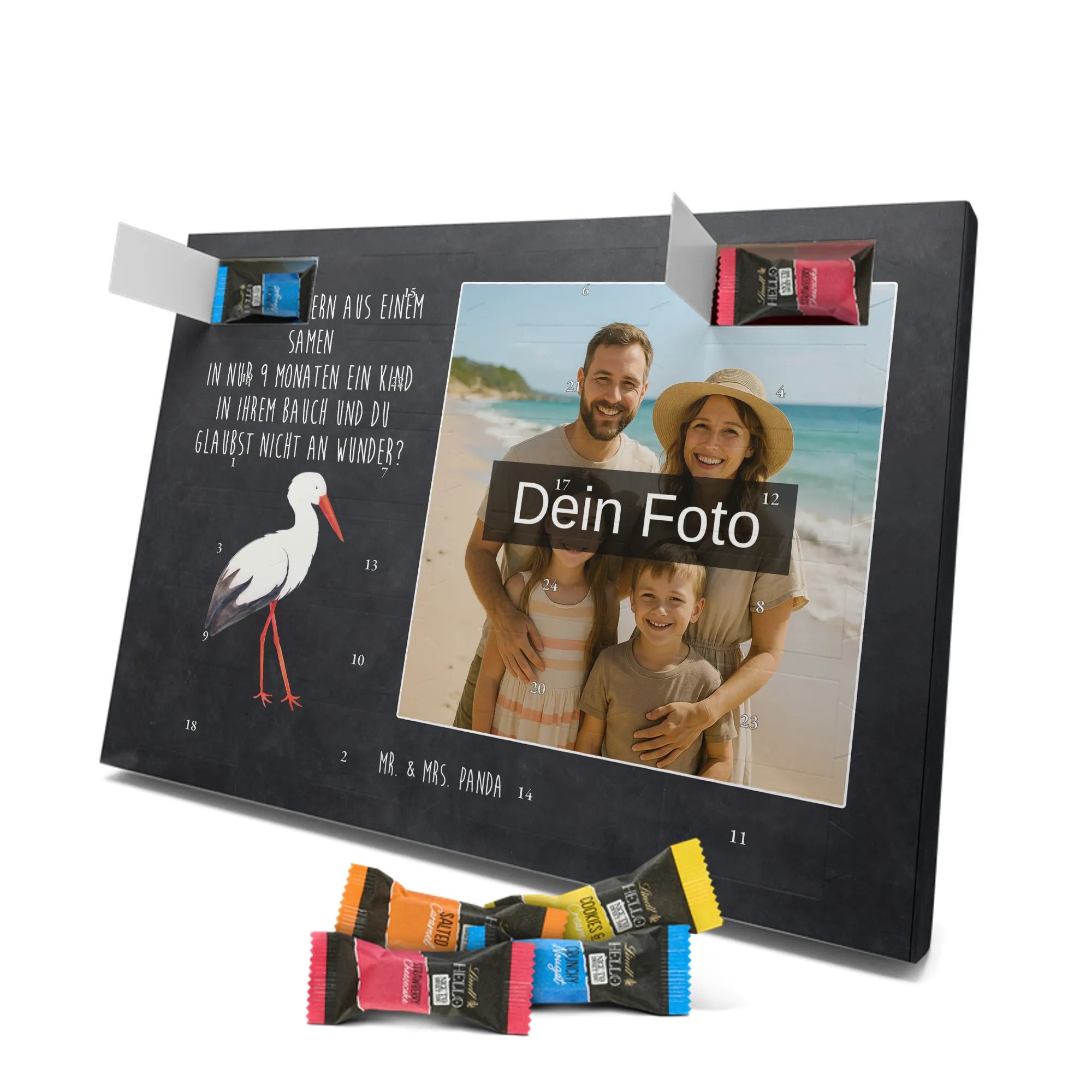 🐼 PERSONALISIERTES ADVENTS-SCHOKOKALENDER: Foto, Mr. & Mrs. Panda Motive & Lindt Hello Minis vereint.