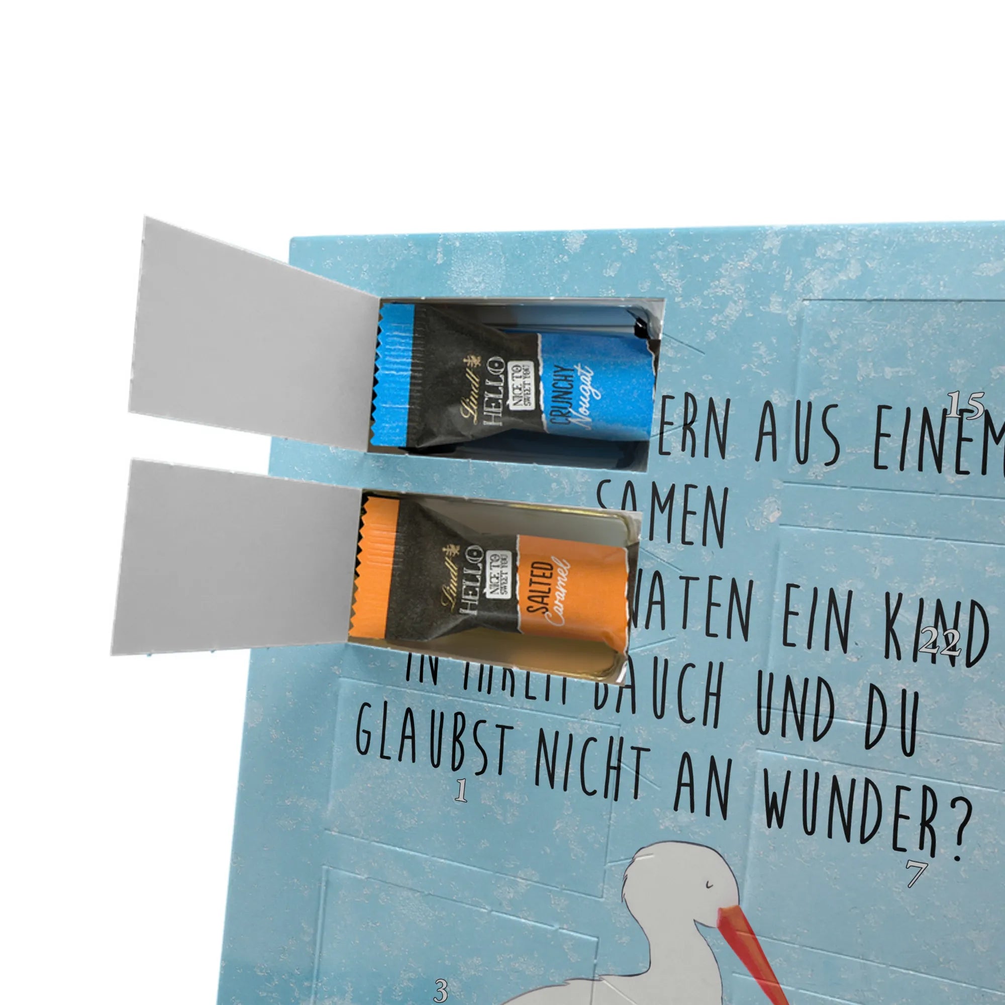 Personalisierter Schoko Foto Adventskalender Storch - Celebrations - Eisblau