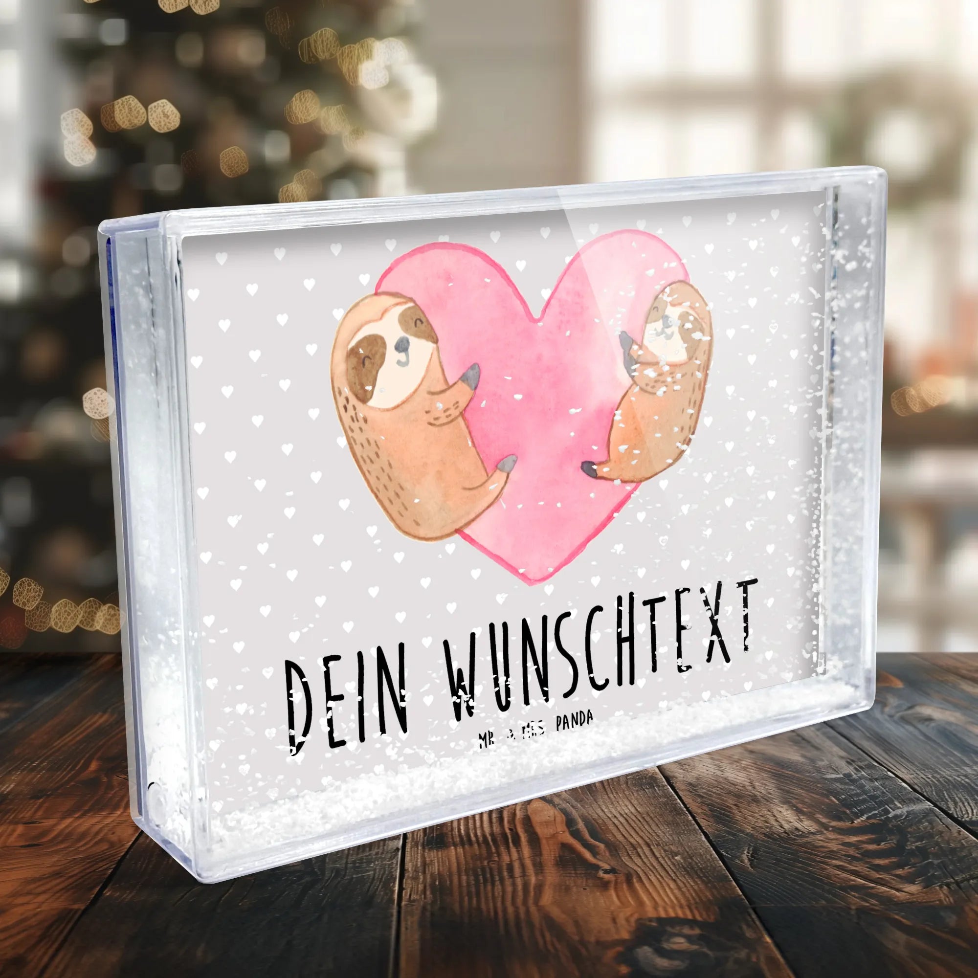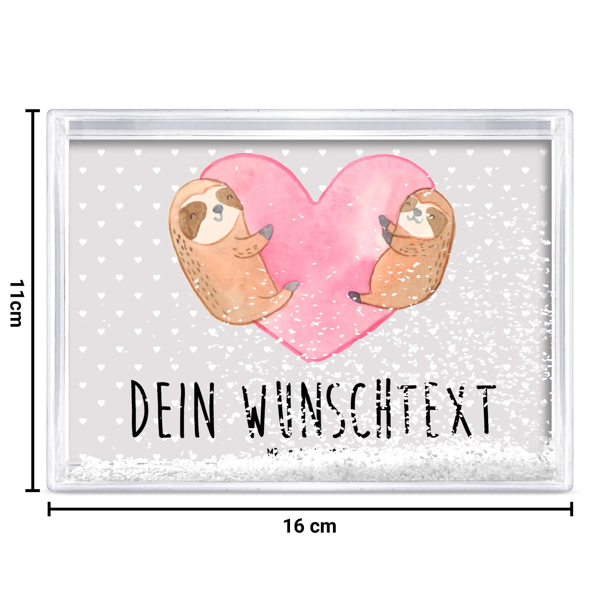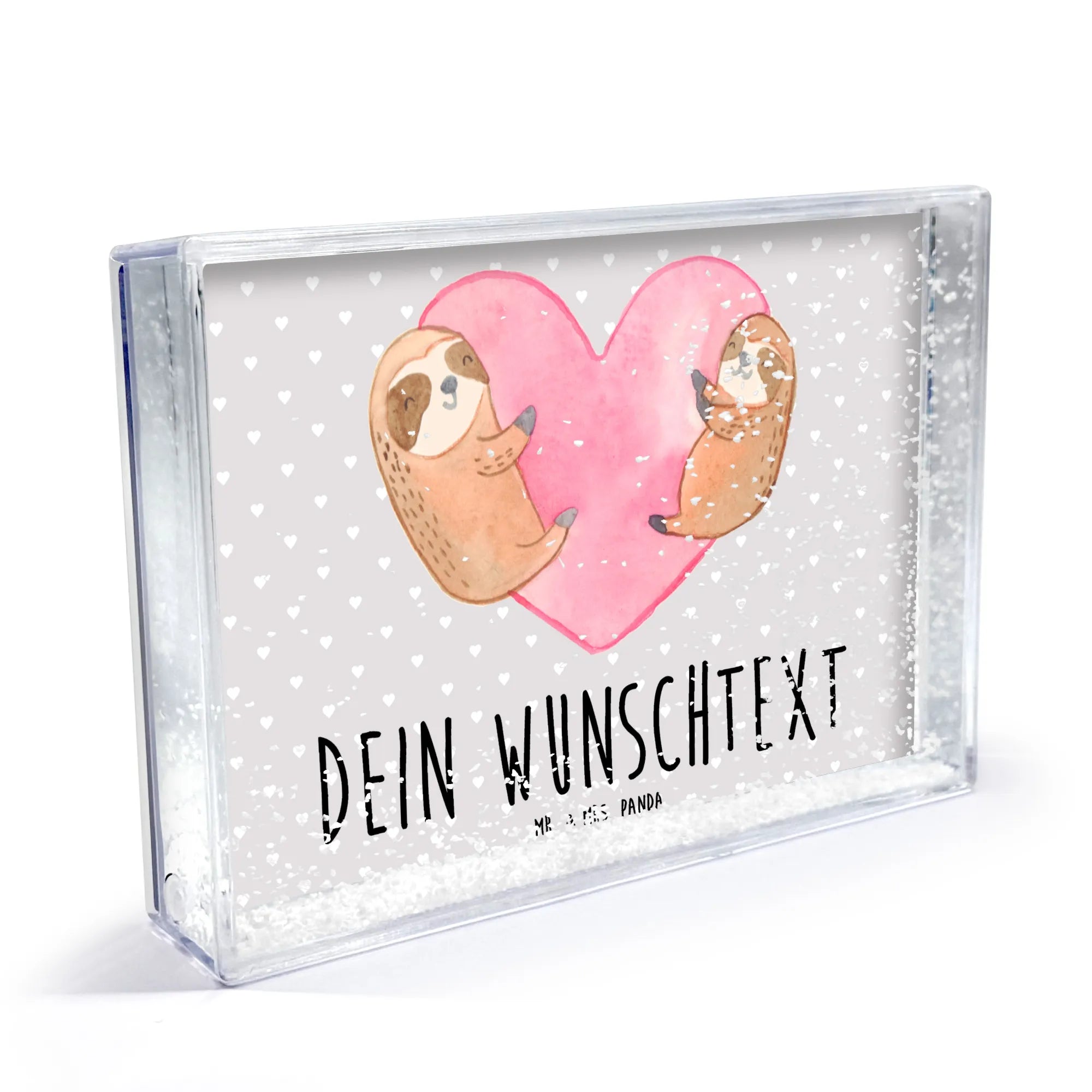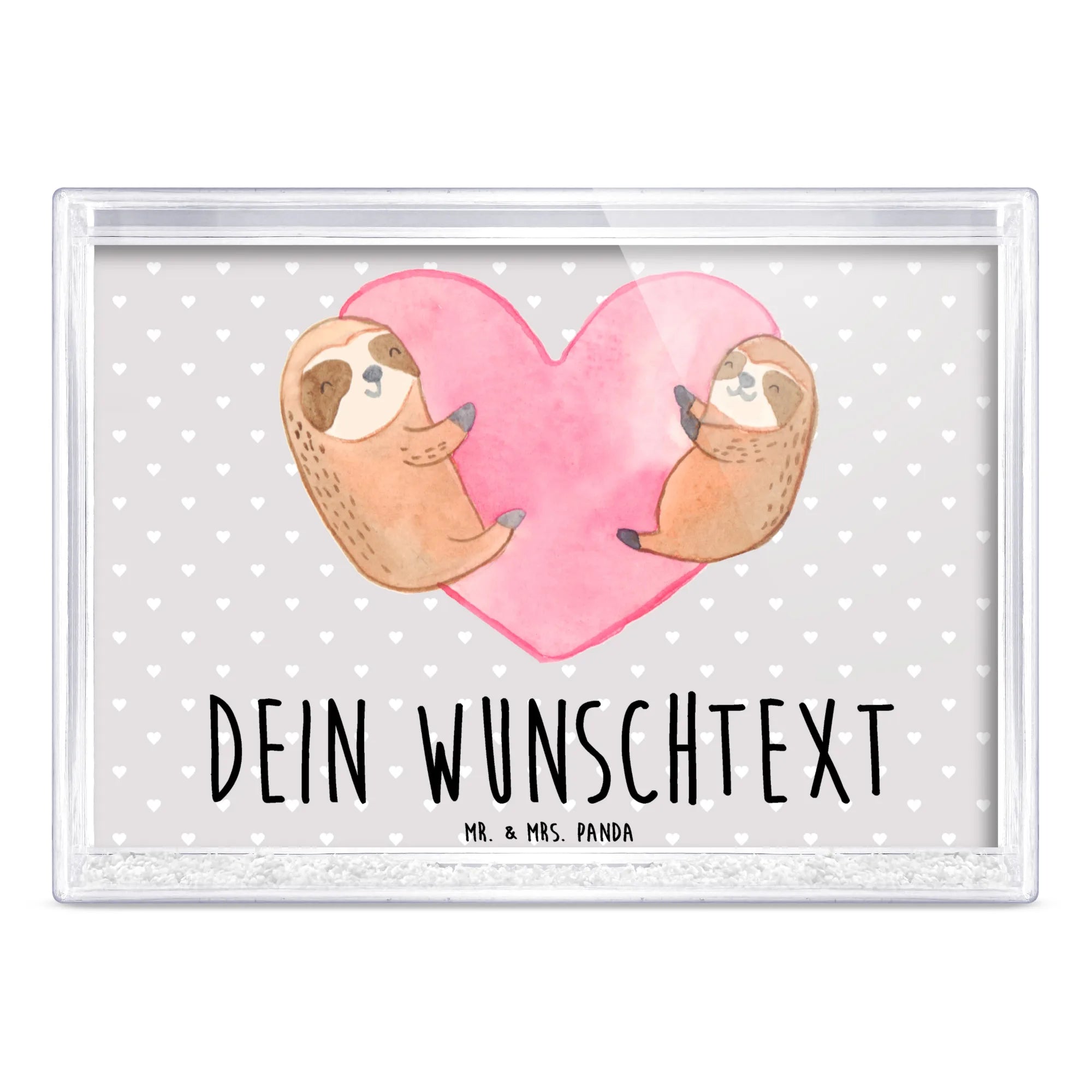Der personalisierte Schüttelrahmen mit dem bezaubernden Faultier-Herz Motiv von Mr. & Mrs. Panda ist das perfekte Geschenk für all jene, die Liebe und Zuneigung zum Ausdruck bringen möchten. Dieser Schüttelrahmen ist nicht nur eine wunderschöne Deko für dein Zuhause, sondern auch ein emotionales Liebesgeschenk für besondere Anlässe wie den Valentinstag, den Hochzeitstag oder euren Jahrestag. Das liebevoll gestaltete Motiv zeigt ein Paar kuschelnder Faultiere, die in einem herzförmigen rosa Aquarellhintergrund thront. Die Faultiere sind in warmen Brauntönen mit sanften weißen und schwarzen Akzenten gezeichnet, was ihre entspannenden Gesichtsausdrücke und verzauberten Posen unterstreicht. Sie symbolisieren die endlose Liebe und Verbundenheit zwischen dir und deinem Partner.