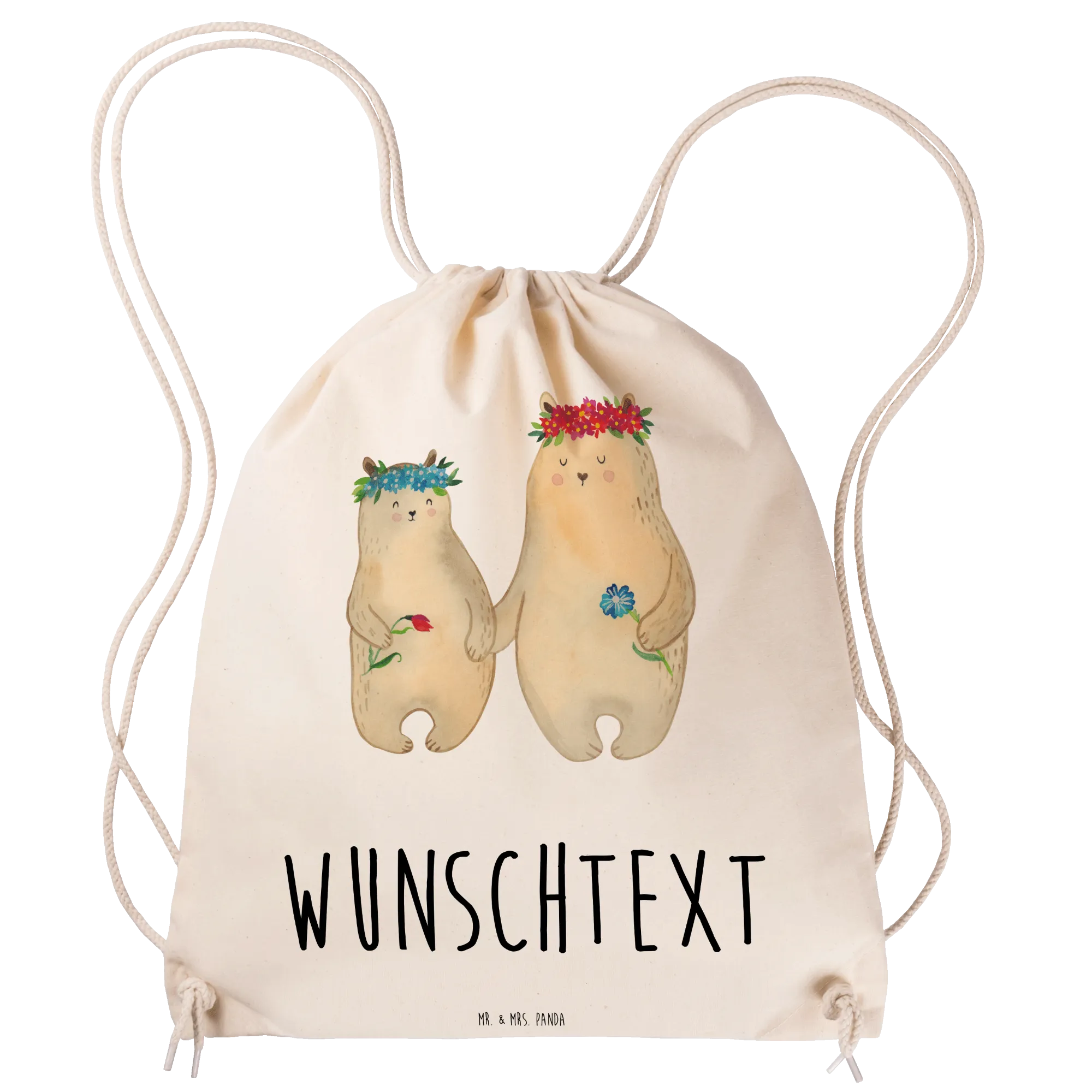 Personalisierter Sportbeutel Bären mit Blumenkranz
