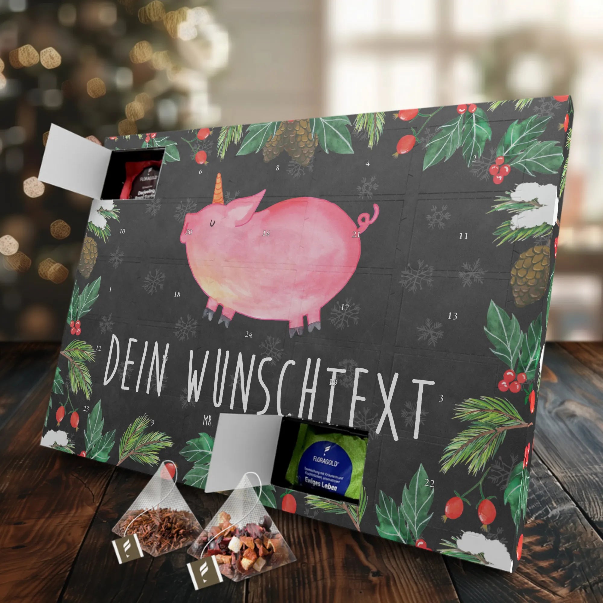 Personalisierter Tee Adventskalender Einhorn Schwein - Kreidetafel