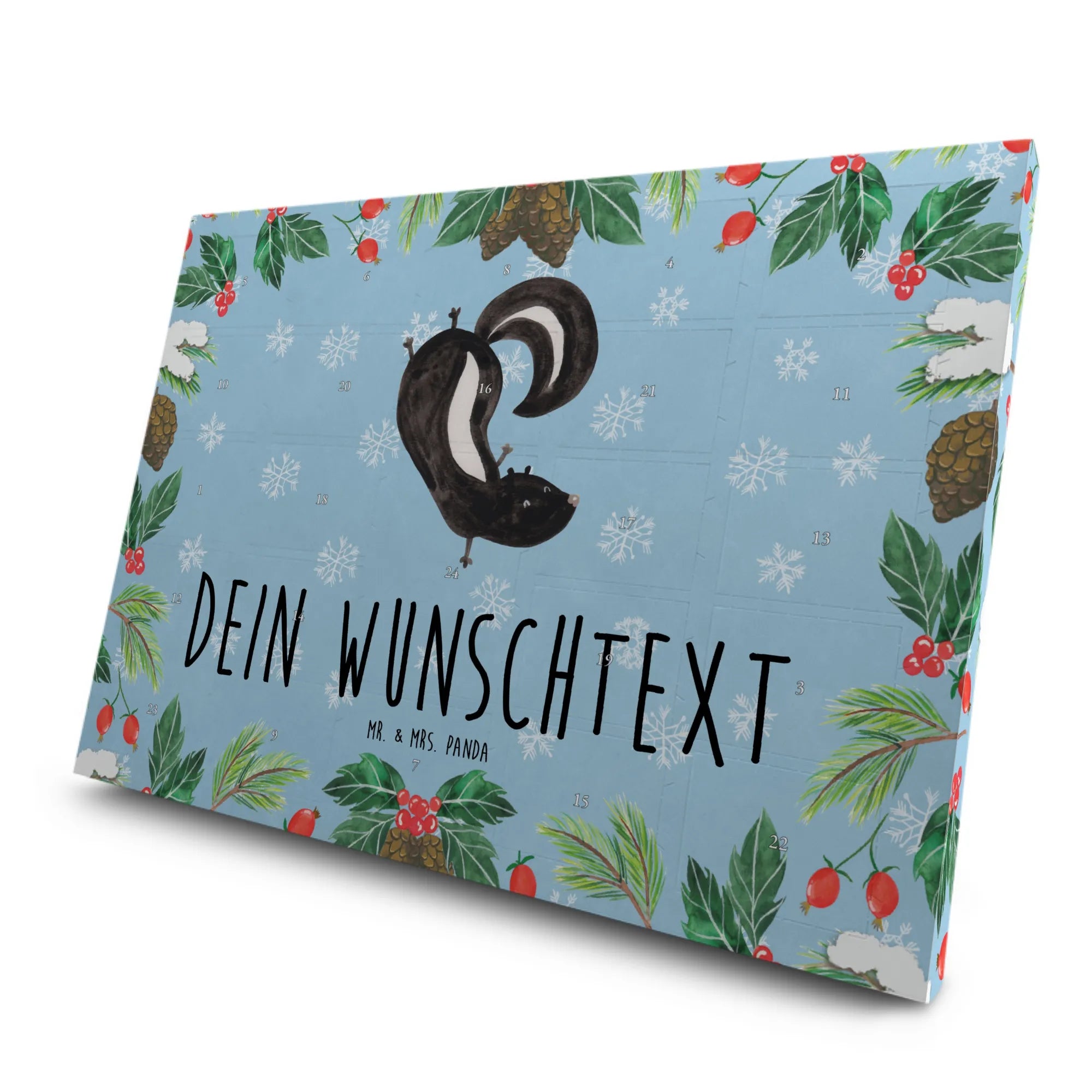 Personalisierter Tee Adventskalender Stinktier Handstand - Kreidetafel