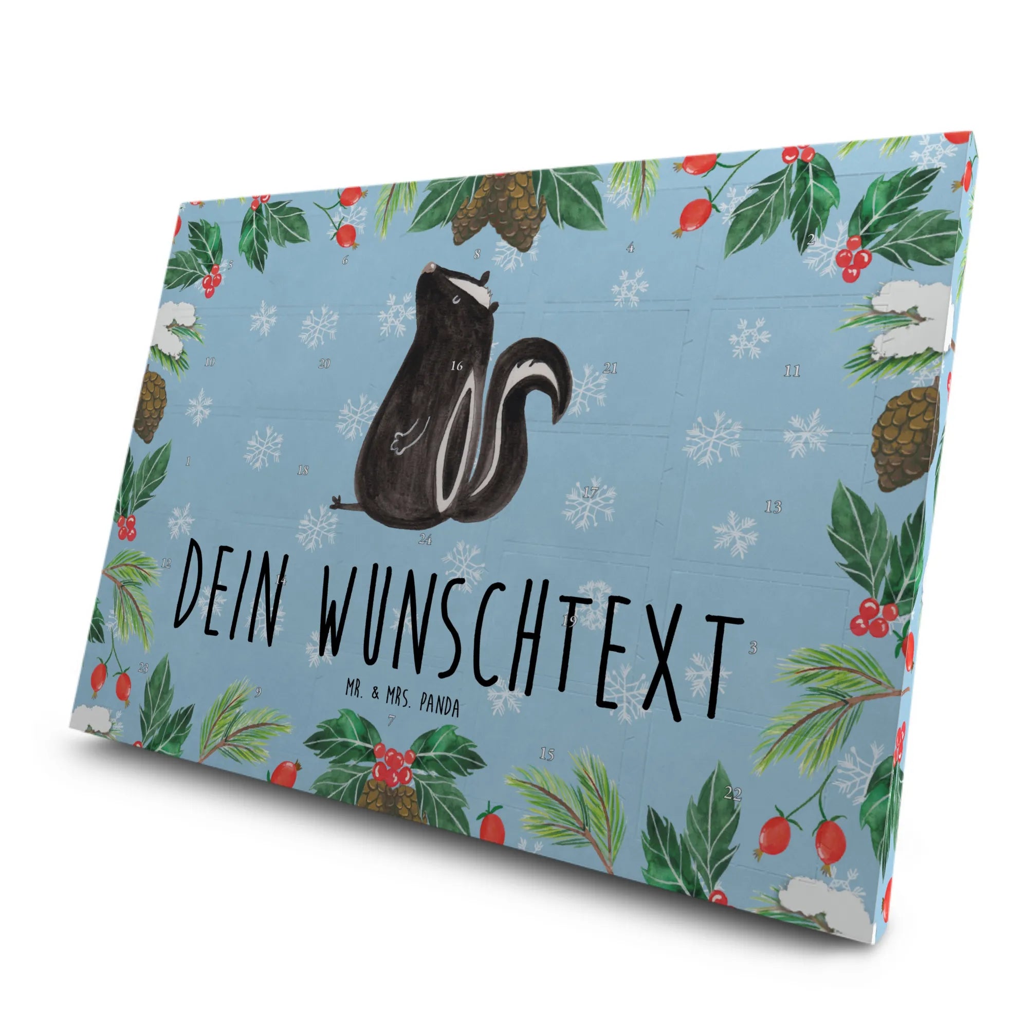 Personalisierter Tee Adventskalender Stinktier Sitzen - Eisblau