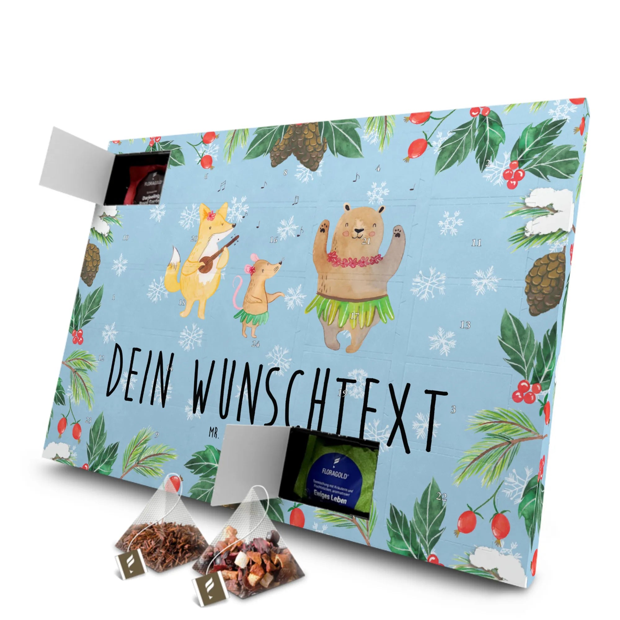 Adventskalender Tee mit Namen Waldtiere Aloha - Eisblau