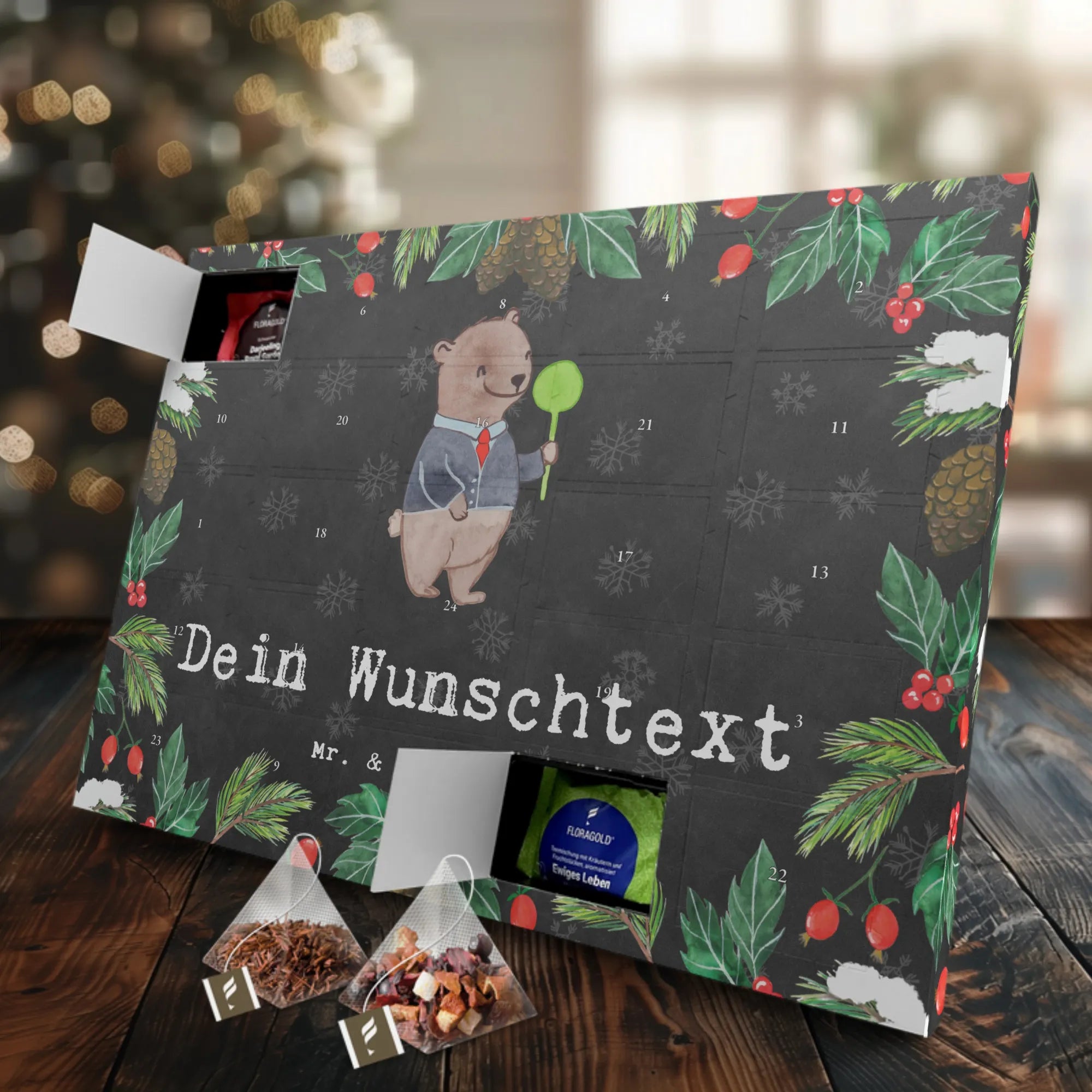 Verschenke jeden Tag Teezauber: Hol dir jetzt deinen personalisierten Tee Adventskalender von Mr. & Mrs. Panda und mach die Vorweihnachtszeit liebevoll und genussvoll!