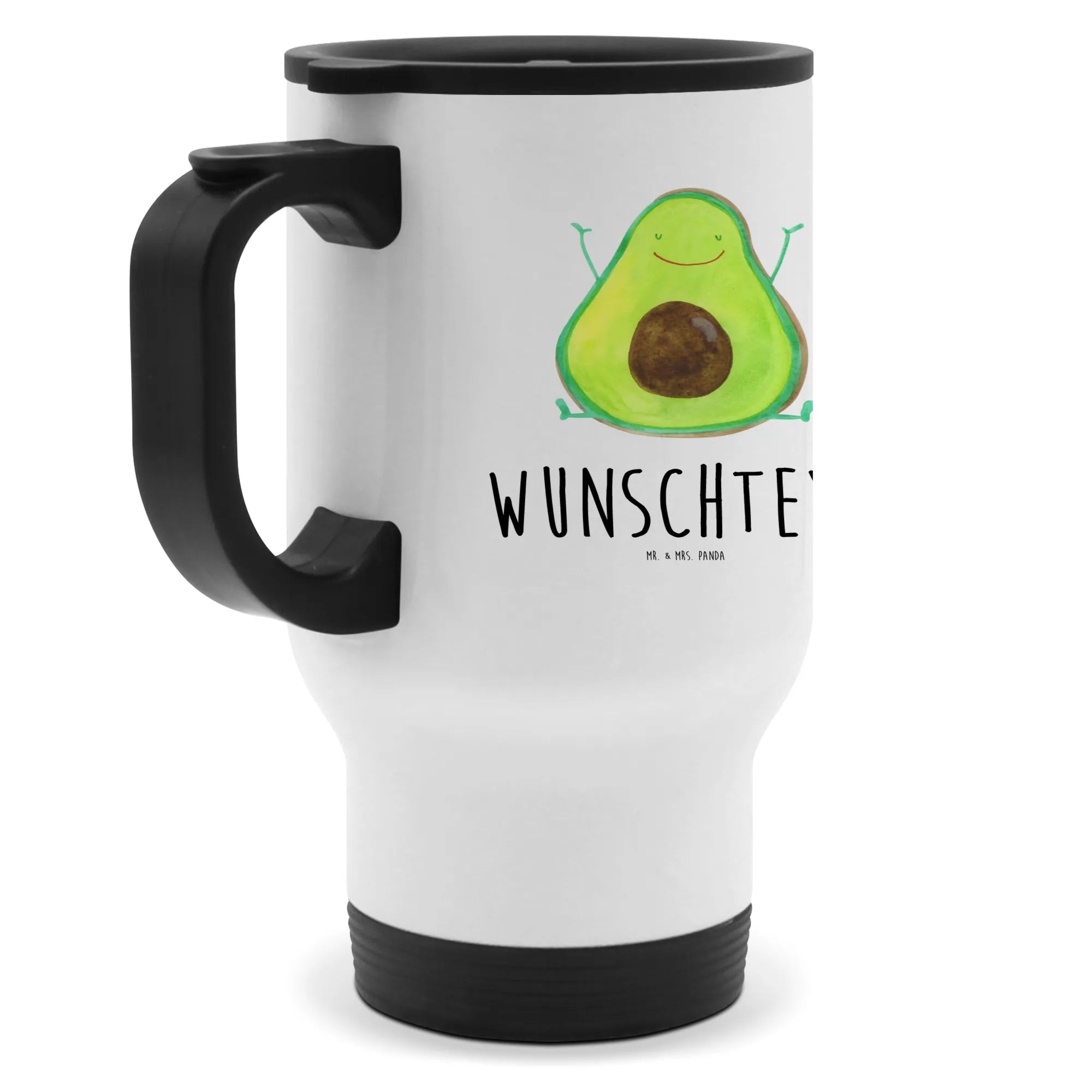Der personalisierte Thermobecher Avocado Happy von Mr. & Mrs. Panda ist das ideale Geschenk für alle Avocado-Liebhaber und gesundheitsbewusste Genießer. Egal ob du auf dem Weg zur Arbeit, in der Natur oder einfach zu Hause bist, dieser Thermobecher bringt Farbe und Freude in deinen Alltag. Die fröhliche Avocado, die begeistert ihre Arme nach oben hält, sorgt für gute Laune und ist ein echter Hingucker.