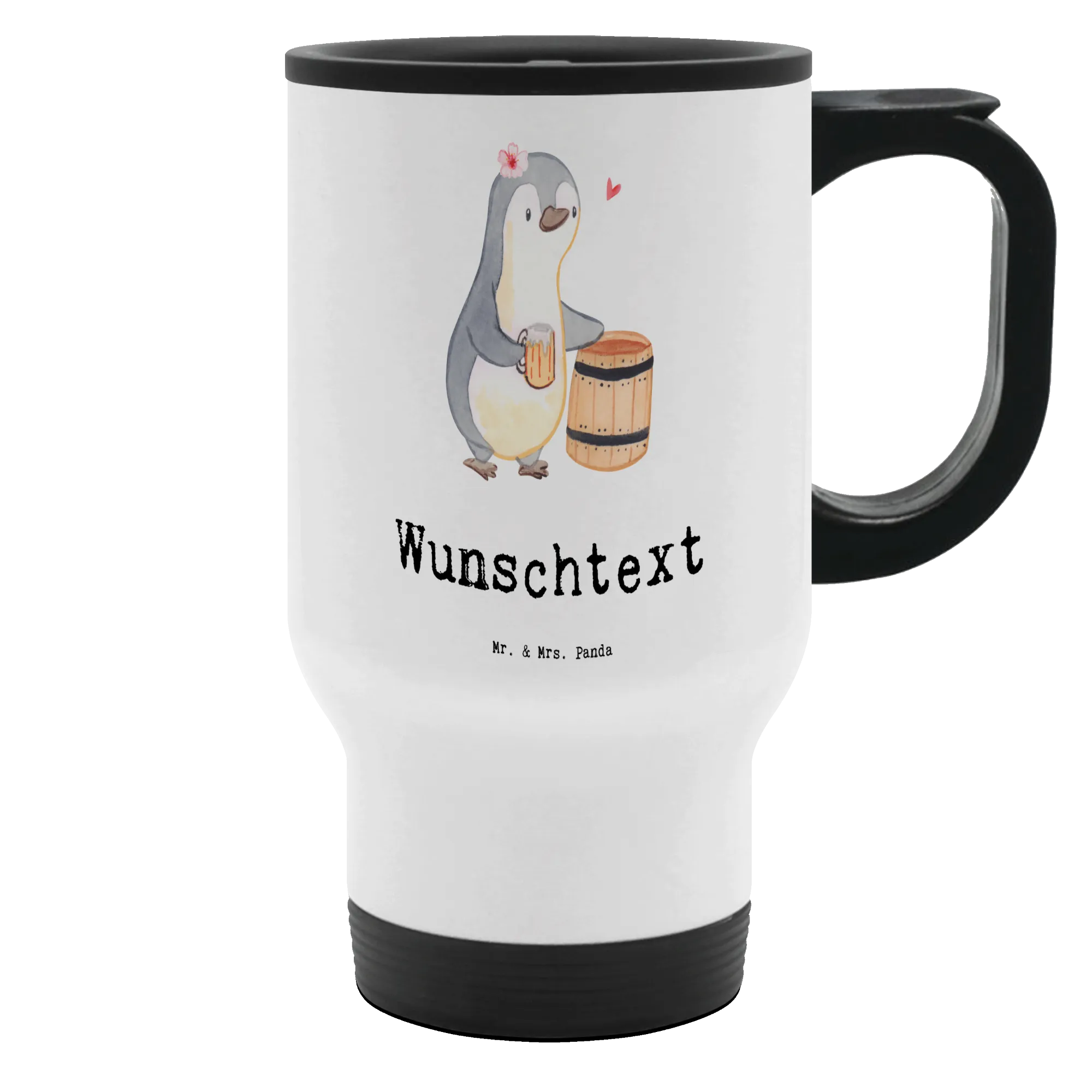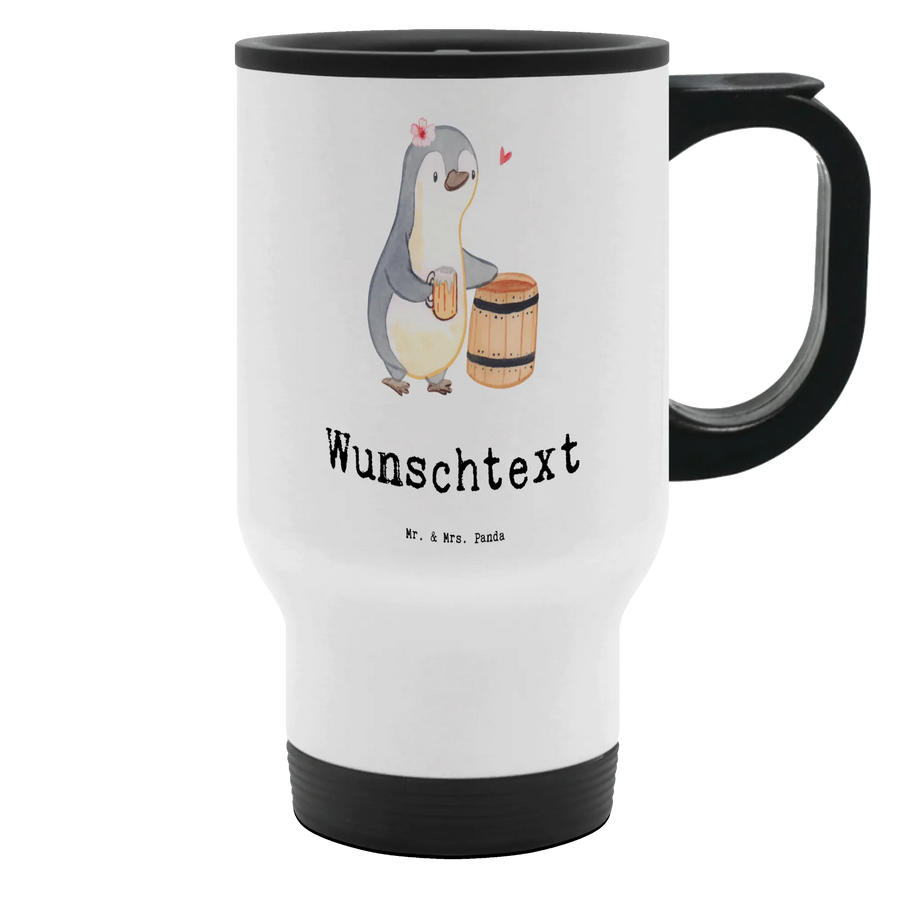 Personalisierter Thermobecher Bierbrauerin mit Herz – Mr. & Mrs. Panda