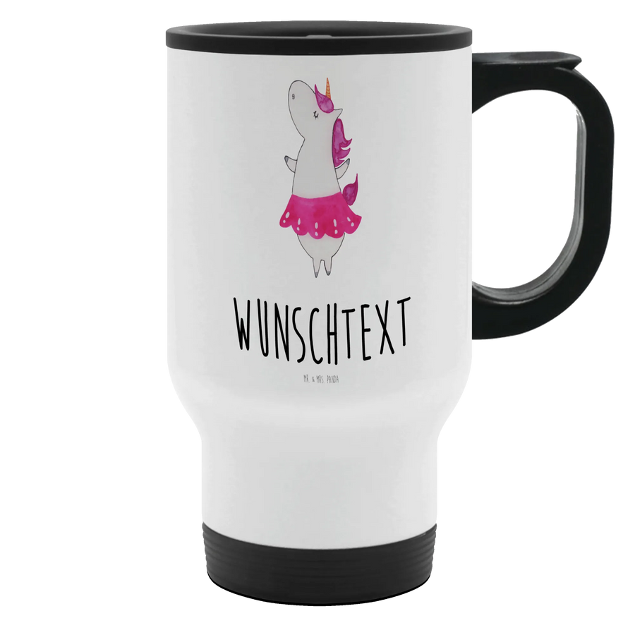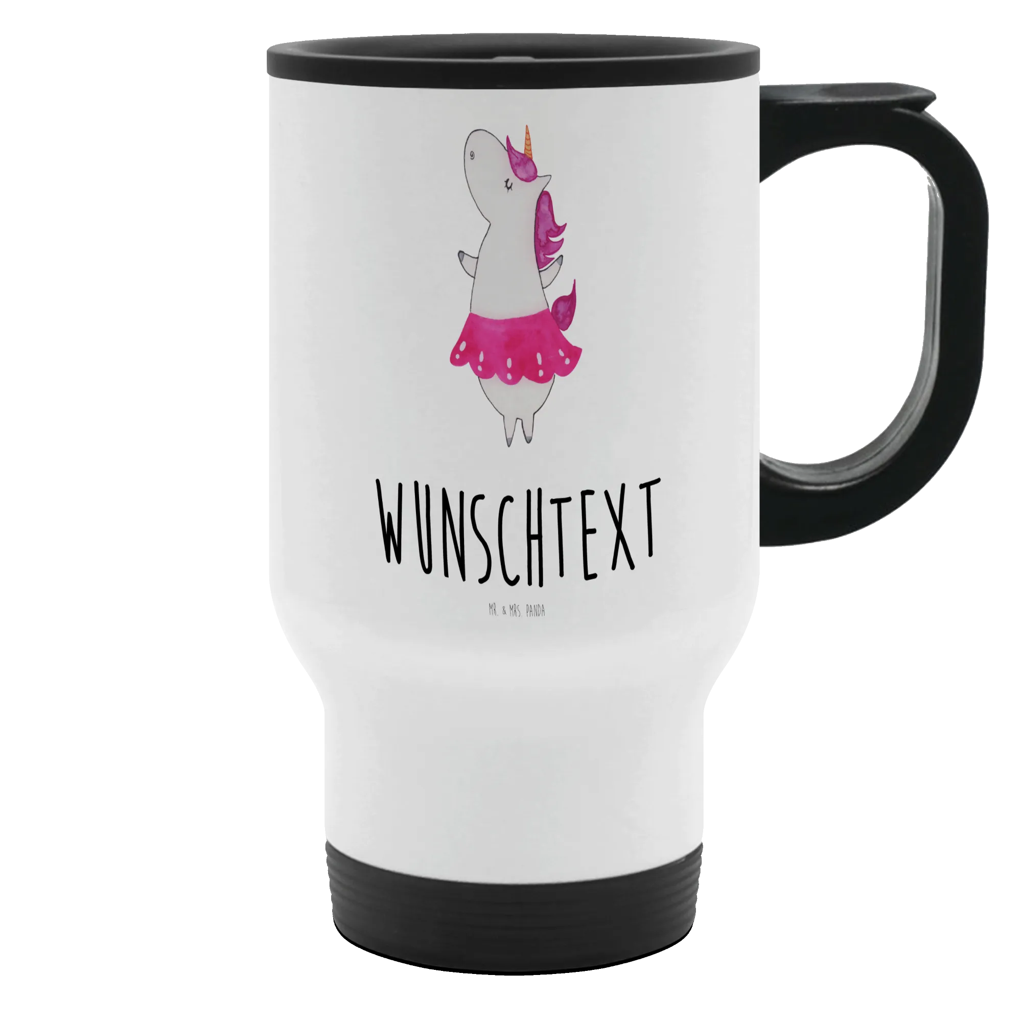 Entdecke unseren einzigartigen personalisierten Thermobecher mit dem zauberhaften Motiv "Einhorn Ballerina" aus der Einhorn-Kollektion von Mr. & Mrs. Panda!