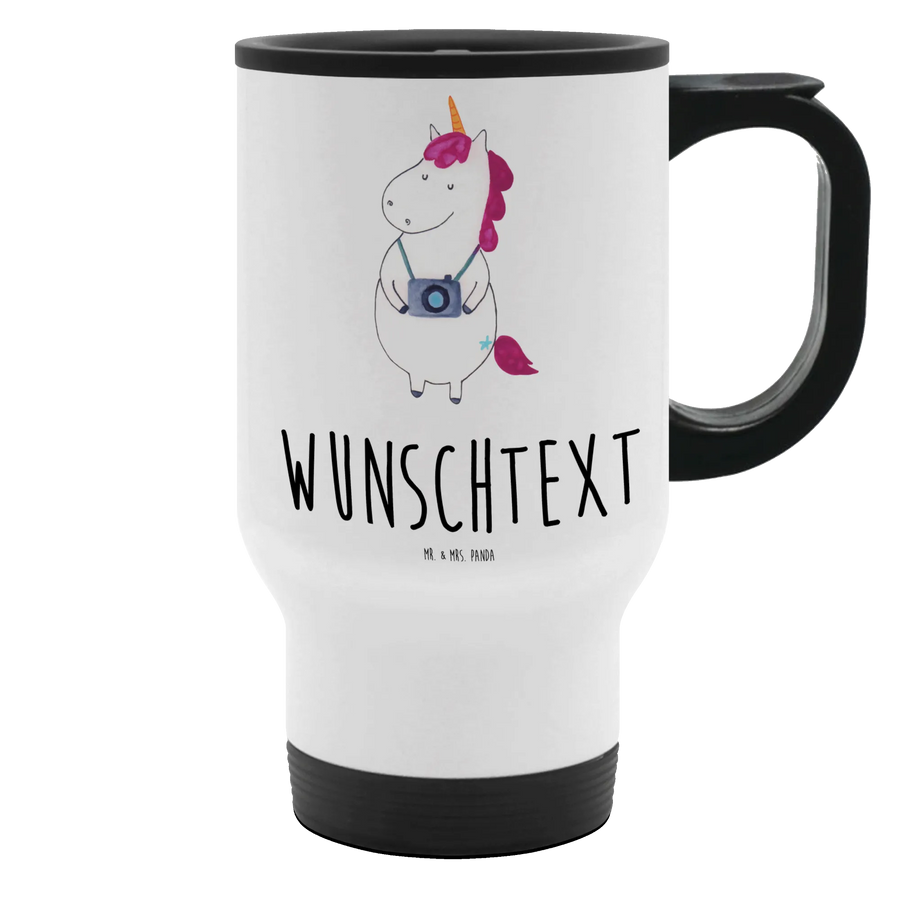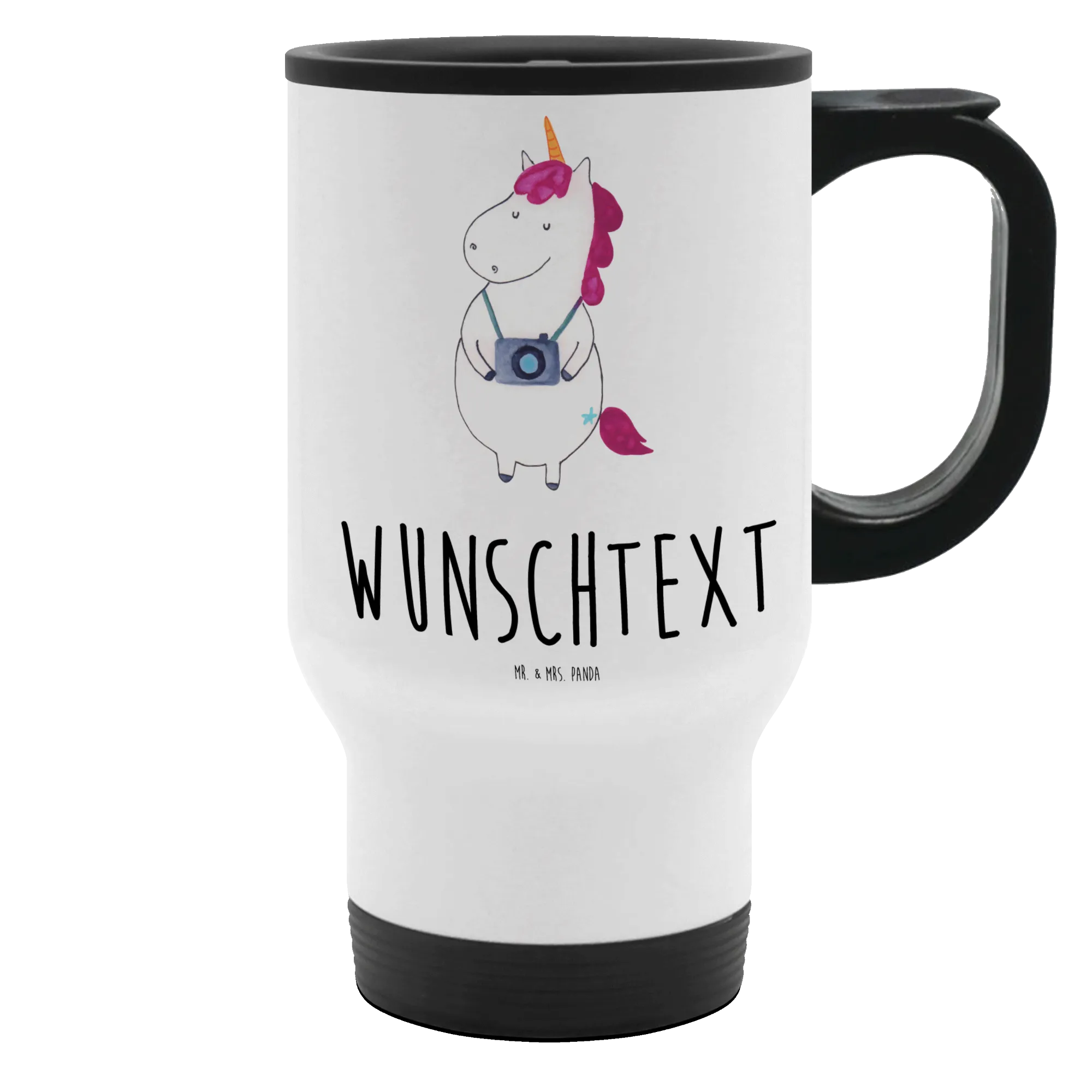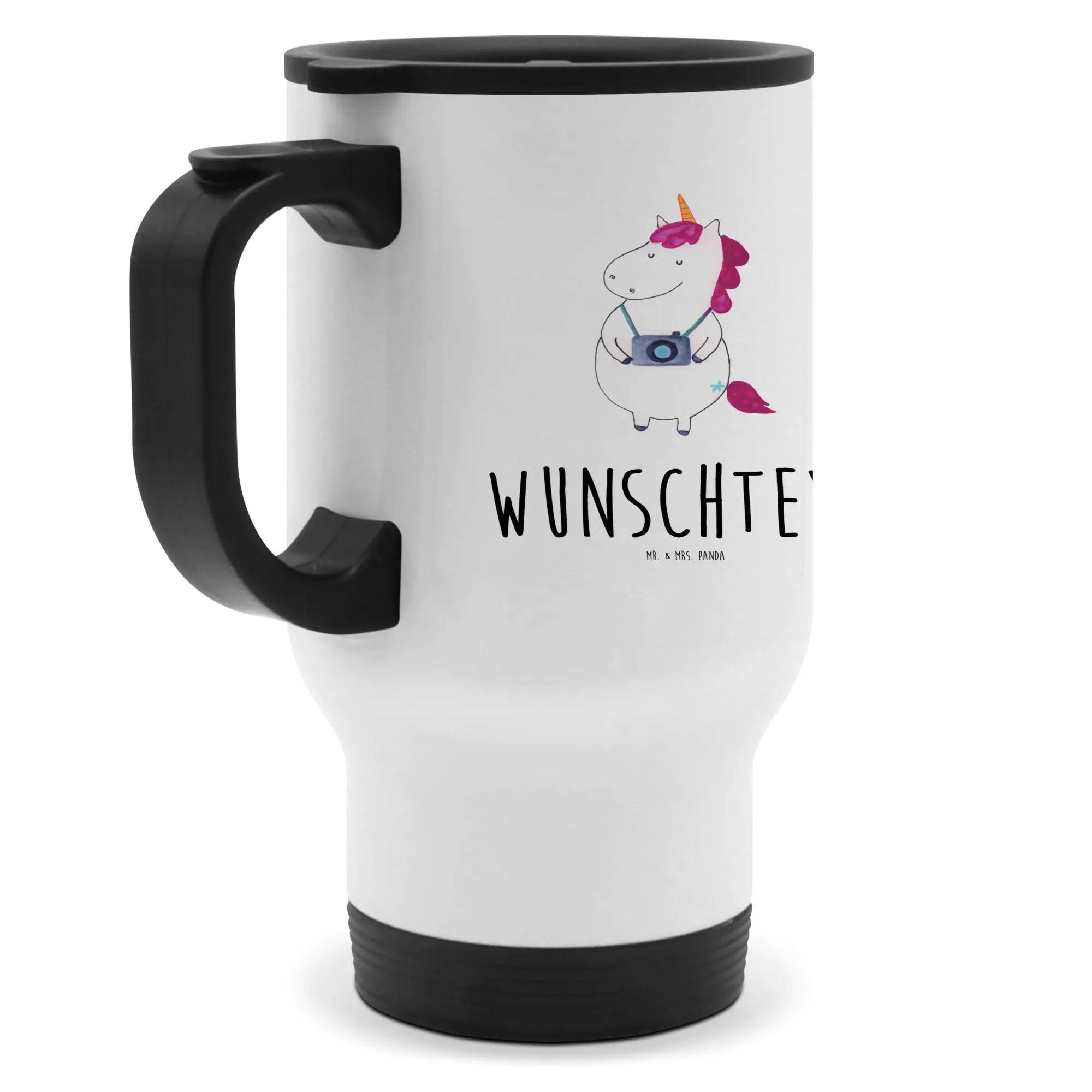 Du suchst nach einem ganz besonderen Geschenk für einen Weltenbummler oder Fotografen in deinem Leben? Dann ist unser personalisierter Thermobecher mit dem niedlichen Einhorn Fotograf genau das Richtige! Der praktische und einzigartige Thermobecher von Mr. & Mrs. Panda wird nicht nur mit einem wunderschönen, handgezeichneten Einhorn-Motiv, sondern auch mit deinem Wunschnamen oder einem persönlichen Text bedruckt. Der Slogan "Ich komme gleich! Muss nur noch kurz die Welt entdecken." macht diesen Becher zu einem echten Hingucker und begleitet dich auf all deinen Reisen.