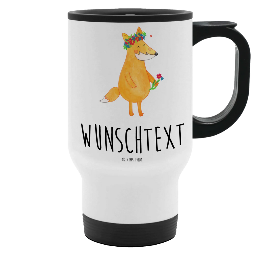 Entdecke den perfekten Begleiter für deine Kaffeepause - den personalisierte Thermobecher Fuchs Blumenliebe von Mr. & Mrs. Panda!