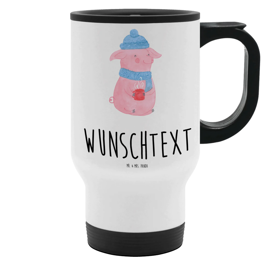 Suchst du das perfekte Geschenk für die kalten Wintertage? Dann ist unser personalisierten Thermobecher "Lallelndes Glühschwein" aus der Winter Kollektion genau das Richtige für dich! Dieser einzigartig gestaltete Thermobecher ist nicht nur funktional, sondern auch ein echter Hingucker! Mit einem süßen, lächelnden Schweinchen, das winterlich gekleidet ist, bringt er Freude und Gemütlichkeit in die kalte Jahreszeit. Das rosa Schwein trägt eine blaue Mütze und einen blauen Schal und hält eine dampfende Tasse in der Hand – perfekt für einen warmen Glühwein oder andere Heißgetränke.