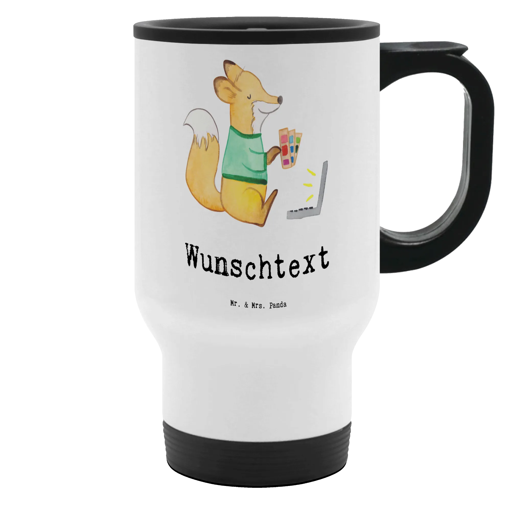 Der personalisierte Thermobecher "Modejournalist mit Herz" von Mr. & Mrs. Panda ist das perfekte Geschenk für jeden Modejournalisten oder aspirierenden Reporter. Mit seinem niedlichen Design und dem bezaubernden Slogan "Du bist nur ein halber Mensch, wenn du kein Modejournalist bist", macht er jeden Tag im Büro ein Stückchen schöner.