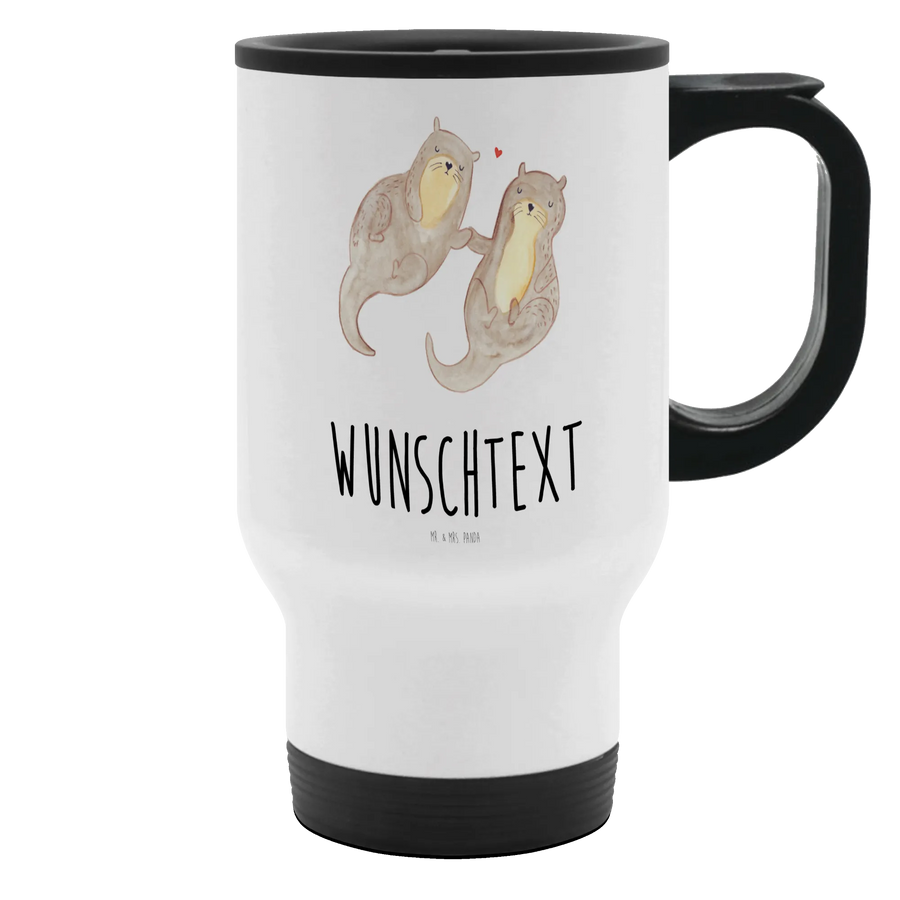 Personalisierter Thermobecher Otter händchenhaltend