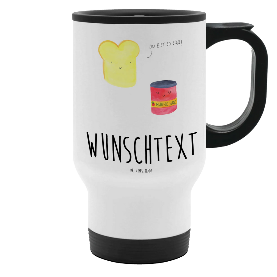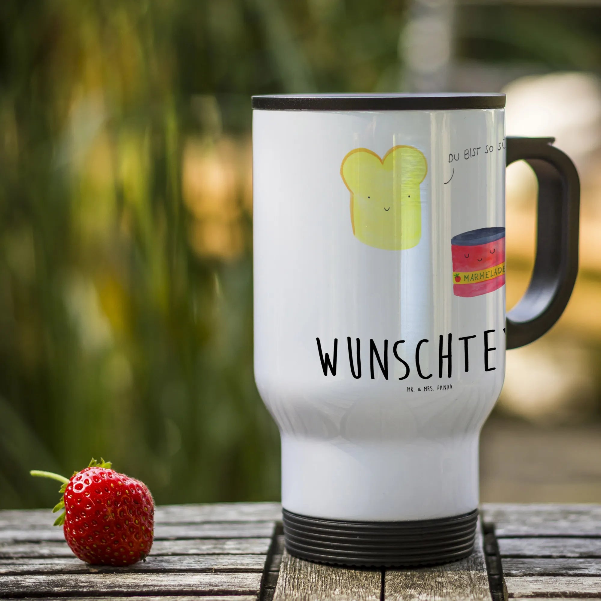 Dieser personalisierte Thermobecher mit dem süßen Motiv Toast & Marmelade aus der Kollektion Small World von Mr. & Mrs. Panda ist das perfekte Geschenk für alle, die gerne ihre Heißgetränke mit einem Hauch von Persönlichkeit genießen. Egal, ob du ein leidenschaftlicher Kaffeetrinker, Teeliebhaber oder einfach nur jemand bist, der morgens gerne seine Getränke unterwegs genießen möchte – dieser Thermobecher ist genau das Richtige für dich!