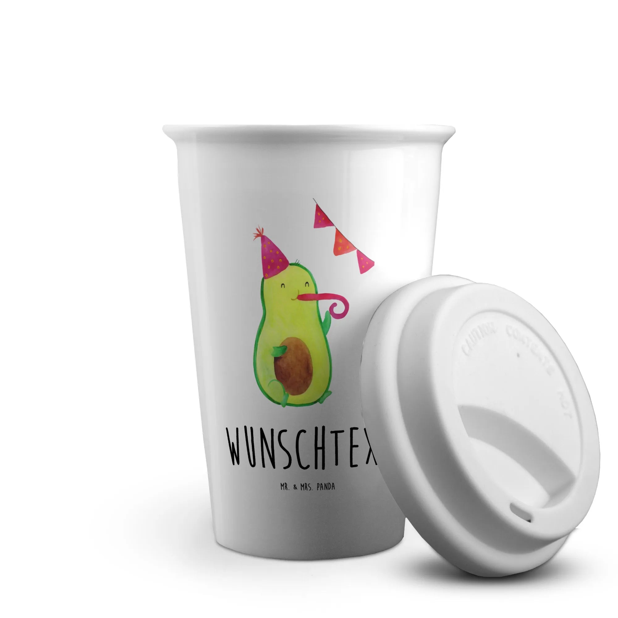 Party time! Hol dir den personalisierten To Go Becher „Avocado Party Time“ von Mr. & Mrs. Panda – perfekt für alle Avocado-Fans, Veggies und Gute-Laune-Liebhaber. Die süße Avocado mit Partyhut und Partypfeife sorgt bei jedem Schluck für ein Lächeln und macht deinen Coffee To Go zu etwas ganz Besonderem. Du kannst den Becher mit deinem Wunschtext oder Namen personalisieren – so wird er zum unverwechselbaren Reisebecher mit Namen.