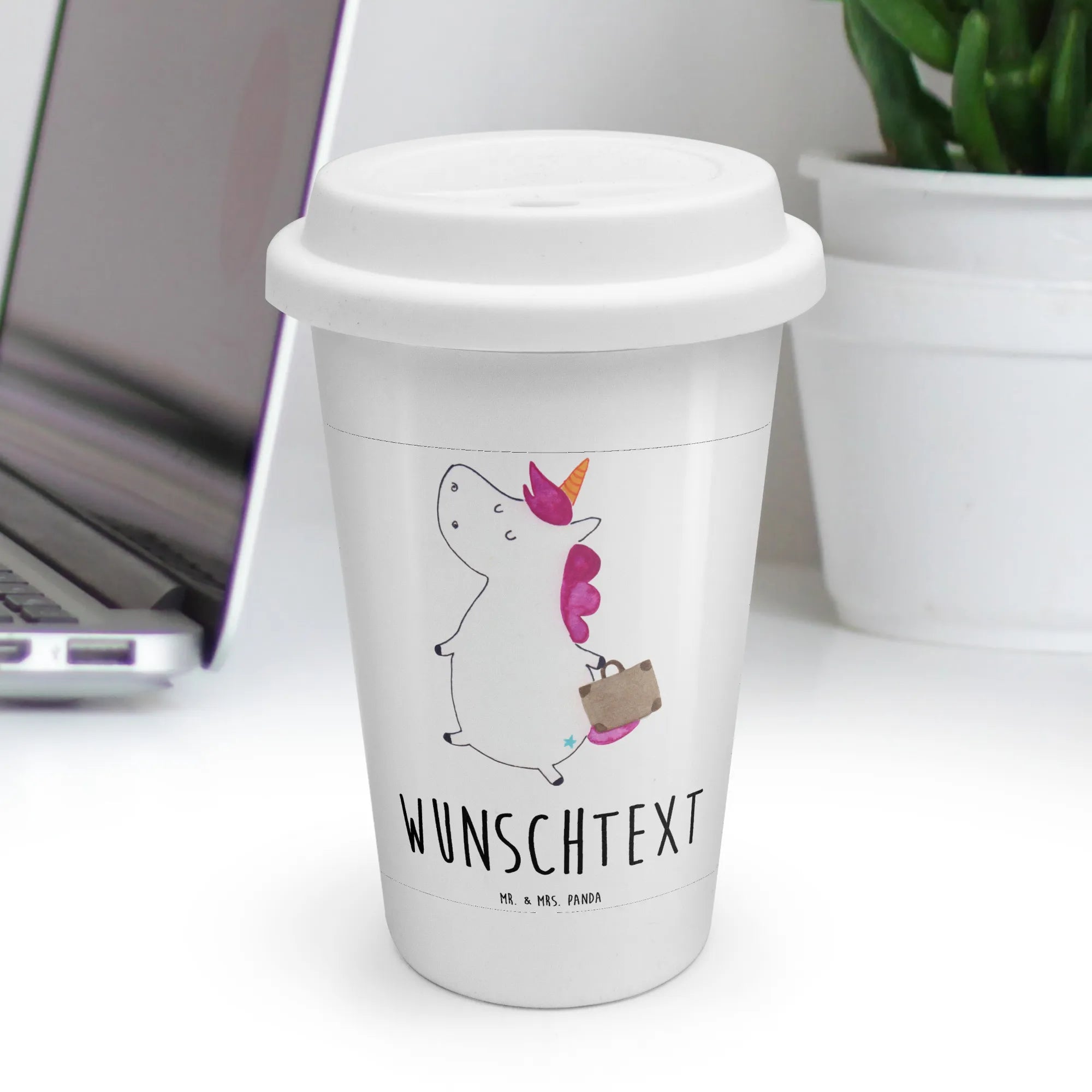 Personalisierter To Go Becher Einhorn Koffer