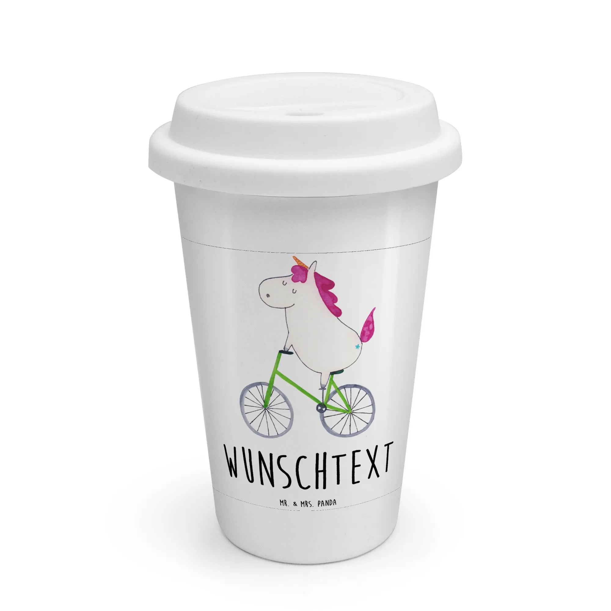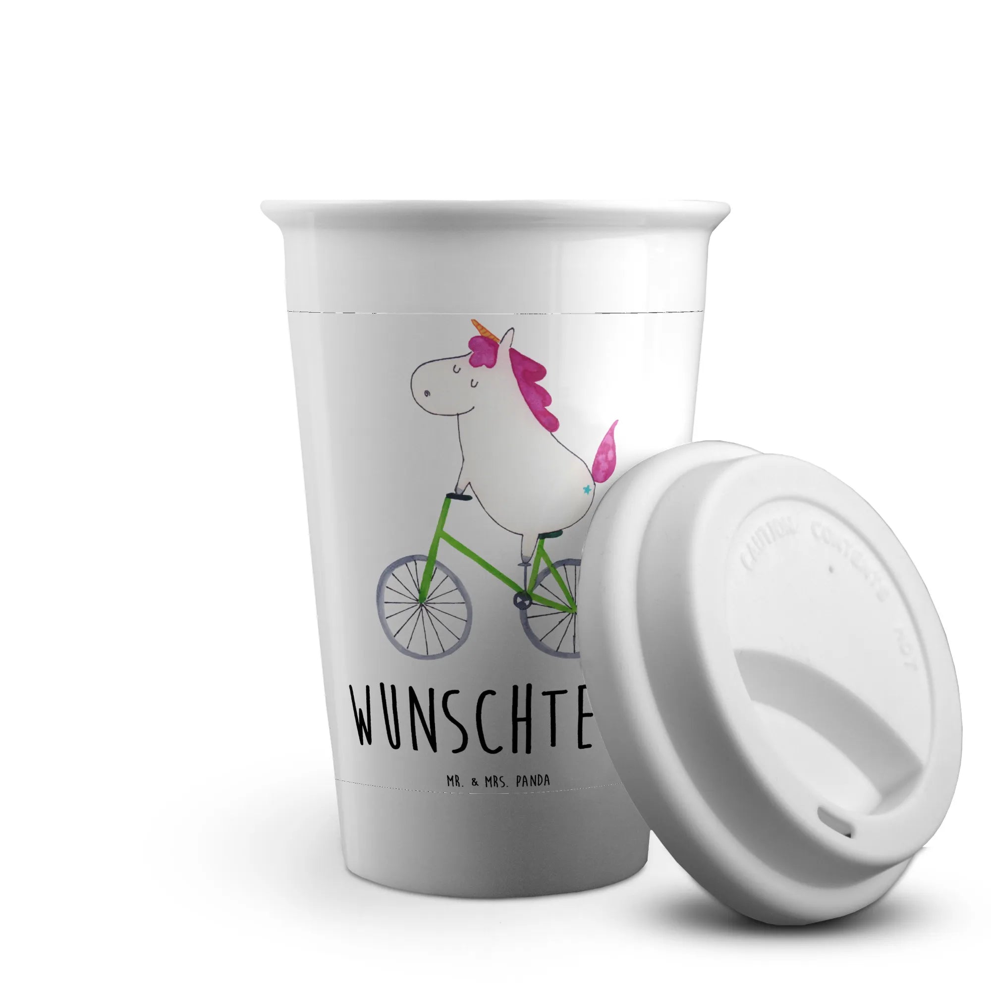 Der personalisierte To Go Becher Einhorn Radfahrer von Mr. & Mrs. Panda ist nicht nur ein einzigartiges Trinkgefäß, sondern auch das perfekte Geschenk für alle, die die zauberhafte Welt der Einhörner lieben. Mit einem Inhalt von 300 ml und einem doppelwandigen Keramikdesign hält dieser Thermobecher deine Getränke länger warm, während der brillante fotodruck die niedliche Illustration eines Einhorns zeigt, das fröhlich mit dem Fahrrad fährt.