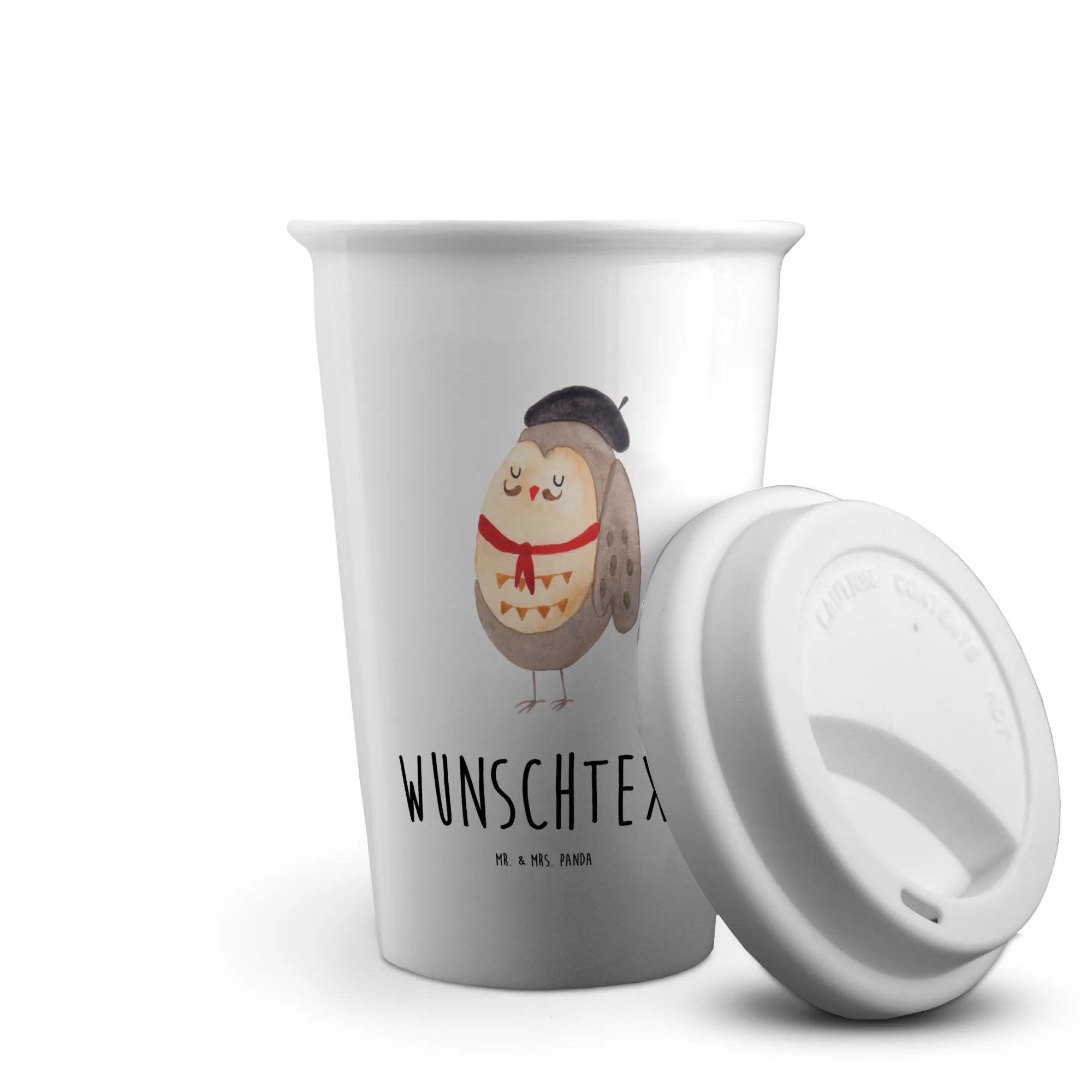 In einem hektischen Alltag ist es wichtig, seinen Lieblingskaffee immer dabei zu haben. Der personalisierte To Go Becher mit dem bezaubernden Motiv der Eule im französischen Stil aus der Kollektion Eulen von Mr. & Mrs. Panda ist der perfekte Begleiter für alle, die ihren Kaffee auf stylische Art und Weise genießen möchten. Diese niedliche Eule, die mit Hut, Fliege und Schnurrbart daherkommt, bringt dir ein Stück französisches Flair direkt nach Hause.