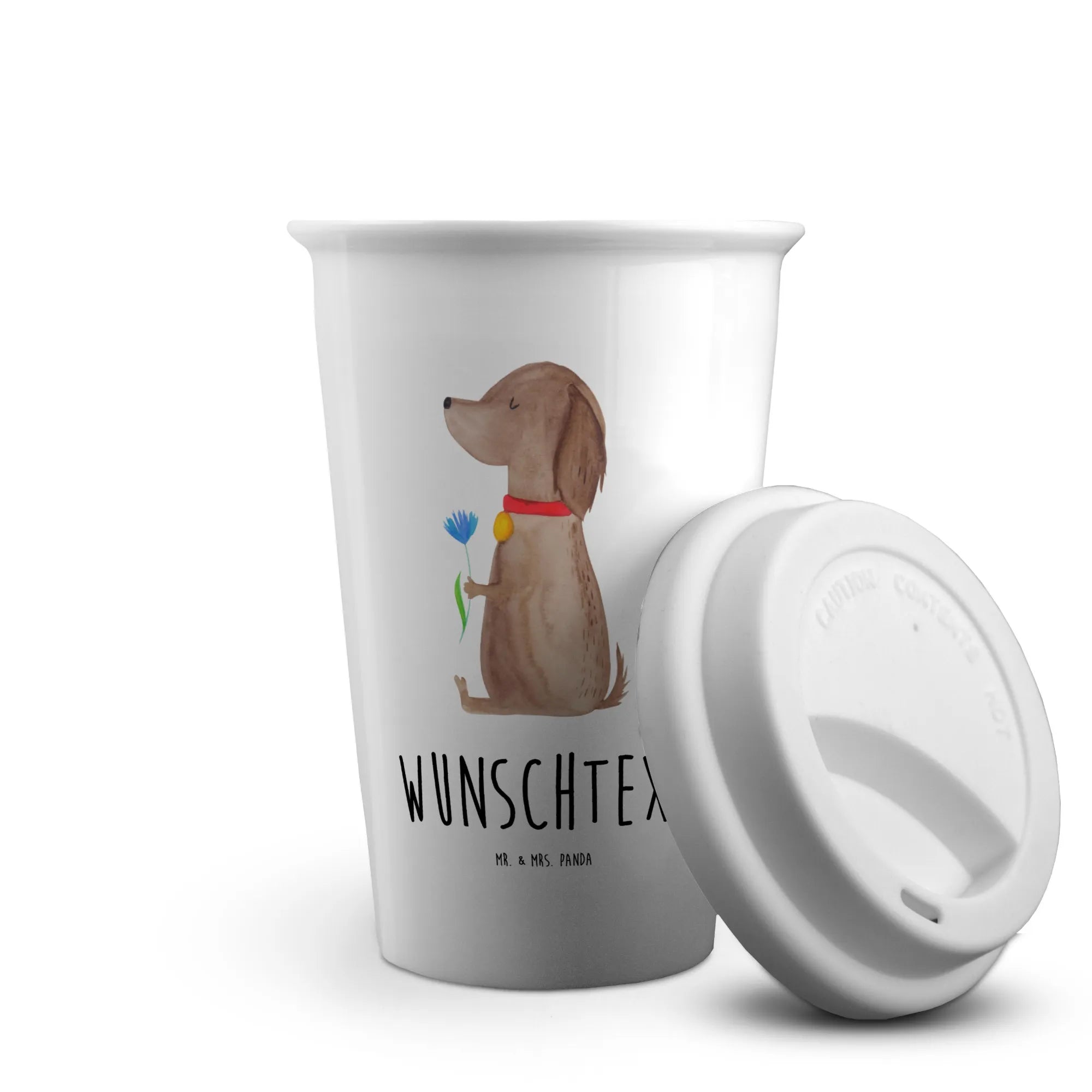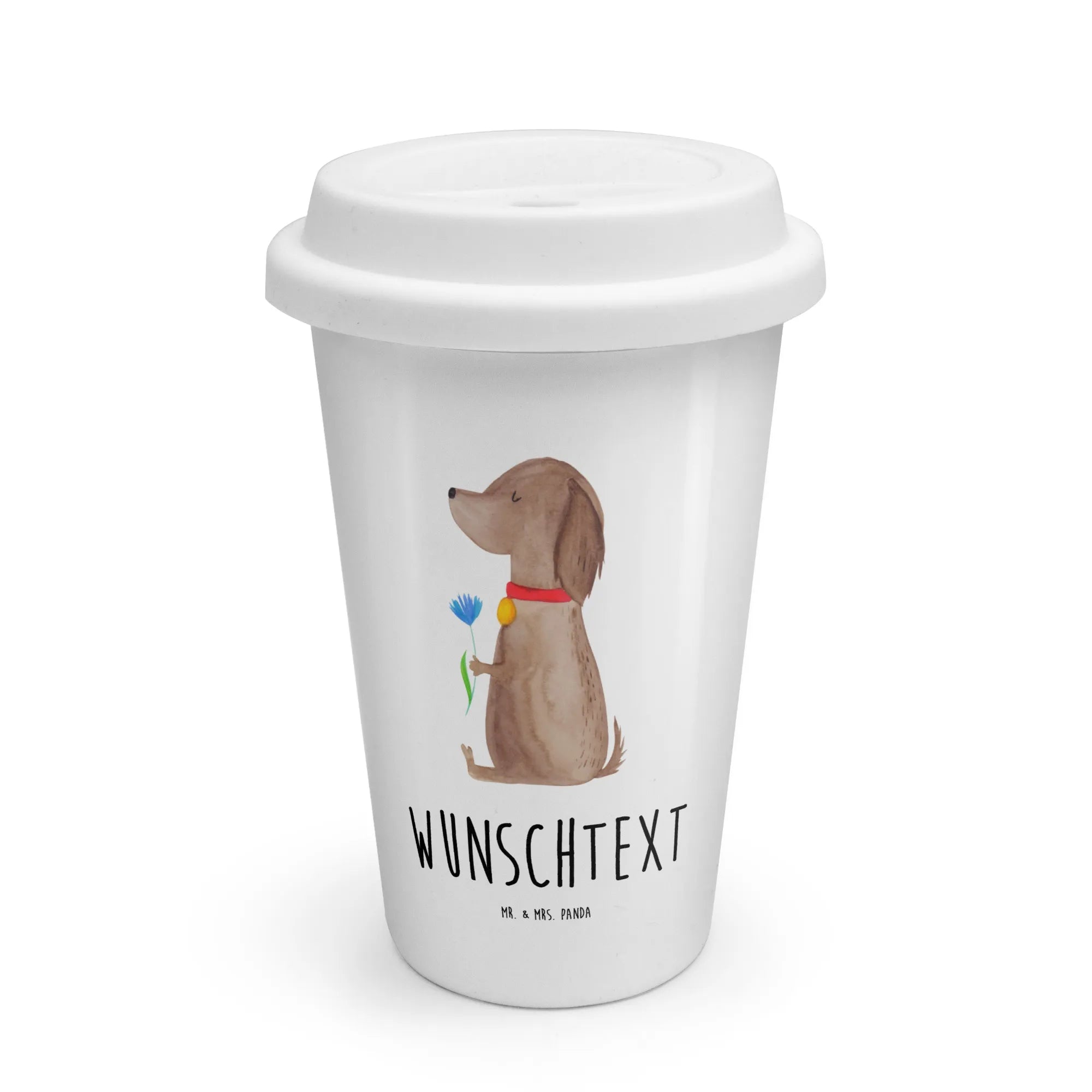 Du bist auf der Suche nach dem perfekten Geschenk für einen Hundeliebhaber? Dann ist unser personalisierter To Go Becher mit dem zarten Motiv "Hund Blume" genau das Richtige!