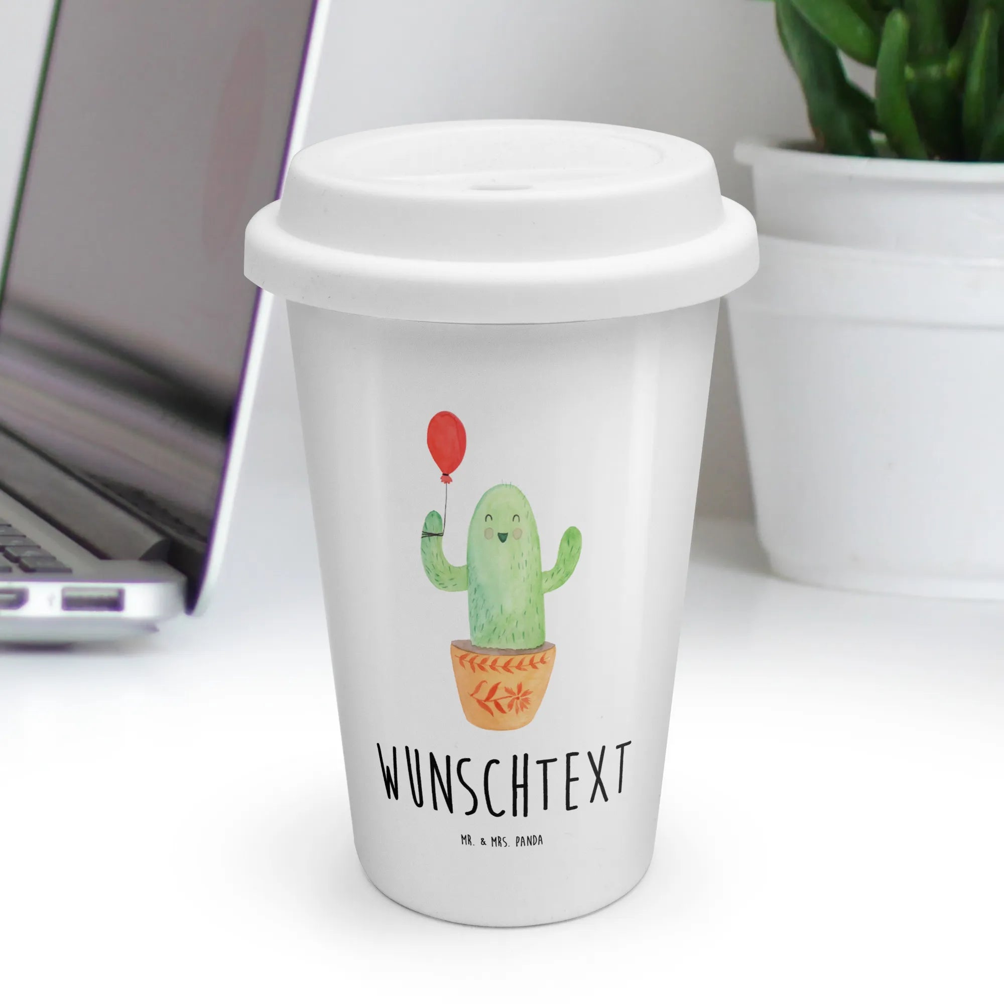 Personalisierter To Go Becher Kaktus Luftballon – Mr. & Mrs. Panda