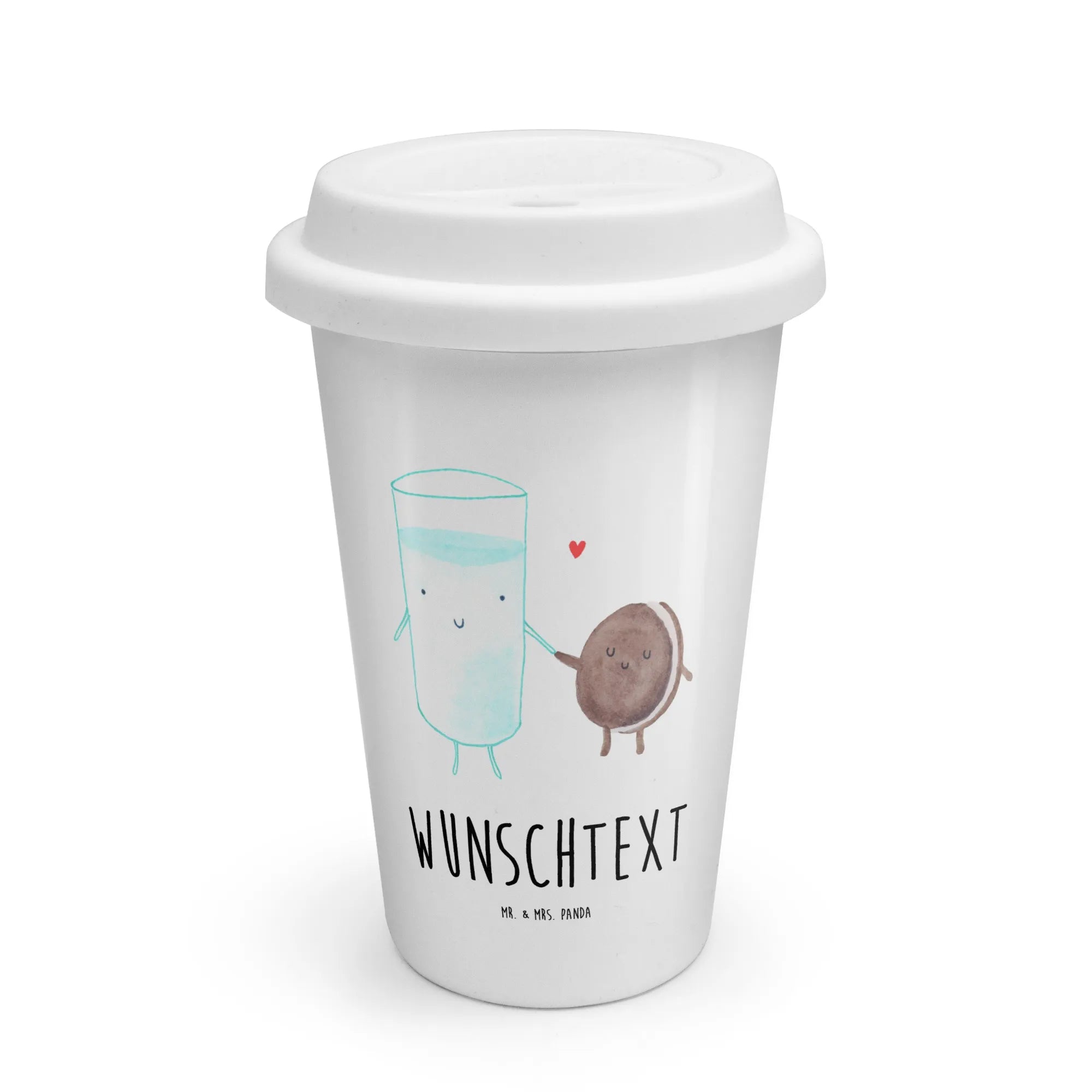 Der Becher ist nicht nur mit einem süßen Motiv einer Milch und eines Kekses, die Händchen halten, bedruckt, sondern lässt sich auch mit deinem persönlichen Wunschtext oder Namen individuell gestalten. So wird der Becher zu deinem ganz eigenen, einzigartigen Begleiter und dem perfekten Geschenk für Menschen, die du liebst.