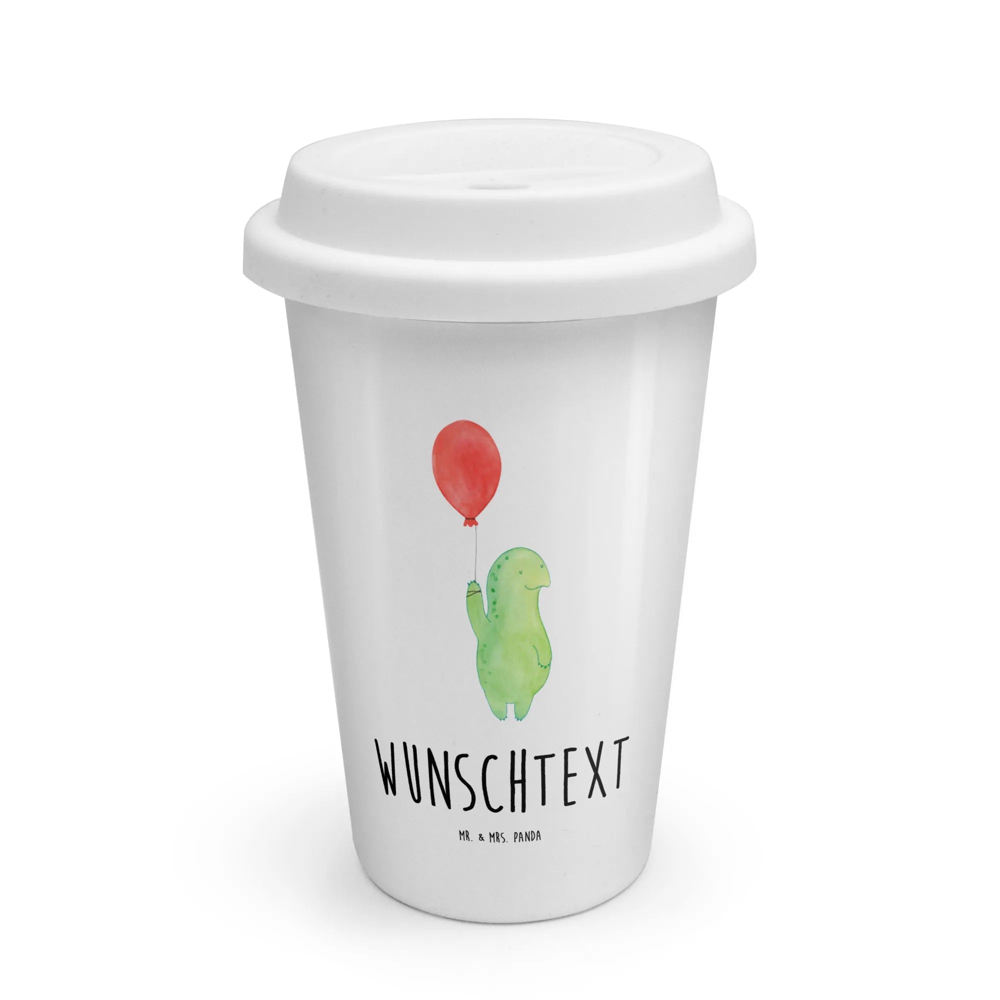 Du suchst das perfekte Geschenk für einen Schildkröten-Fan? Dann ist unser personalisierter To Go Becher mit dem süßen Motiv der Schildkröte Luftballon genau das Richtige! Der Becher ist nicht nur ein praktischer Begleiter für unterwegs, sondern bringt auch ein Lächeln ins Gesicht. Auf diesem wunderschönen Thermobecher schwebt eine niedliche Schildkröte an ihrem Luftballon und vermittelt das Motto 'Mutausbruch statt Wutausbruch'. Das Motiv ist liebevoll von Mrs. Panda handgezeichnet und wird jedem Tierliebhaber das Herz erwärmen.