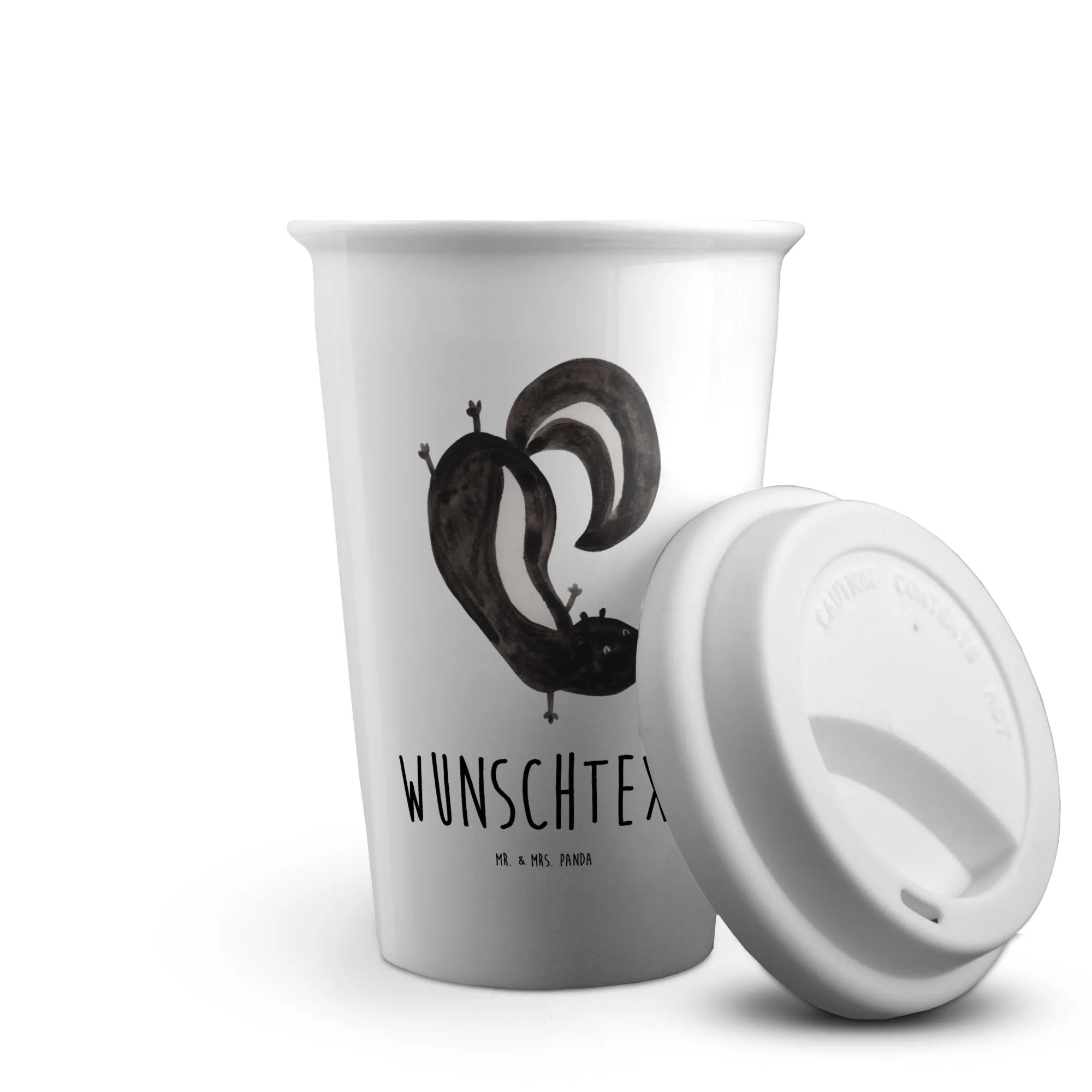 Der personalisierte To Go Becher mit dem süßen Stinktier-Motiv im Handstand von Mr. & Mrs. Panda ist das perfekte Geschenk für alle, die das Besondere lieben. Ob für die aufgeschlossene Freundin, die dich morgens mit einem Lächeln begrüßt, oder für den besten Freund, der seinen Kaffee gerne im Freien genießt – dieser Becher ist für jede Gelegenheit geeignet.