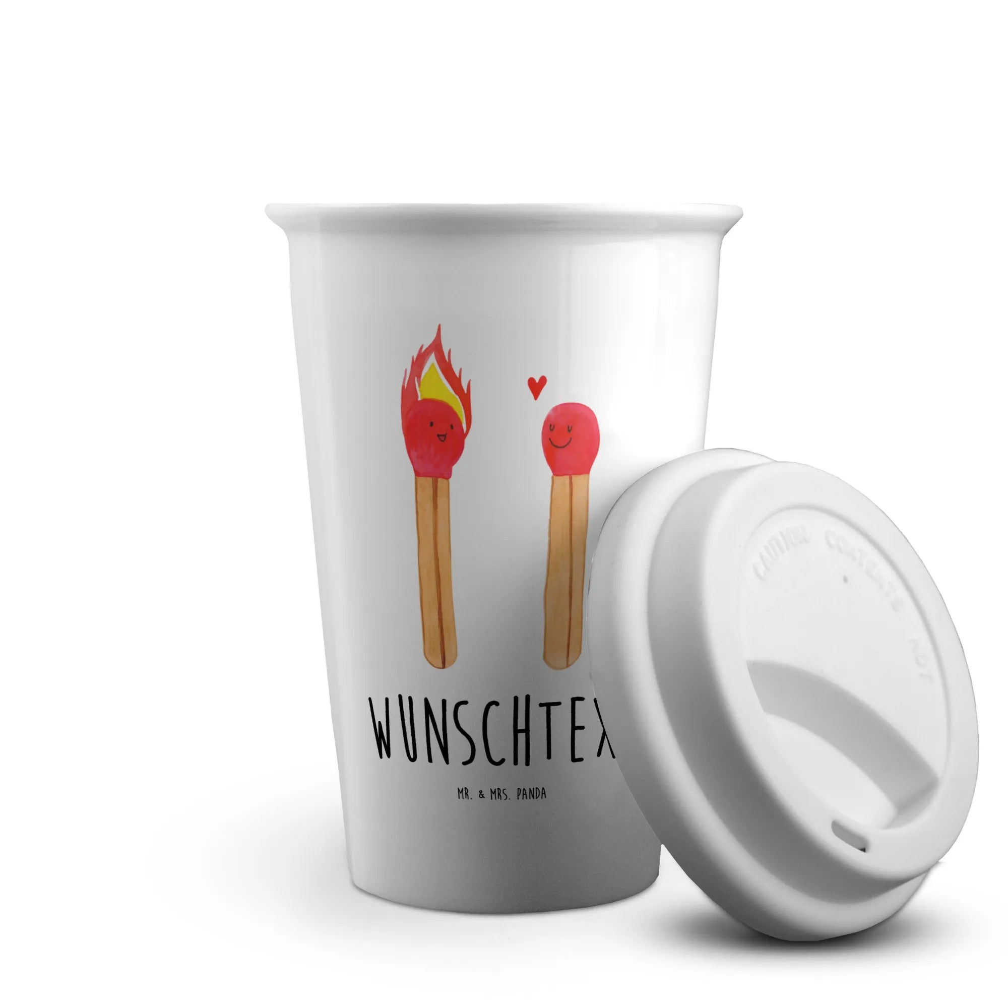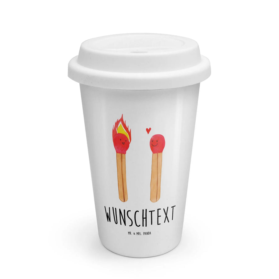 Der personalisierte To Go Becher "Streichhölzer" aus der Liebe Kollektion von Mr. & Mrs. Panda ist das perfekte Geschenk für Verliebte, die ihre Liebe auf besondere Art und Weise ausdrücken möchten. Mit einem brillanten Fotodruck, der zwei fröhliche Streichhölzer zeigt, die sich liebevoll zueinander neigen, bringst du nicht nur Farbe in den Alltag deines Partners oder deiner Partnerin, sondern zauberst auch ein Lächeln auf ihr Gesicht. Das linke Streichholz mit seinem leuchtend roten Kopf und gelben Flammen strahlt Freude aus, während das rechte Streichholz, ebenfalls glücklich, von einem kleinen Herz begleitet wird. Diese charmante Verbindung der beiden Streichhölzer symbolisiert eure innige Beziehung und macht diesen Kaffee To Go Becher zu etwas ganz Besonderem.