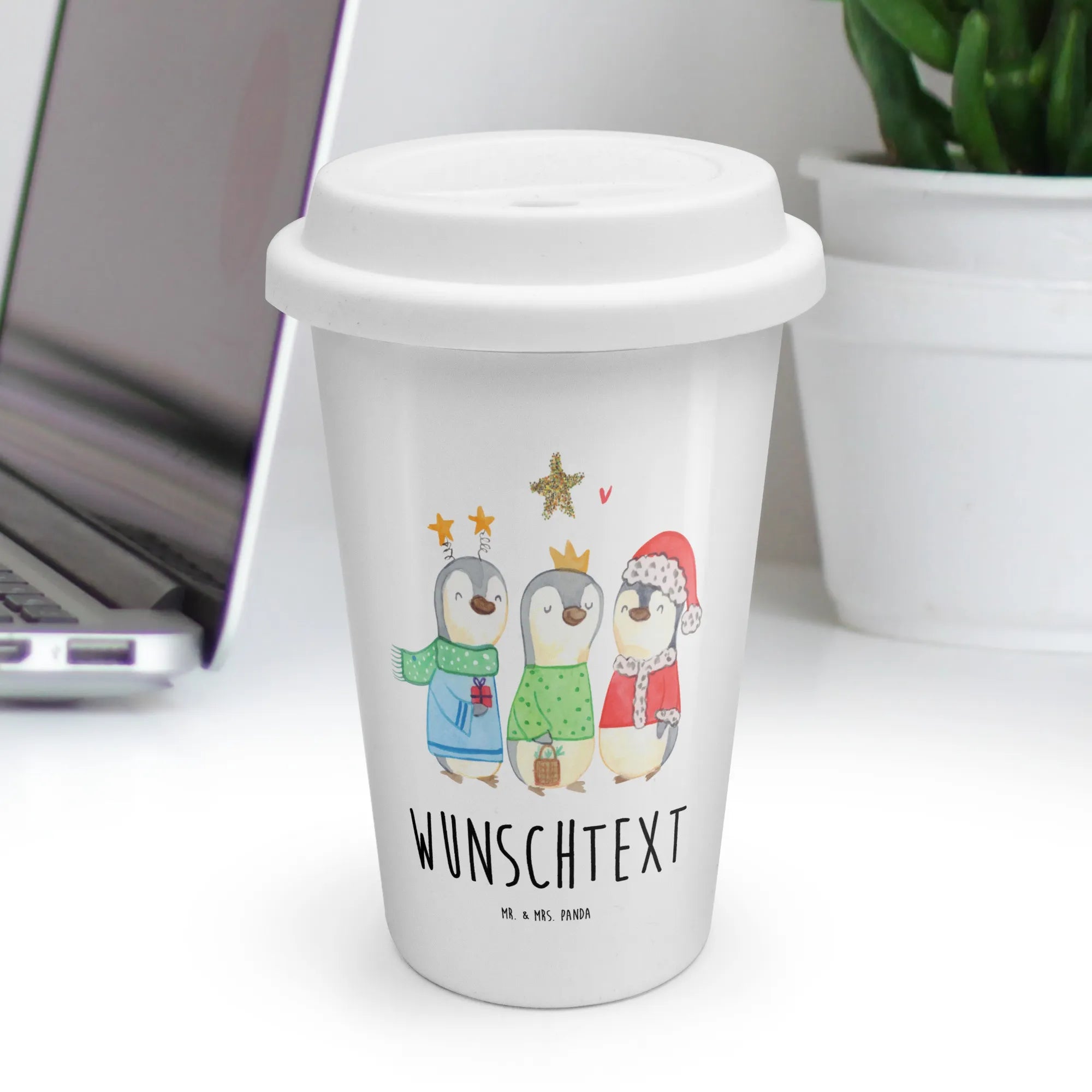 Der personalisierte To Go Becher mit dem bezaubernden Wintermotiv der Heiligen drei Könige von Mr. & Mrs. Panda ist das perfekte Geschenk für all diejenigen, die die weihnachtliche Zeit lieben. Dieser wunderschöne Kaffeebecher begeistert mit einem liebevoll gestalteten Design und einem herzlichen Slogan: "Ich wünsche dir fröhliche Weihnachten und einen leuchtenden Stern, der dir an dunklen Tagen den Weg leuchtet...".