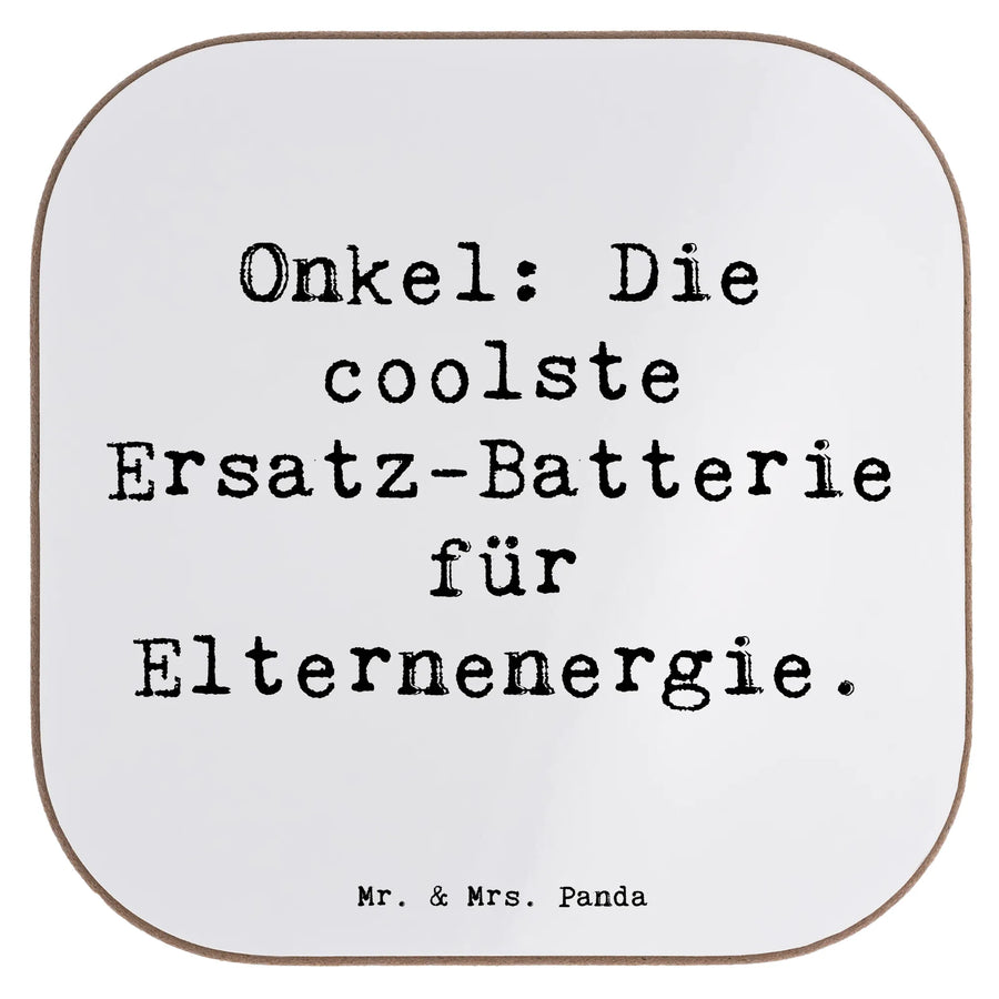 Die Sprüche und Designs wurden mit viel Herz entwickelt und zeigen auf charmante Weise, wie viel die Familie bedeutet. Mit dem Slogan 'Onkel: Die coolste Ersatz-Batterie für Elternenergie.' ist ein Lächeln garantiert! Hast du schon mal daran gedacht, wie viele verrückte und lustige Erinnerungen Onkel und ihre Nichten oder Neffen miteinander teilen? Diese speziellen Untersetzer schützen nicht nur euren Tisch vor Abdrücken und Kratzern, sie erzählen auch Geschichten!
