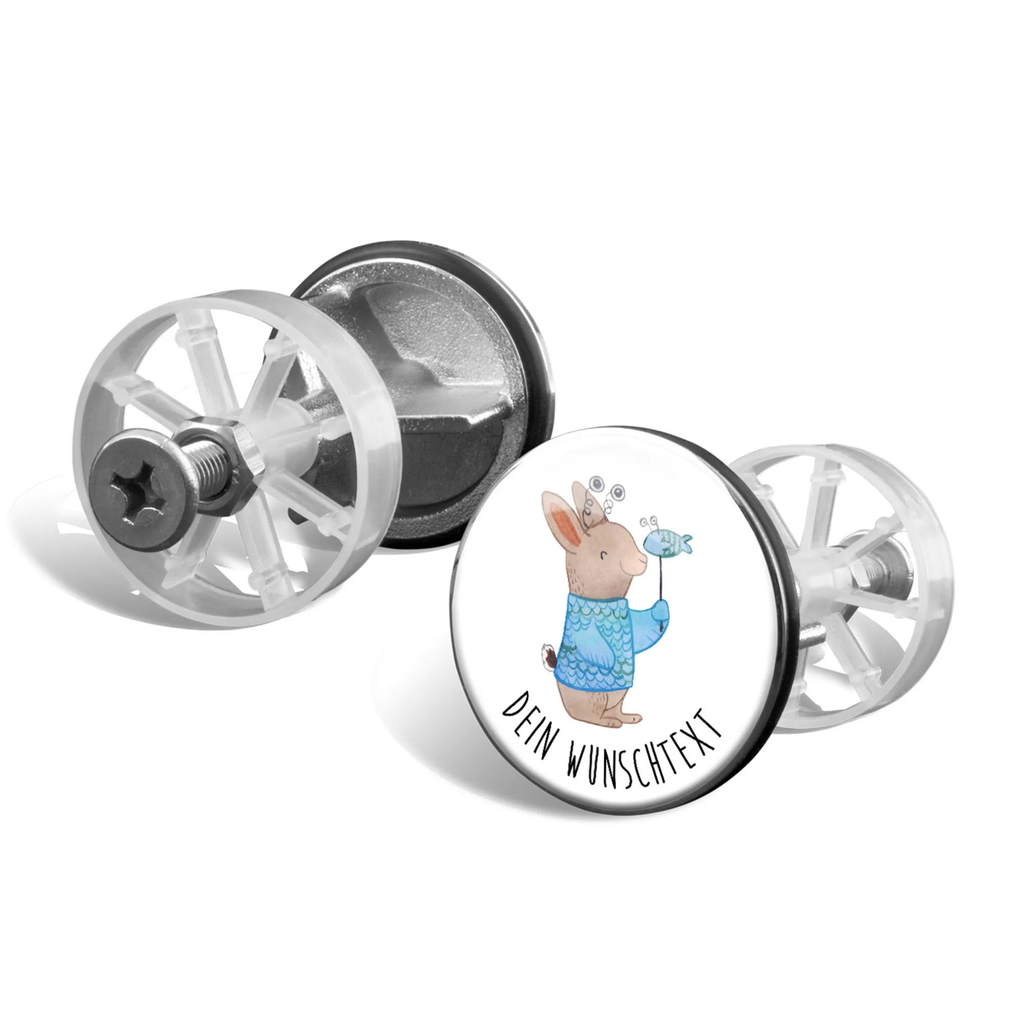 Das besondere an unserem Waschbeckenstöpsel ist die Möglichkeit zur Personalisierung. Du kannst ihn mit deinem Wunschnamen oder einem besonderen Wunschtext versehen. So wird er zu einem ganz persönlichen Geschenk für Geburtstage oder andere Anlässe, das in Erinnerung bleibt. Die süße Illustration des Fisches und das niedliche Kaninchen, das im blauen Fischkostüm steckt, sind nicht nur hübsch anzusehen, sie strahlen auch die positive Energie des Sternzeichens Fische aus. Der Spruch 'Fische-Power: Tief wie der Ozean, frei wie der Fluss.' rundet das Design perfekt ab.