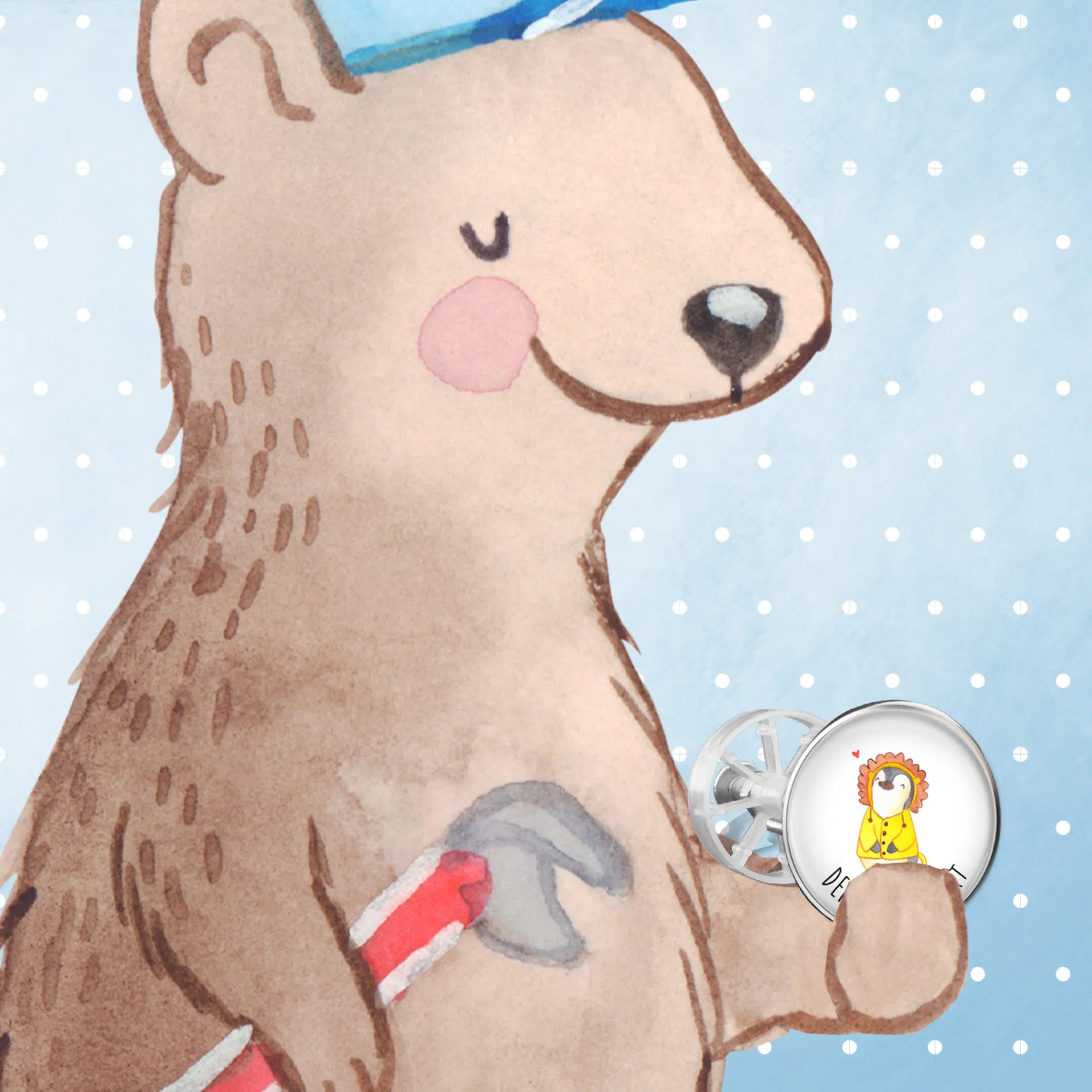 Das liebevoll gestaltete Löwen-Motiv wird mit dem Slogan "Im Herzen Löwe: Kühn wie der Sonnenaufgang, majestätisch wie der König." vervollständigt. So ziert der fröhliche Pinguin im Löwenkostüm deinen Abfluss und bringt ein Lächeln in jeden Tag. Jedes Motiv stammt aus der kreativen Hand von Mrs. Panda und ist ein kleines Kunstwerk für sich.