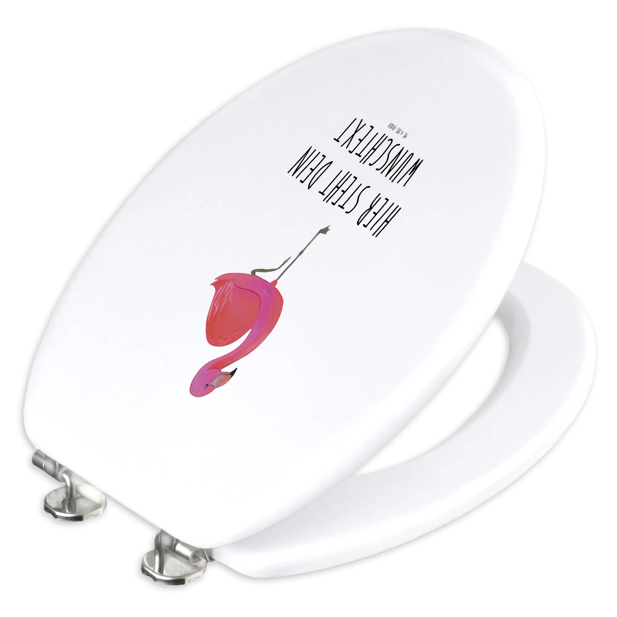 Der personalisierte WC Sitz mit dem einzigartigen Flamingo-Motiv von Mr. & Mrs. Panda ist nicht nur ein echter Blickfang für dein Badezimmer, sondern auch das perfekte Geschenk für all die außergewöhnlichen Menschen in deinem Leben. Ob für deine beste Freundin, deine Geschwister oder deine Kinder – dieser Toilettendeckel bringt nicht nur Farbe, sondern auch eine Prise Spaß und Individualität in den Alltag. Mit dem Spruch 'Ich bin wie ein Flamingo - ein bisschen kurios, aber prächtig und einzigartig' verkörpert er das Gefühl von Selbstliebe und Stolz.