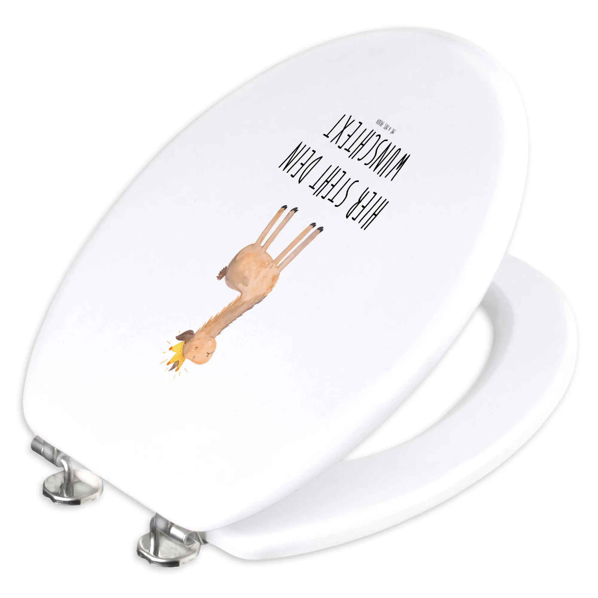 Der personalisierte WC Sitz Motiv Lama König von Mr. & Mrs. Panda ist nicht nur ein praktisches, sondern auch ein unglaublich lustiges Geschenk! Mit seinem niedlichen Lama-Design und dem tollen Spruch 'Ich bin hier der König!' bringt dieser WC Sitz ganz viel Persönlichkeit ins Badezimmer.