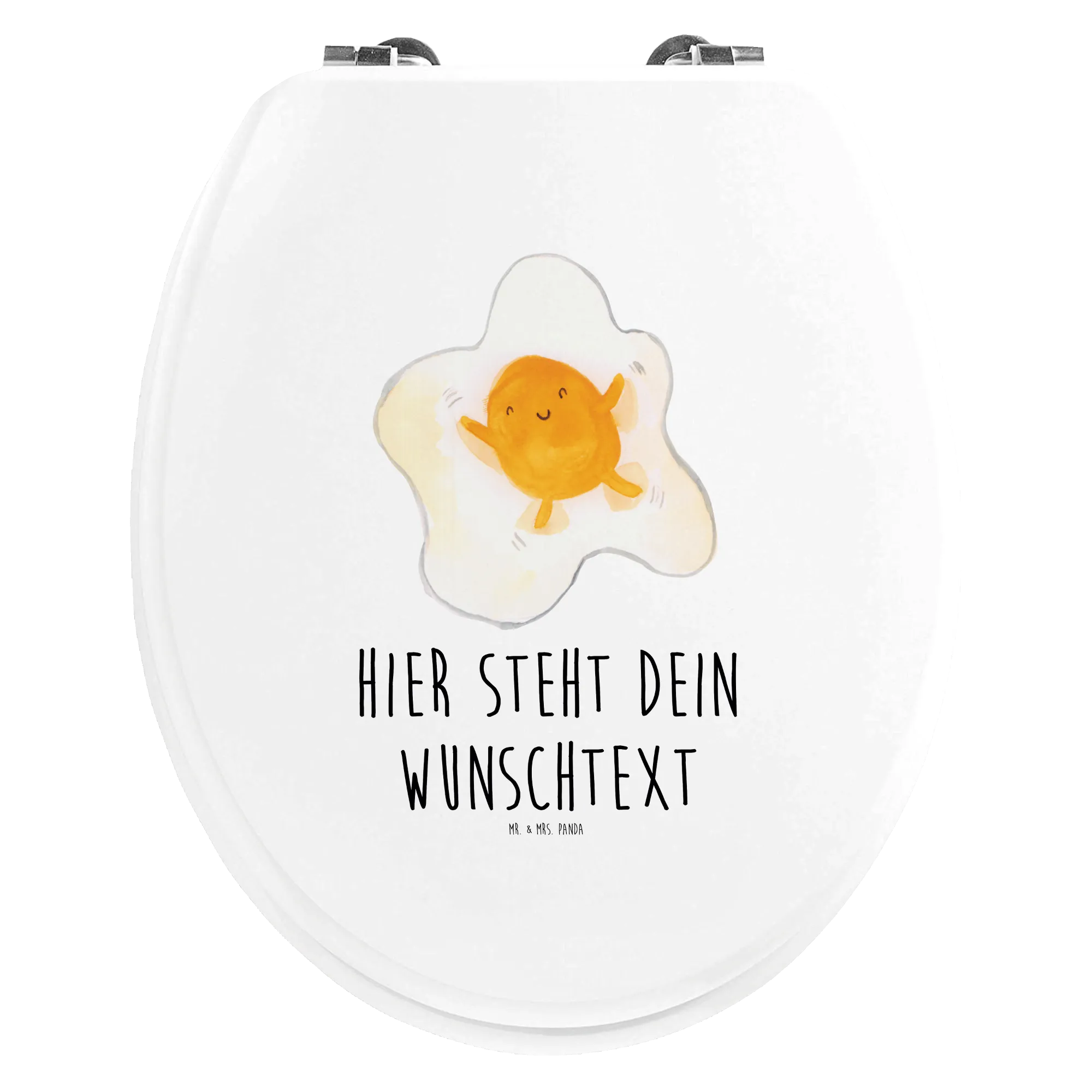 Der personalisierte WC Sitz mit dem liebevollen Spiegelei-Motiv aus der Small World Kollektion von Mr. & Mrs. Panda ist das perfekte Geschenk für alle, die Spaß und Freude ins Badezimmer bringen möchten. Jeder Toilettendeckel ist nicht nur praktisch, sondern auch ein echtes Highlight, das jeden Tag ein Lächeln ins Gesicht zaubert. Mit dem originellen Slogan "Egg-cellent day to be happy" ist jeder Besuch auf der Toilette ein positives Erlebnis.