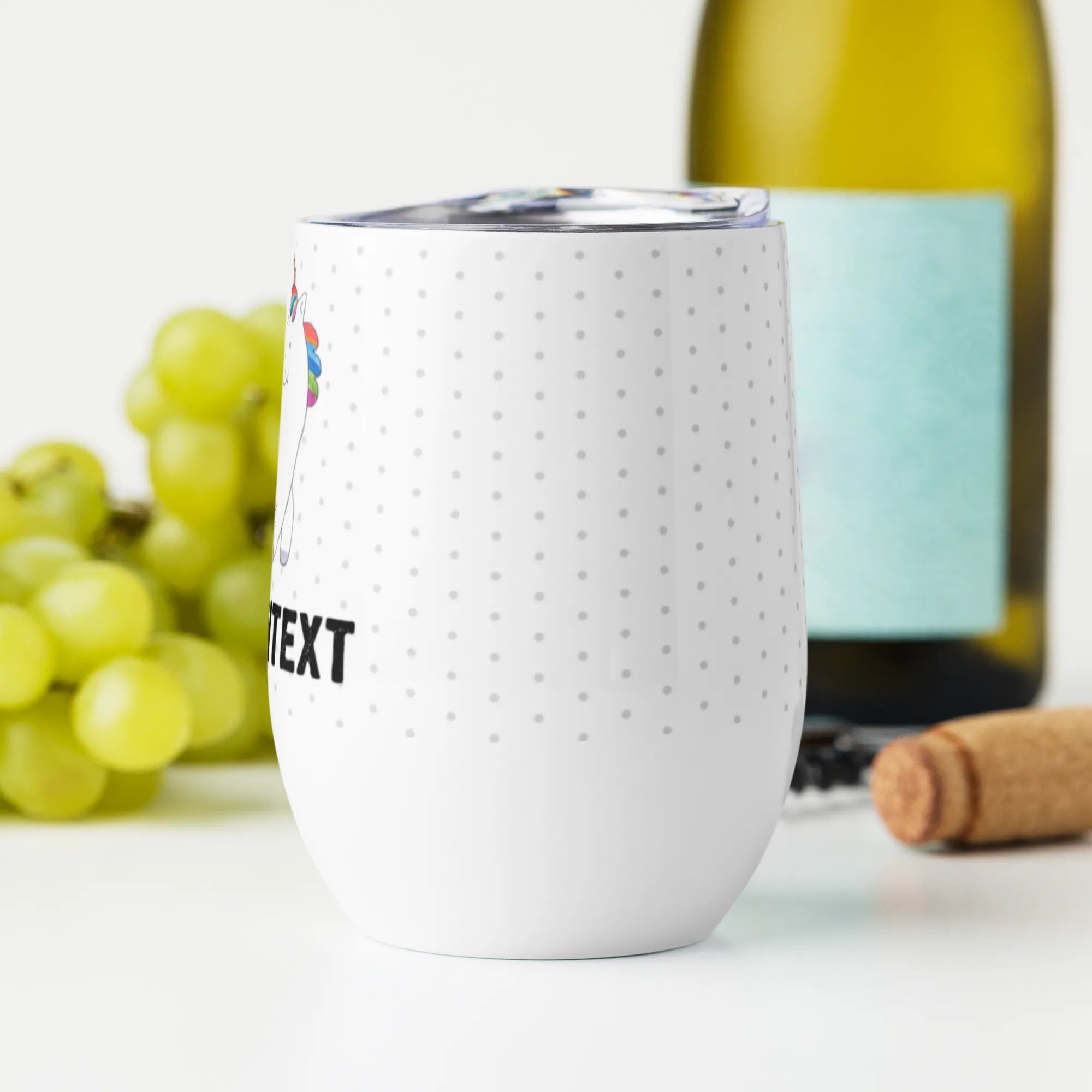 Der personalisierte Weinbecher kann mit deinem eigenen Wunschtext oder Namen bedruckt werden. Das bringt nicht nur eine persönliche Note mit sich, sondern macht den Becher auch zu einem einzigartigen Geschenk für deine beste Freundin oder den besonderen Menschen in deinem Leben. Und nicht nur das – der Spruch "Sei das Einhorn unter den vielen Pferden da draußen!" rundet das Gesamtbild perfekt ab.