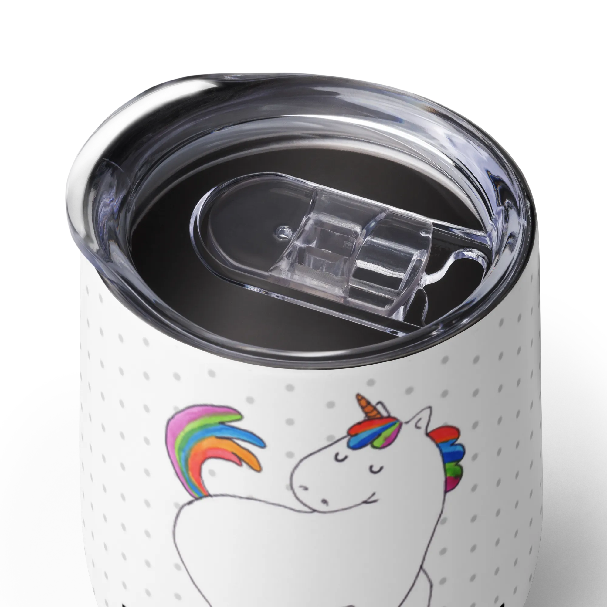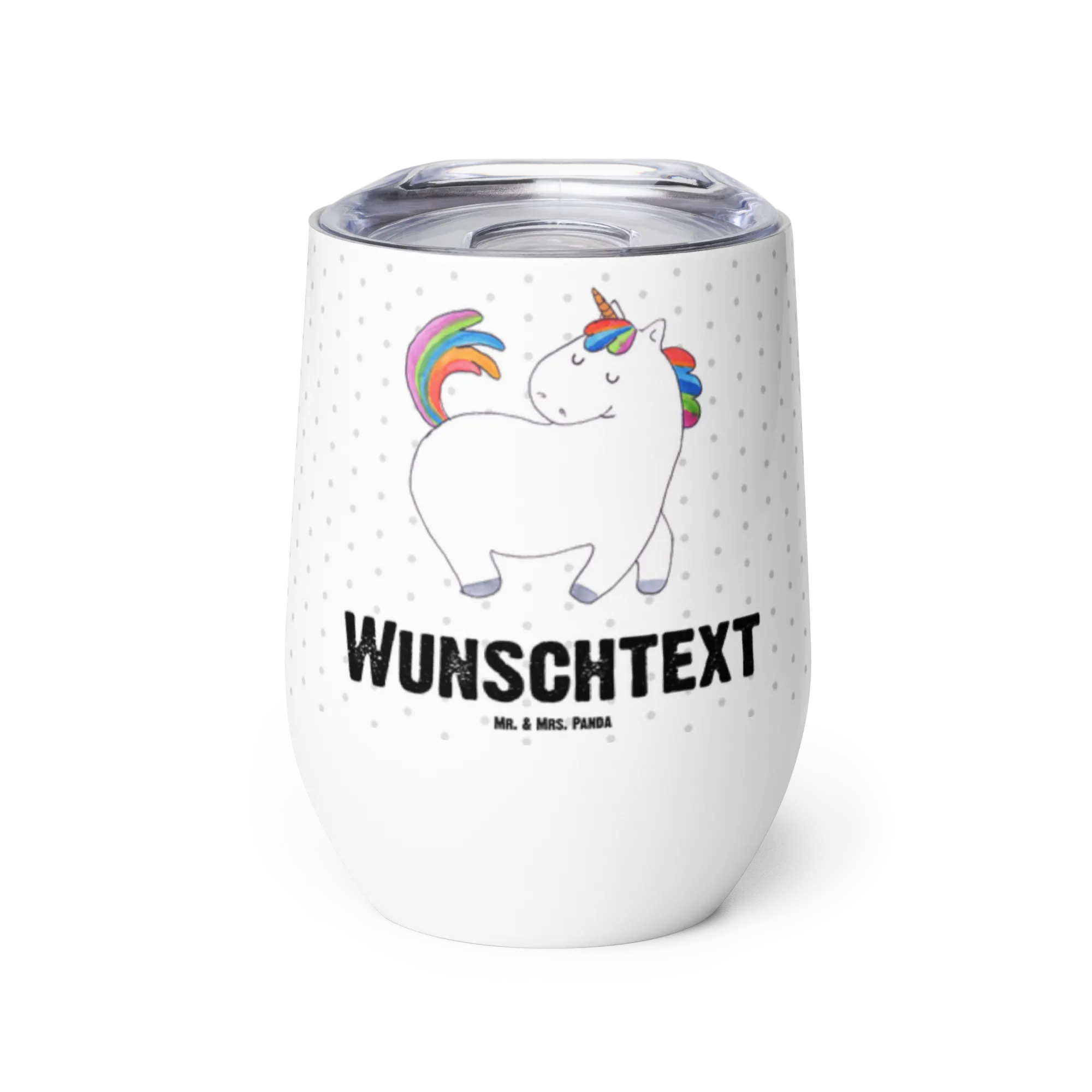 Der personalisierte Weinbecher mit dem stolzierenden Einhorn aus der Einhorn-Kollektion von Mr. & Mrs. Panda ist das perfekte Geschenk für all die Einhorn-Liebhaber unter uns. Dieser wunderschöne Becher ist nicht nur ein funktionales Trinkgefäß, sondern auch ein echter Hingucker, der deinem Heißgetränk einen Hauch von Magie verleiht! Egal, ob du gemütlich zu Hause sitzt oder unterwegs bist, mit diesem Becher wird jeder Schluck zu einem besonderen Erlebnis.