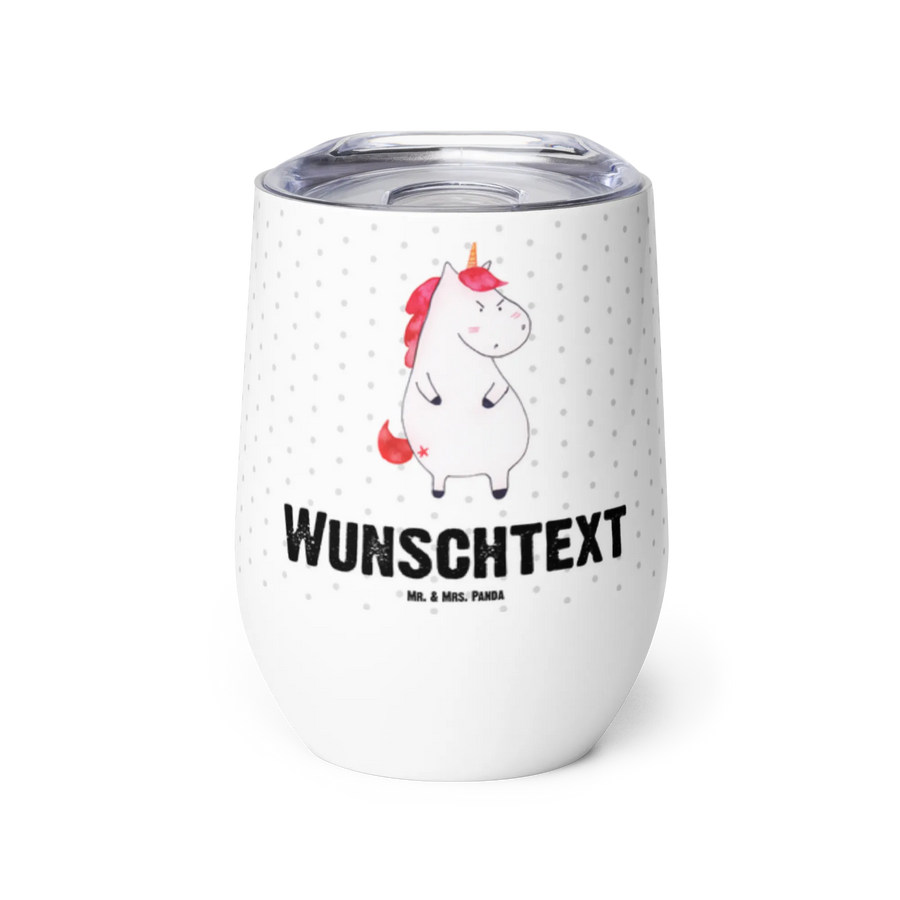Der personalisierte Weinbecher mit dem wütenden Einhorn-Motiv aus der einzigartigen Einhorn-Kollektion von Mr. & Mrs. Panda ist genau das richtige Geschenk für alle, die ein bisschen Humor in ihren Alltag bringen möchten. Mit einem Statement, das einfach zum Schmunzeln anregt: "Egal was du von mir willst, meine Antwort lautet 'Nein'! Warum? Weil mein Einhorn keinen Bock drauf hat, darum!" Dieser stilvolle Becher ist nicht nur ein praktischer Begleiter für sämtliche Heißgetränke, sondern auch ein echter Hingucker auf jedem Tisch.