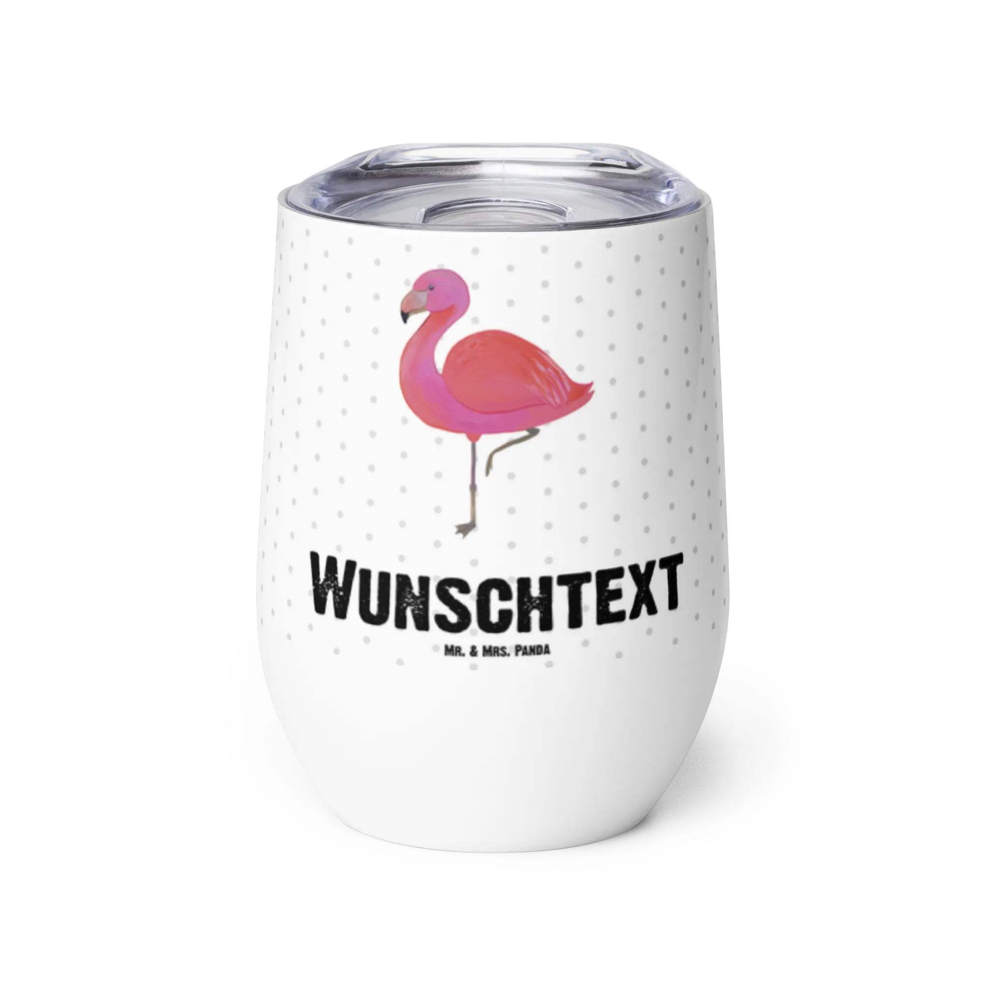 Der Aufdruck zeigt einen entzückenden Flamingo, umgeben von einem Spruch, der unser individueller Ansatz für Selbstliebe und Einzigartigkeit feiert: "Ich bin wie ein Flamingo - ein bisschen kurios, aber prächtig und einzigartig." Dieser Satz wird mit Deinem Namen oder Wunschtext kombiniert, sodass kein Weinbecher dem anderen gleicht!
