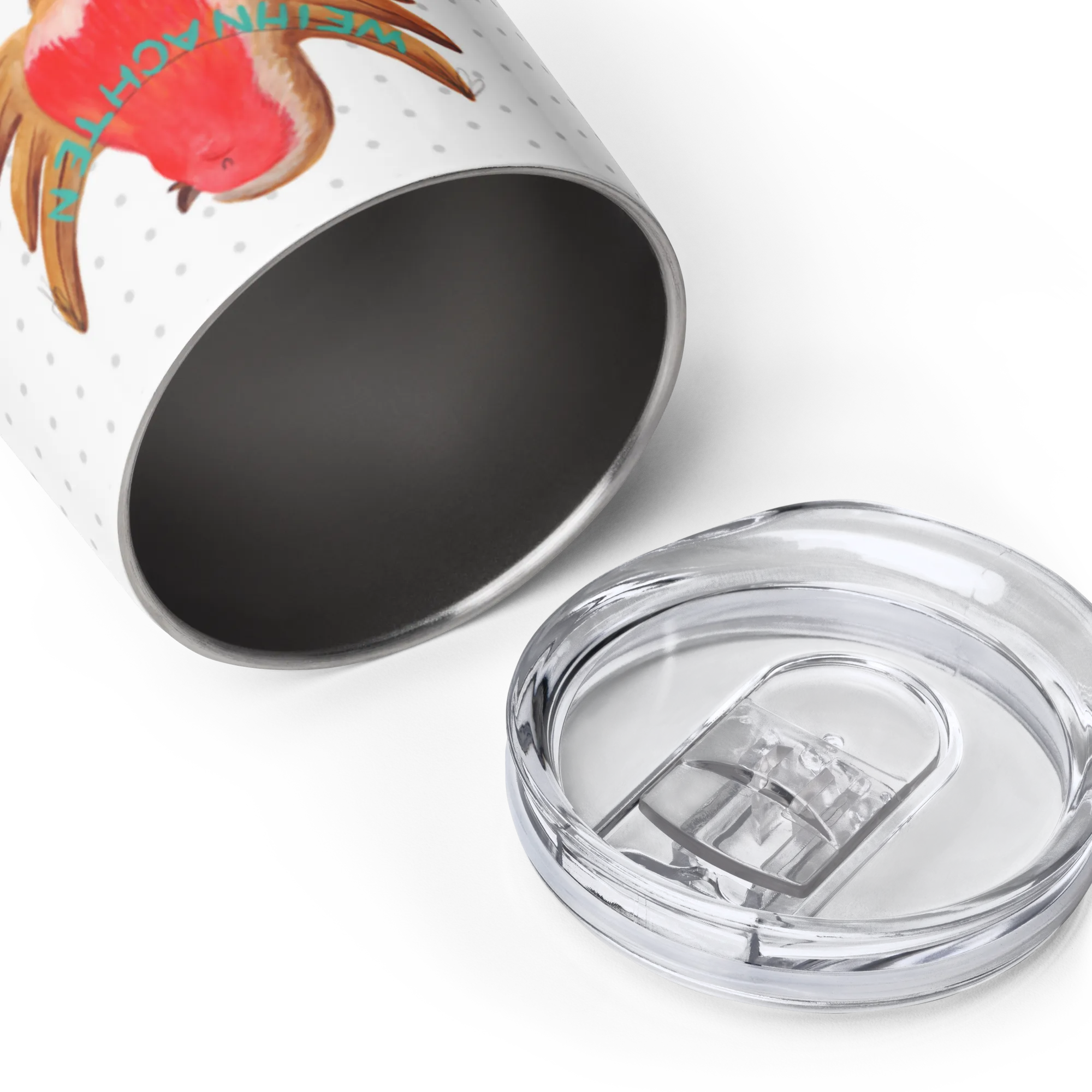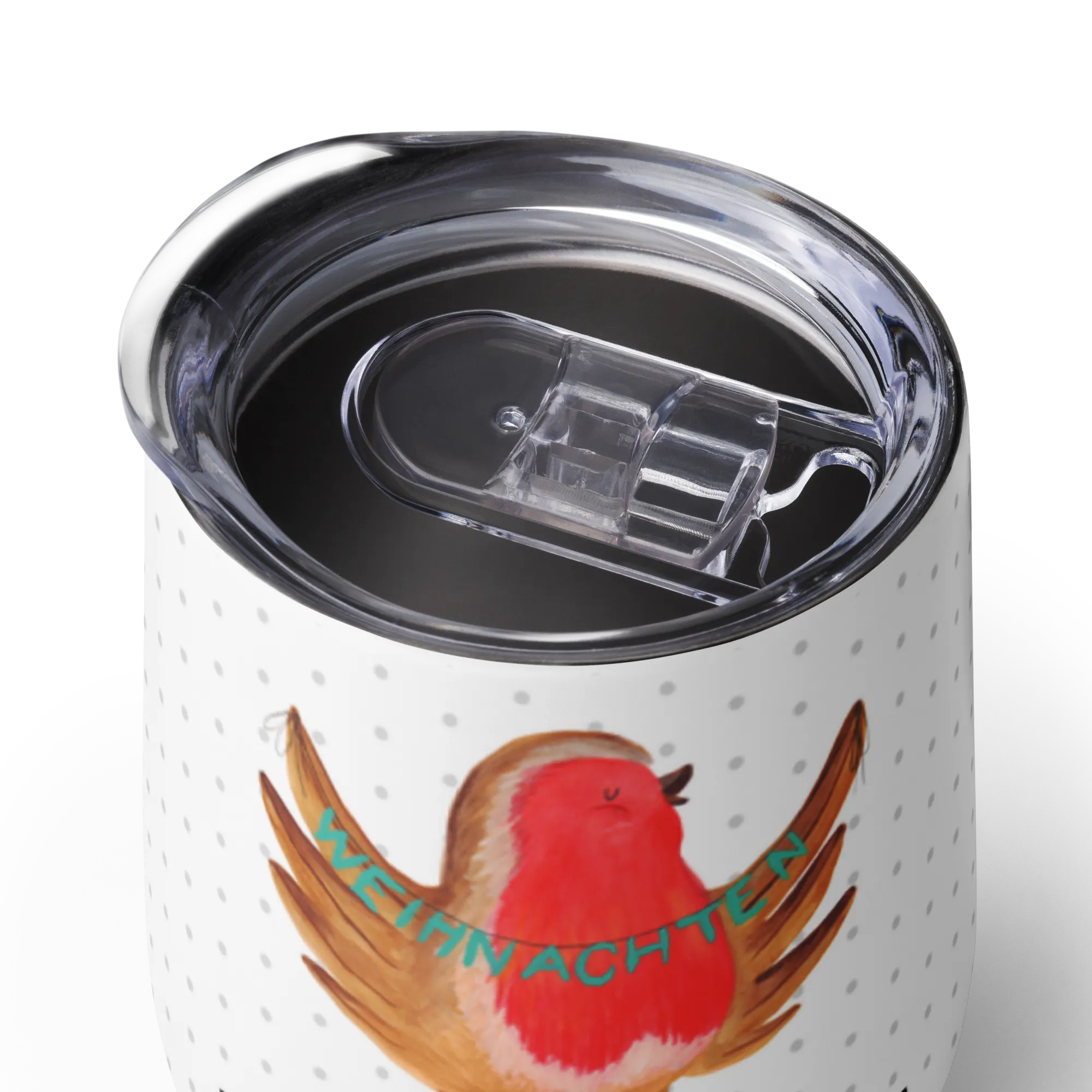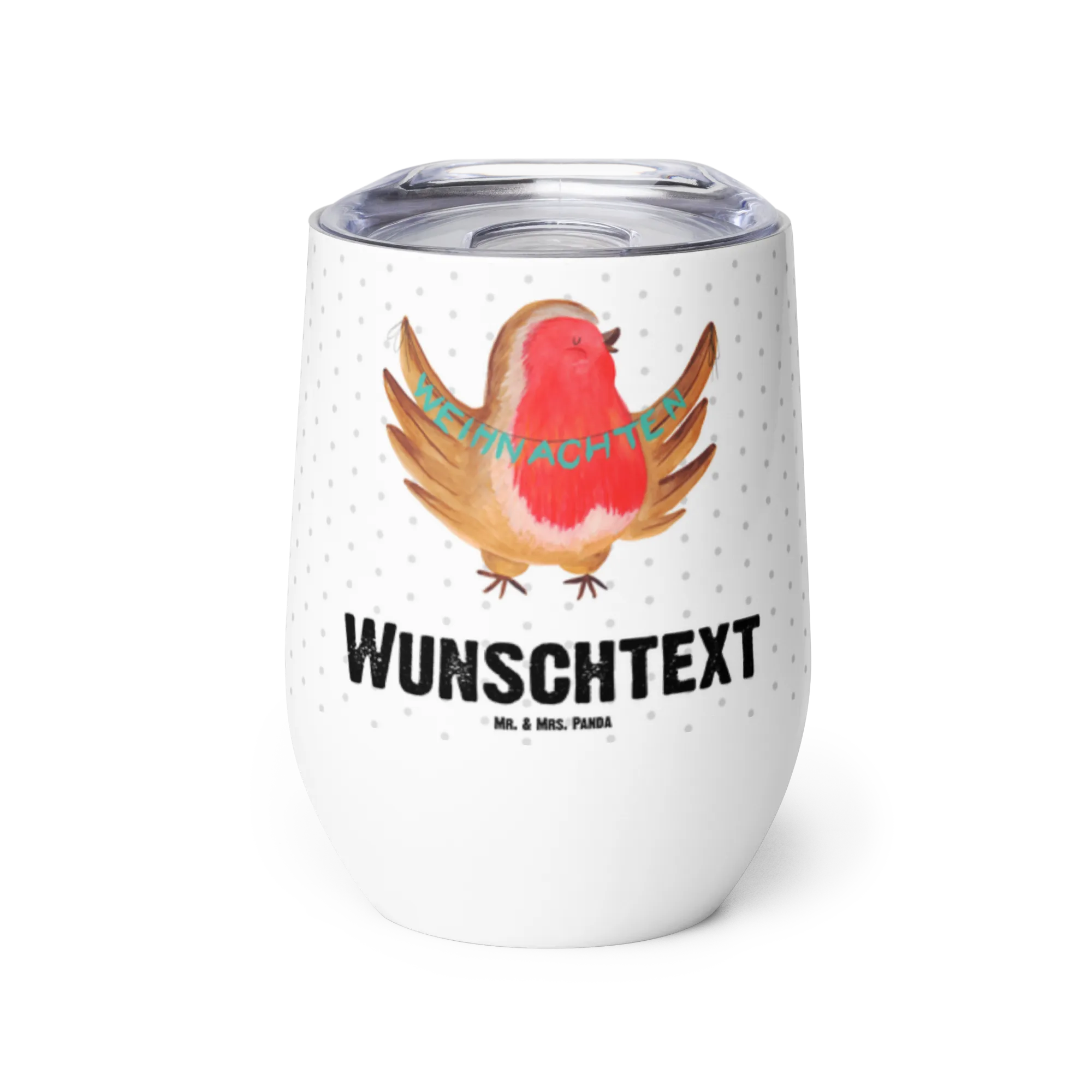Der personalisierte Weinbecher Rotkehlchen Weihnachten aus der Winter Kollektion von Mr. & Mrs. Panda ist das perfekte Geschenk für alle, die die besinnliche Zeit des Jahres lieben. Dieser wunderschöne, hochwertige Weinbecher aus Edelstahl bietet dir die Möglichkeit, deine Heißgetränke unterwegs zu genießen und bleibt dank der doppelwandigen Vakuumdichtung bis zu 5 Stunden lang heiß.