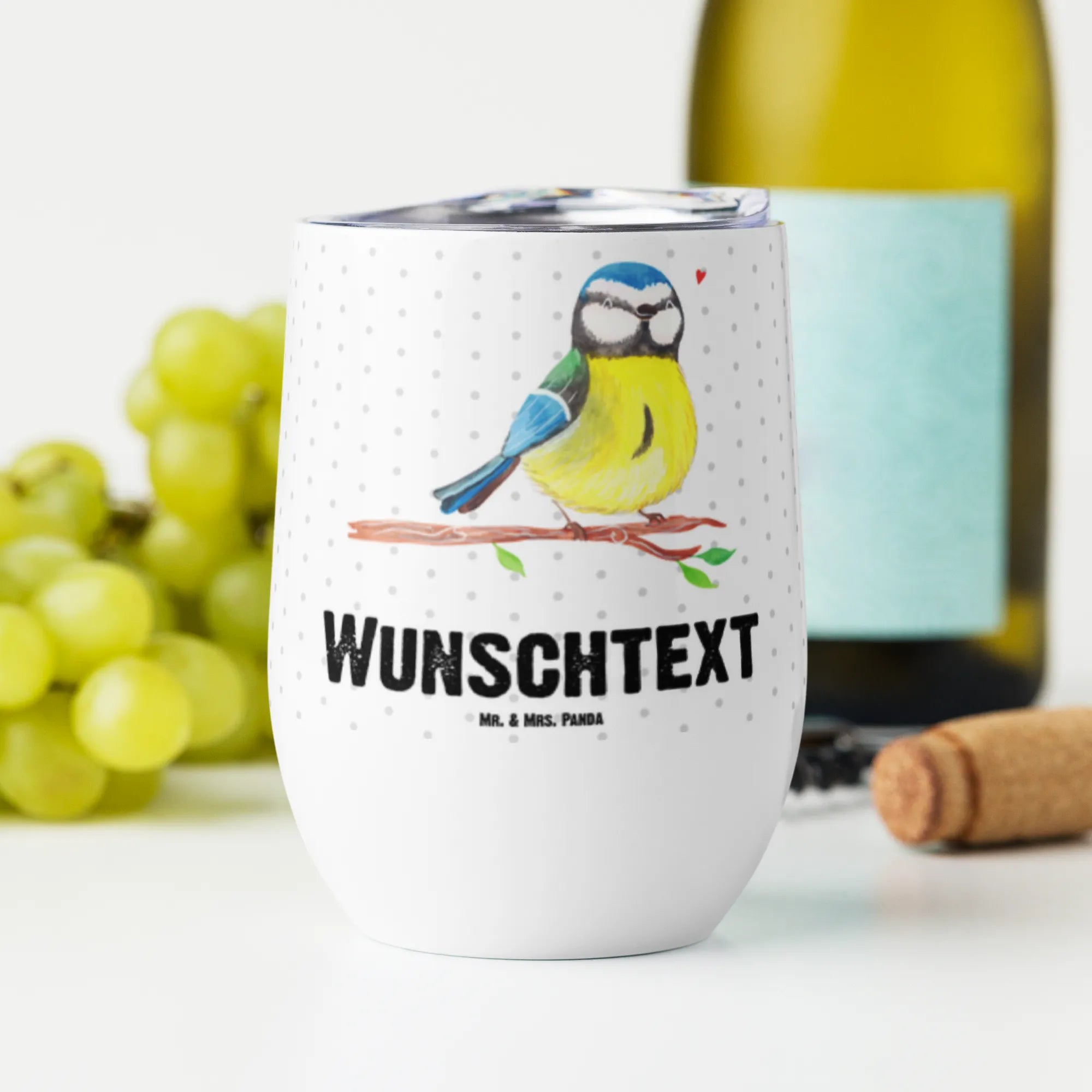 Personalisierter Weinbecher Vogel Blaumeise