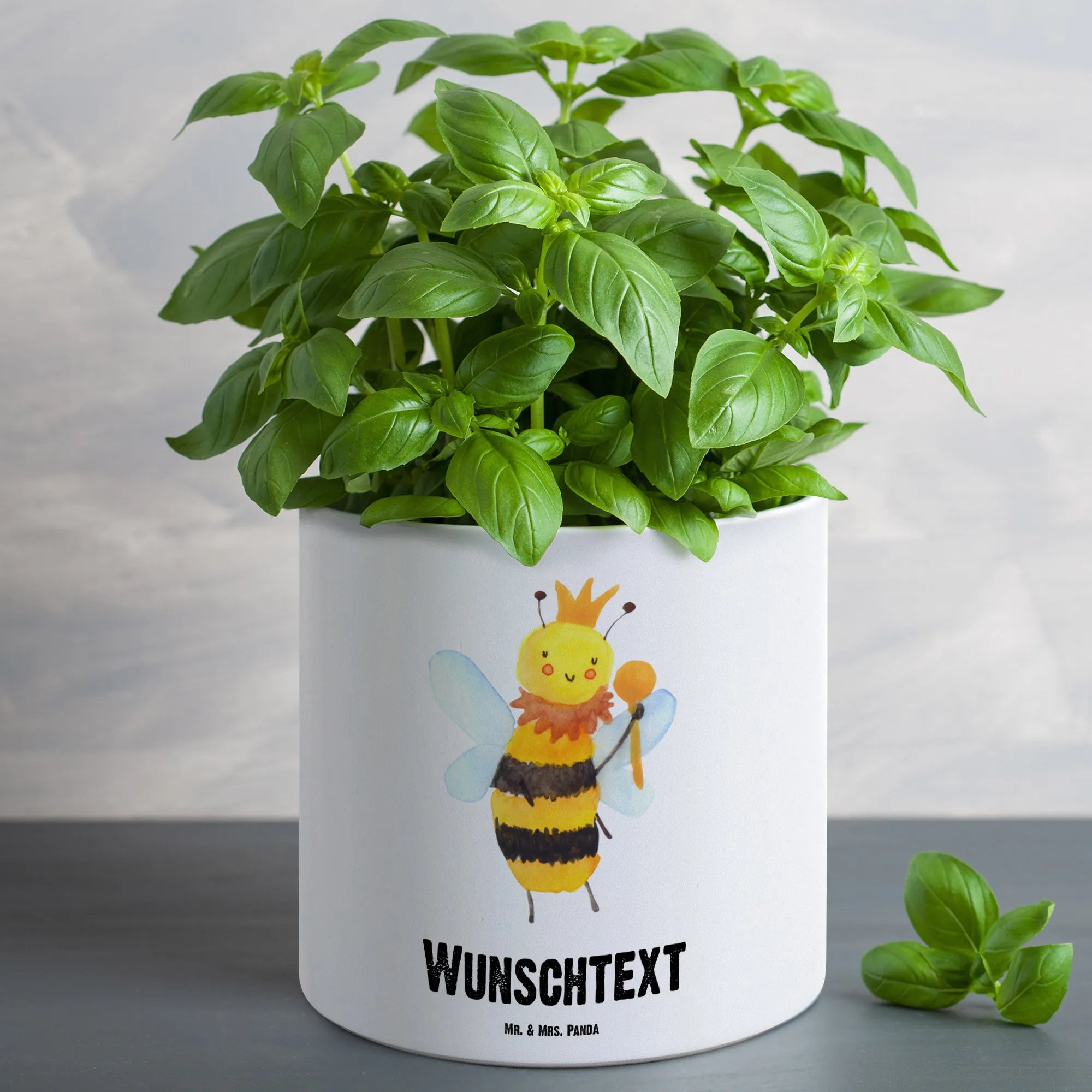 Entdecke den perfekten Begleiter für deinen grünen Daumen: der personalisierte XL Blumentopf mit dem zauberhaften Motiv "Biene König" aus der Bienen-Kollektion von Mr. & Mrs. Panda! Dieser XXL Pflanztopf ist nicht nur ein echter Blickfang, sondern auch ein einzigartiges Geschenk für alle Pflanzenliebhaber und Imker. Mit seiner liebevollen Gestaltung und dem fröhlichen Spruch "Bee amazing" wird jeder Raum im Handumdrehen verwandelt.